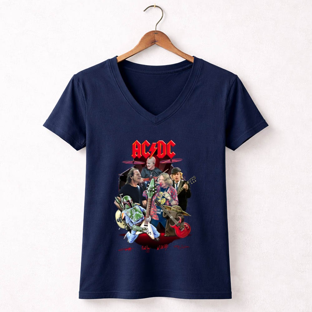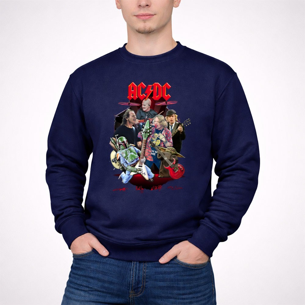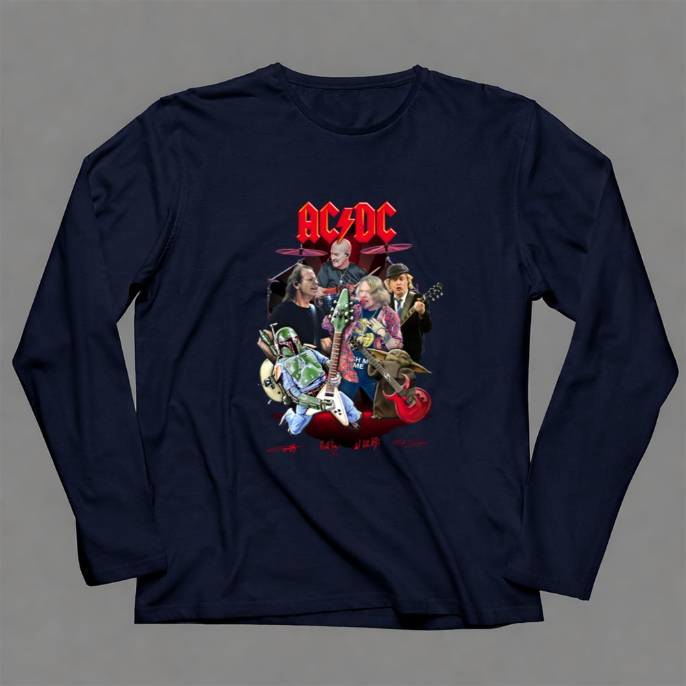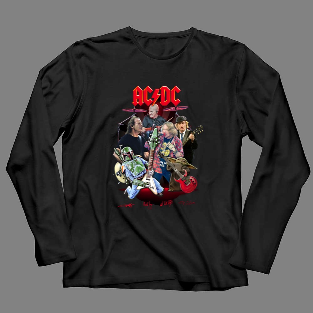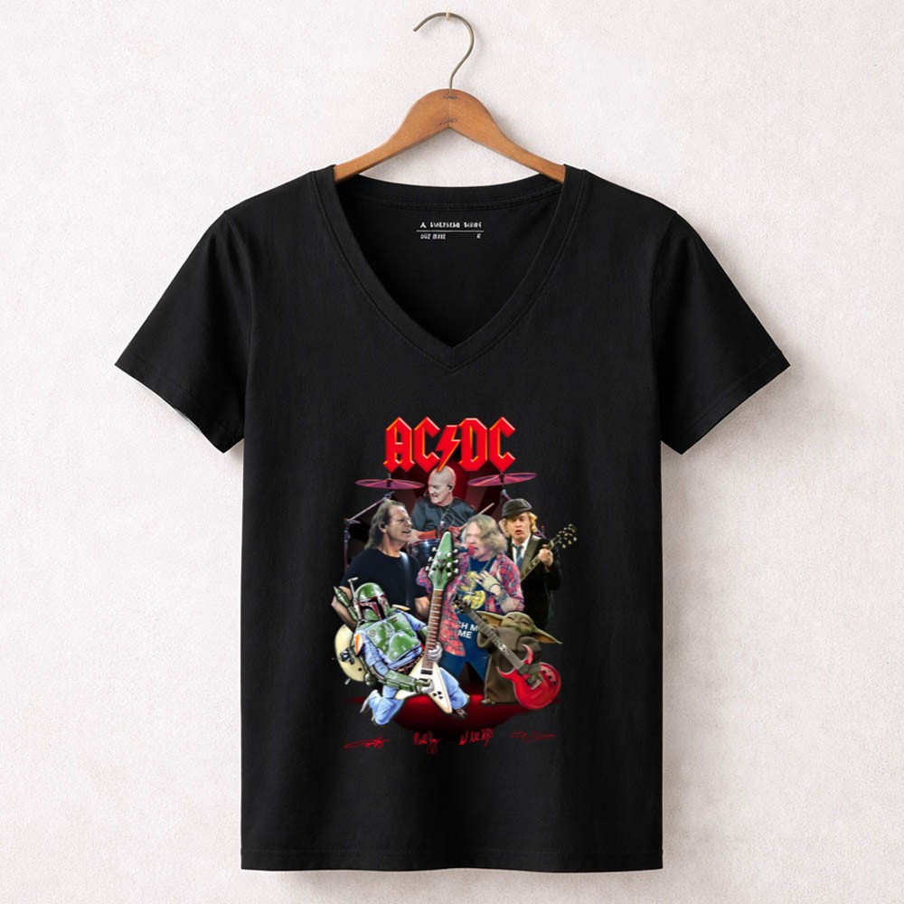 AC/DC band t-shirt, Star Wars crossover apparel, Boba Fett merch, Grogu gifts, rock and roll fan gear, pop culture t-shirt, music lover gift, iconic band tribute