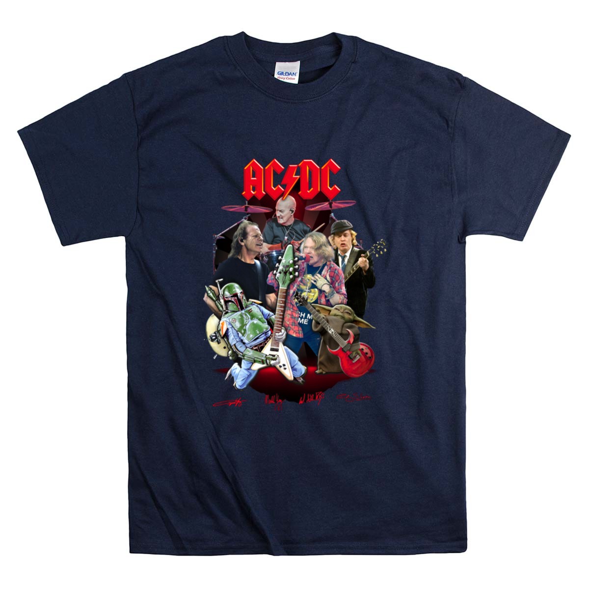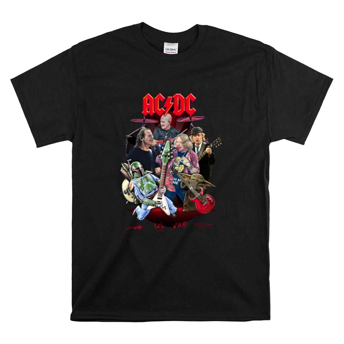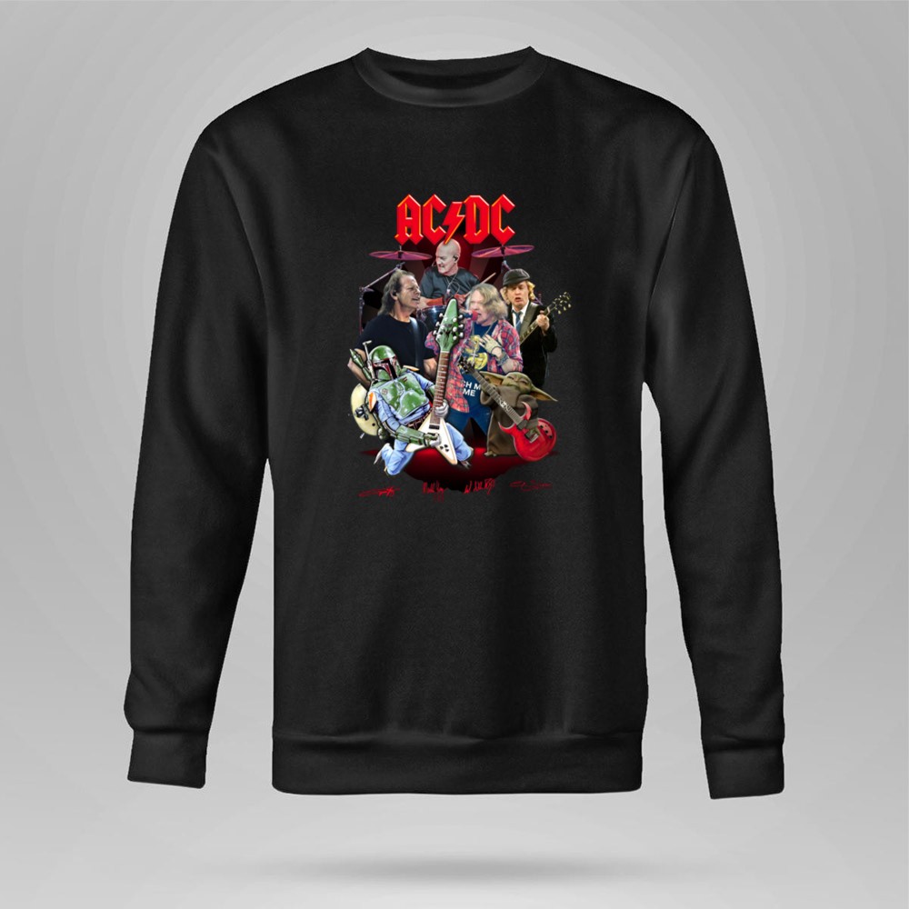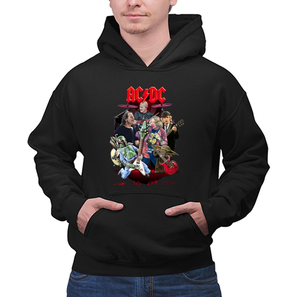 AC/DC band t-shirt, Star Wars crossover apparel, Boba Fett merch, Grogu gifts, rock and roll fan gear, pop culture t-shirt, music lover gift, iconic band tribute
