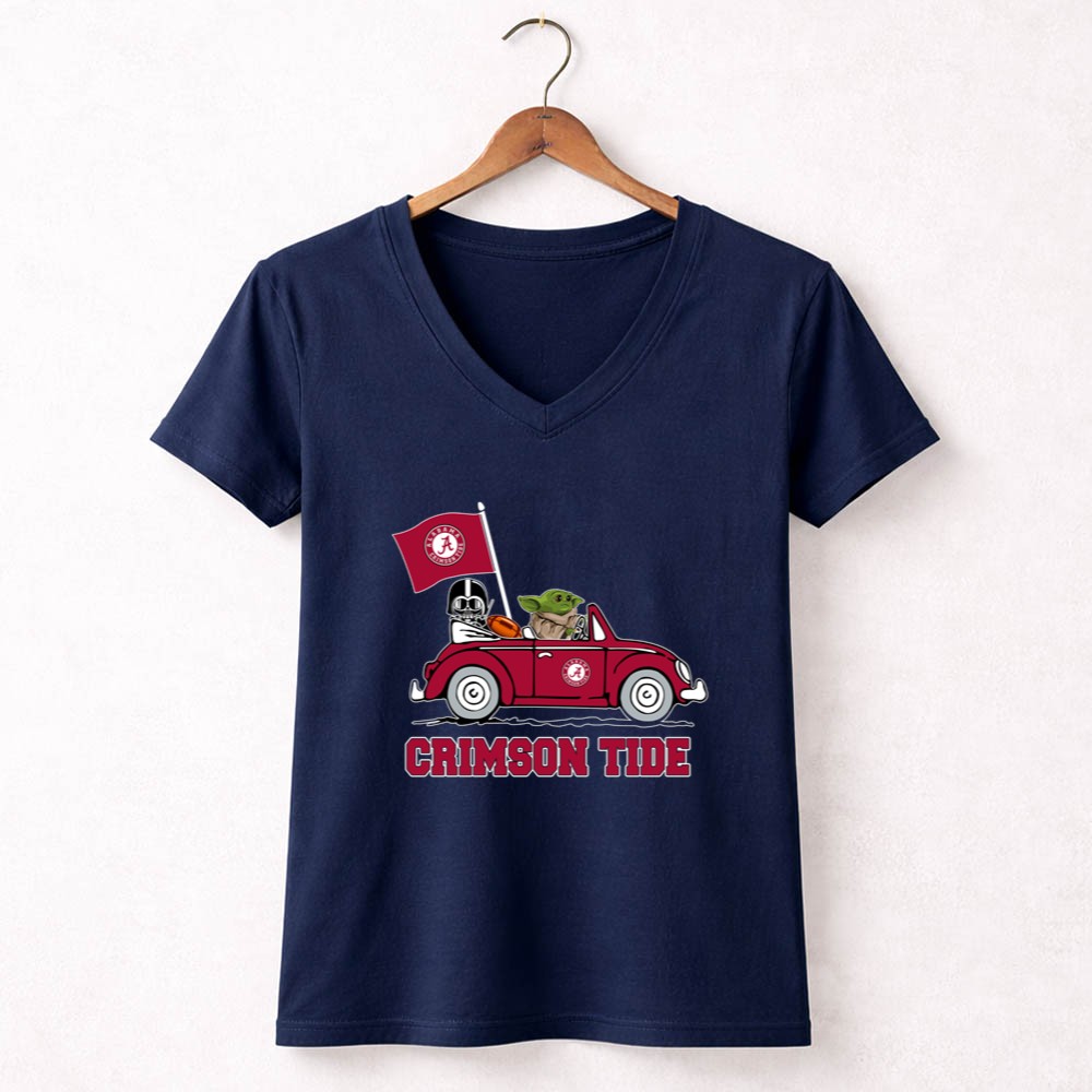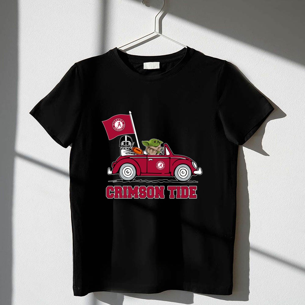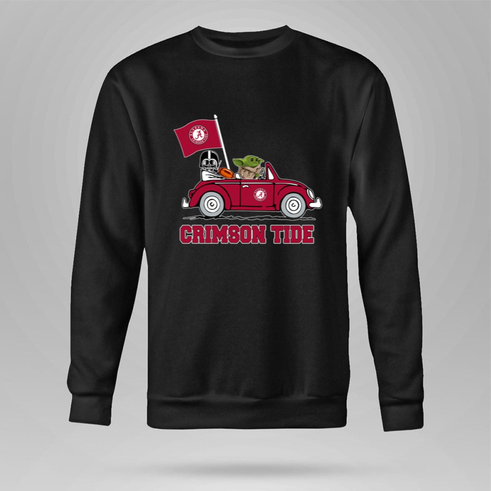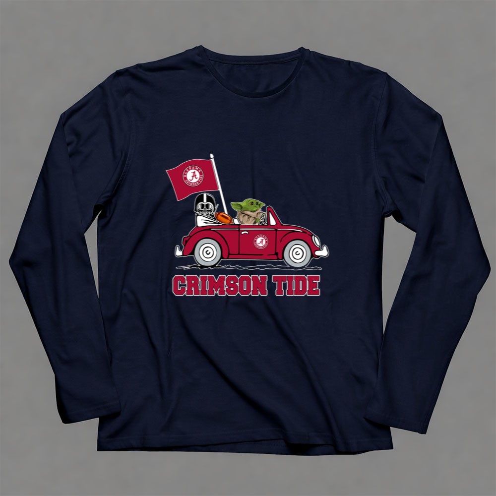 This unique mashup captures the essence of fandoms colliding, featuring Darth Vader and Baby Yoda joyfully cruising in a classic red car, proudly waving the Alabama Crimson Tide flag. The playful style and vibrant colors evoke a sense of nostalgia and community, inviting fans to express their love for both college football and the beloved Star Wars universe. It’s a celebration of shared passions and spirited camaraderie.