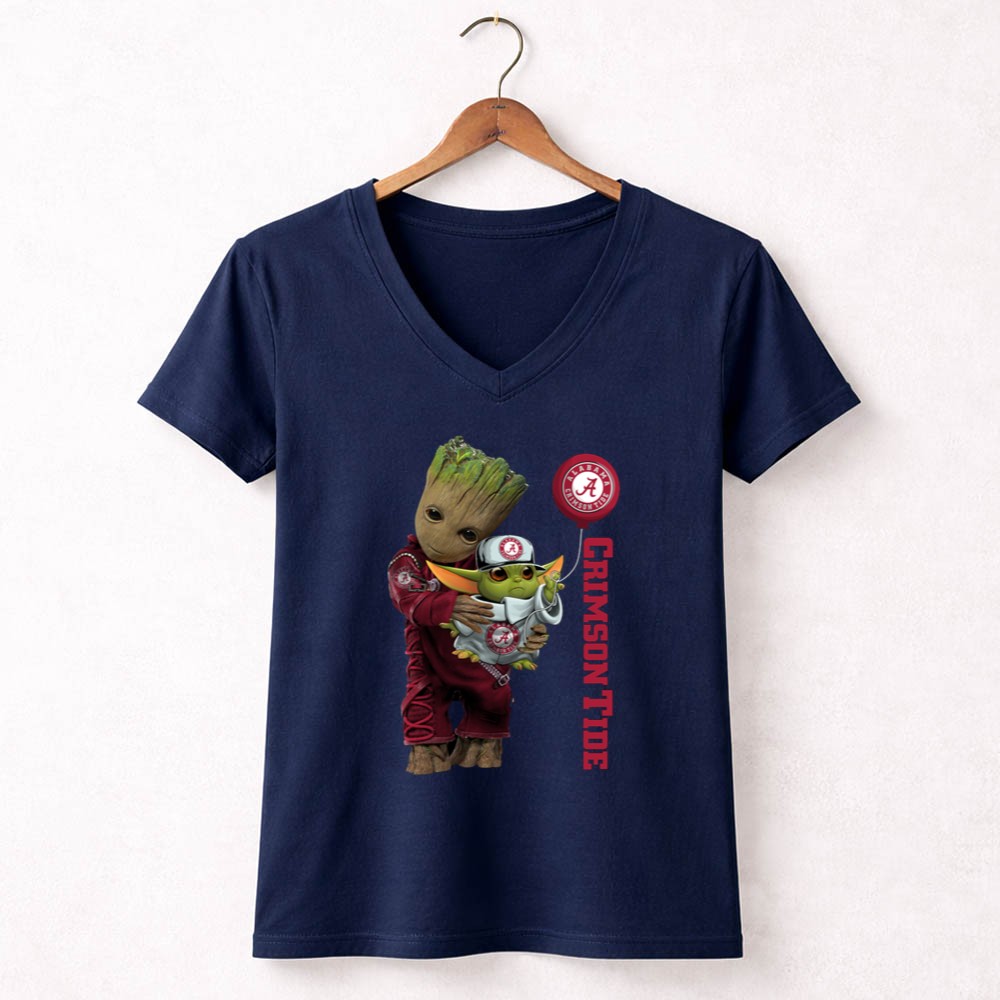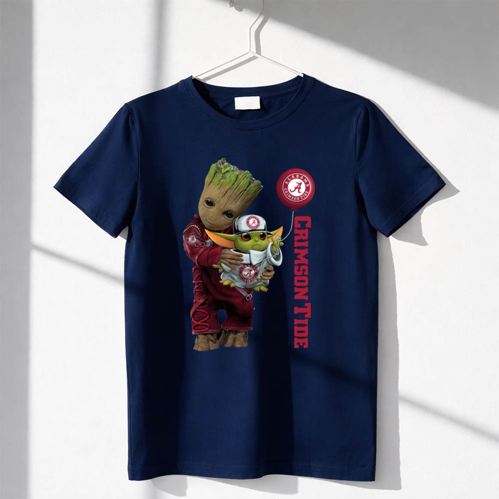 This design captures the exuberance of college football fandom by merging two beloved characters, Groot and Baby Yoda, into the vibrant world of Alabama Crimson Tide. With the team’s logo and ‘CRIMSON TIDE’ text, it embodies the playful spirit of game day, making it a delightful tribute to both pop culture and sports loyalty.