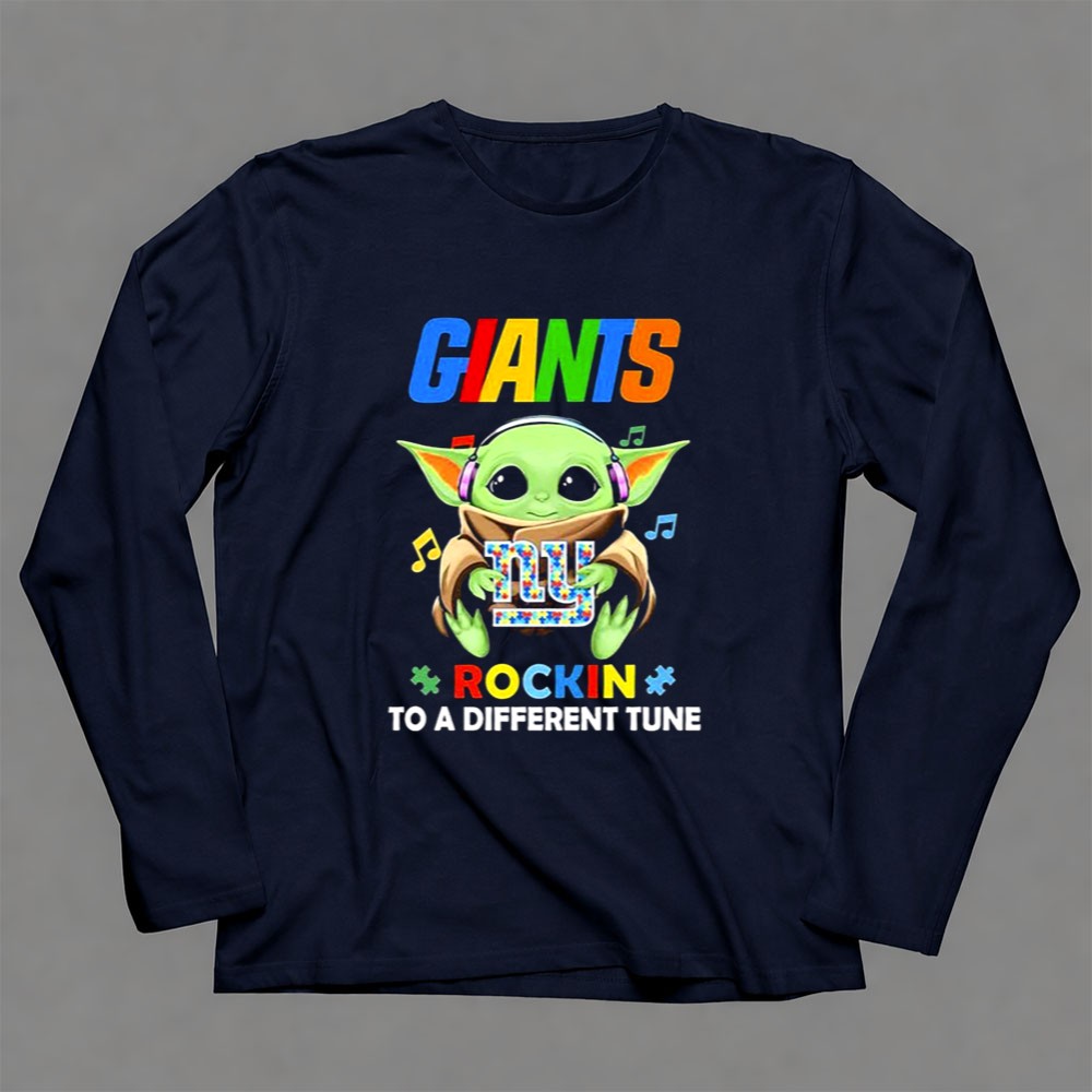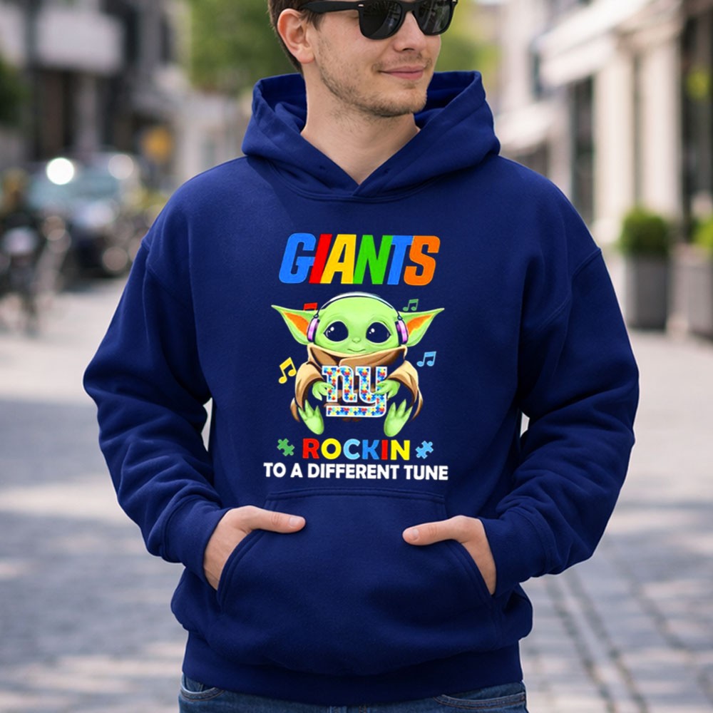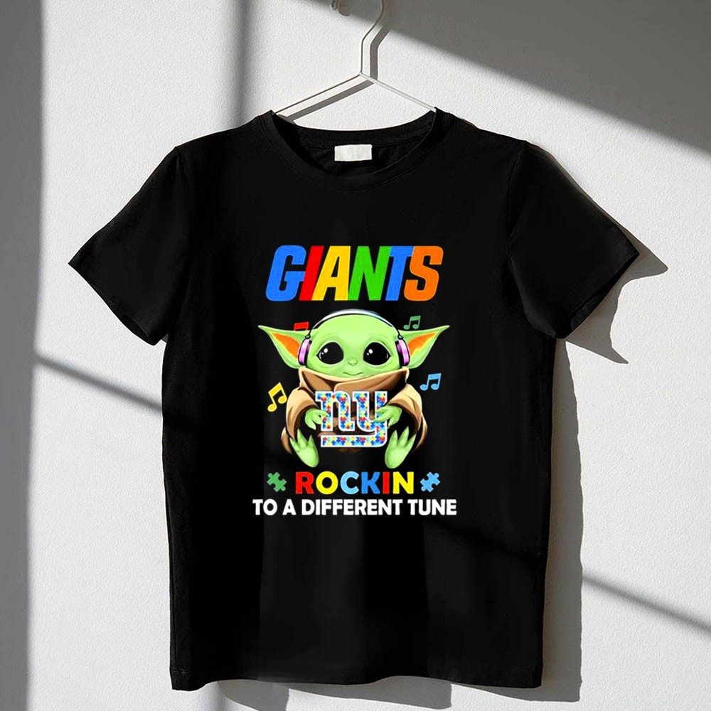 New York Giants fan gear, Baby Yoda t-shirt, autism awareness apparel, game day outfit, NFL merchandise, playful sports shirt, geek culture, children's gift