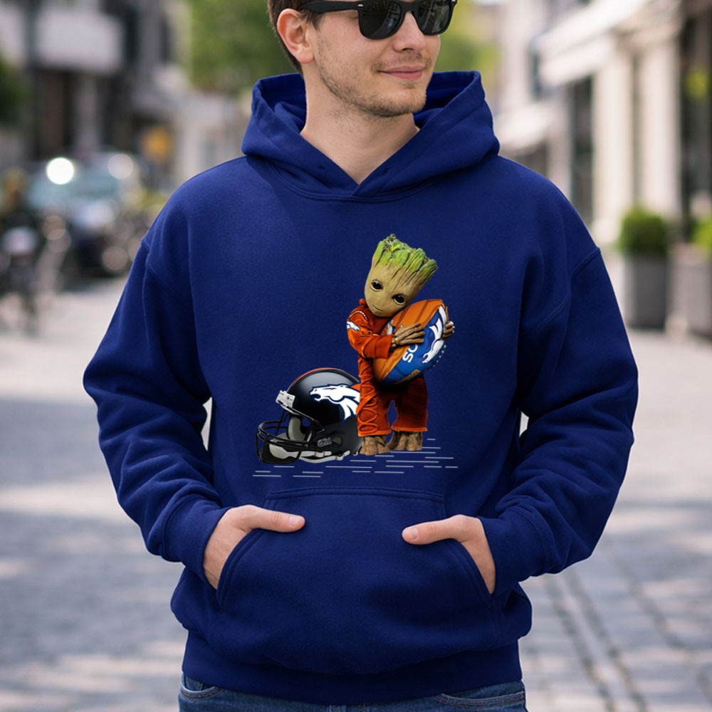 This enchanting illustration brings together the beloved Baby Groot and the spirit of the Denver Broncos, illustrating a heartfelt moment of camaraderie through football. With vibrant colors and a whimsical design, this artwork captures the joy of fandom, celebrating unity and love for the game in a playful way. It’s more than just fan gear; it’s a tribute to the shared experiences that bring families and friends together during NFL season.