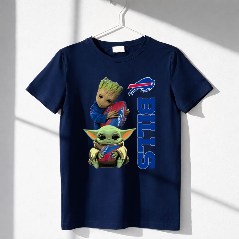 This heartwarming design brings together two cherished characters, Baby Yoda and Groot, in a delightful embrace that celebrates both Buffalo Bills fandom and the magic of the galaxy far, far away. Vibrant graphics and a fun cartoon mashup invite fans to express their playful spirit while rooting for their team, creating a sense of belonging and whimsy on game days and beyond.