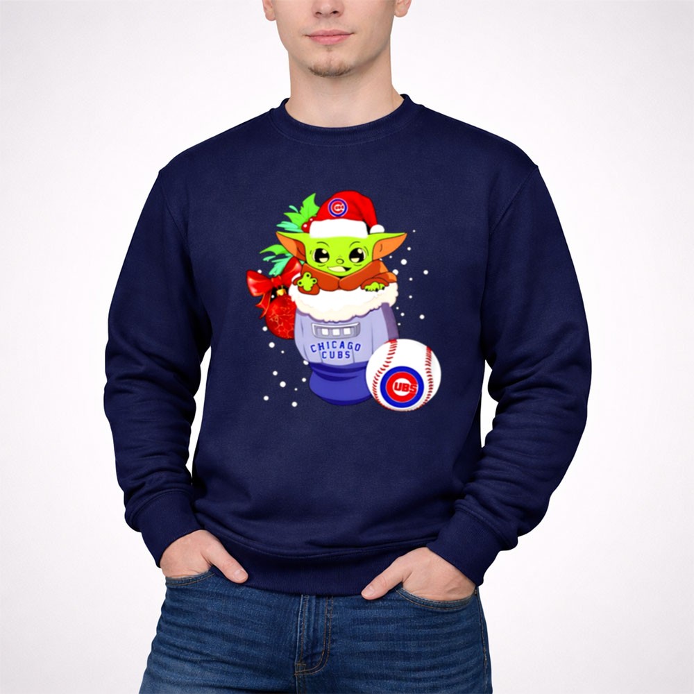 Baby Yoda and R2D2 Merry Christmas With Chicago Cubs Shirt