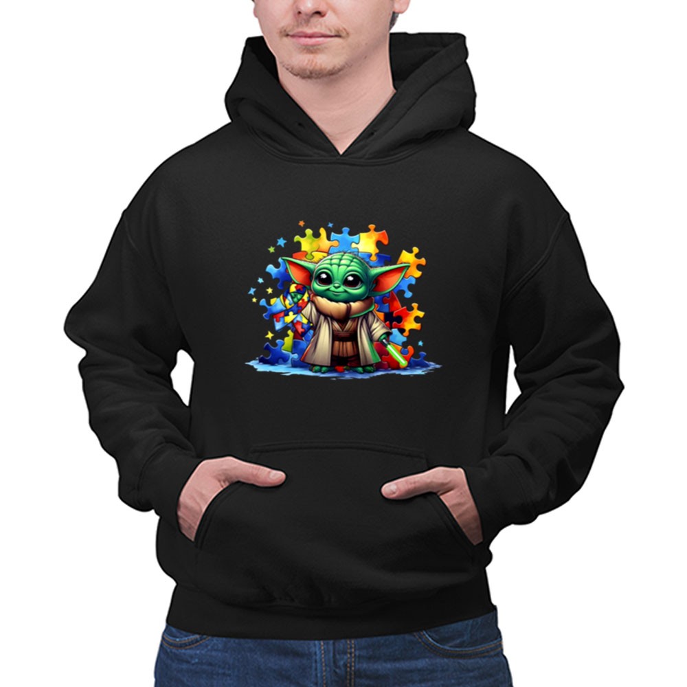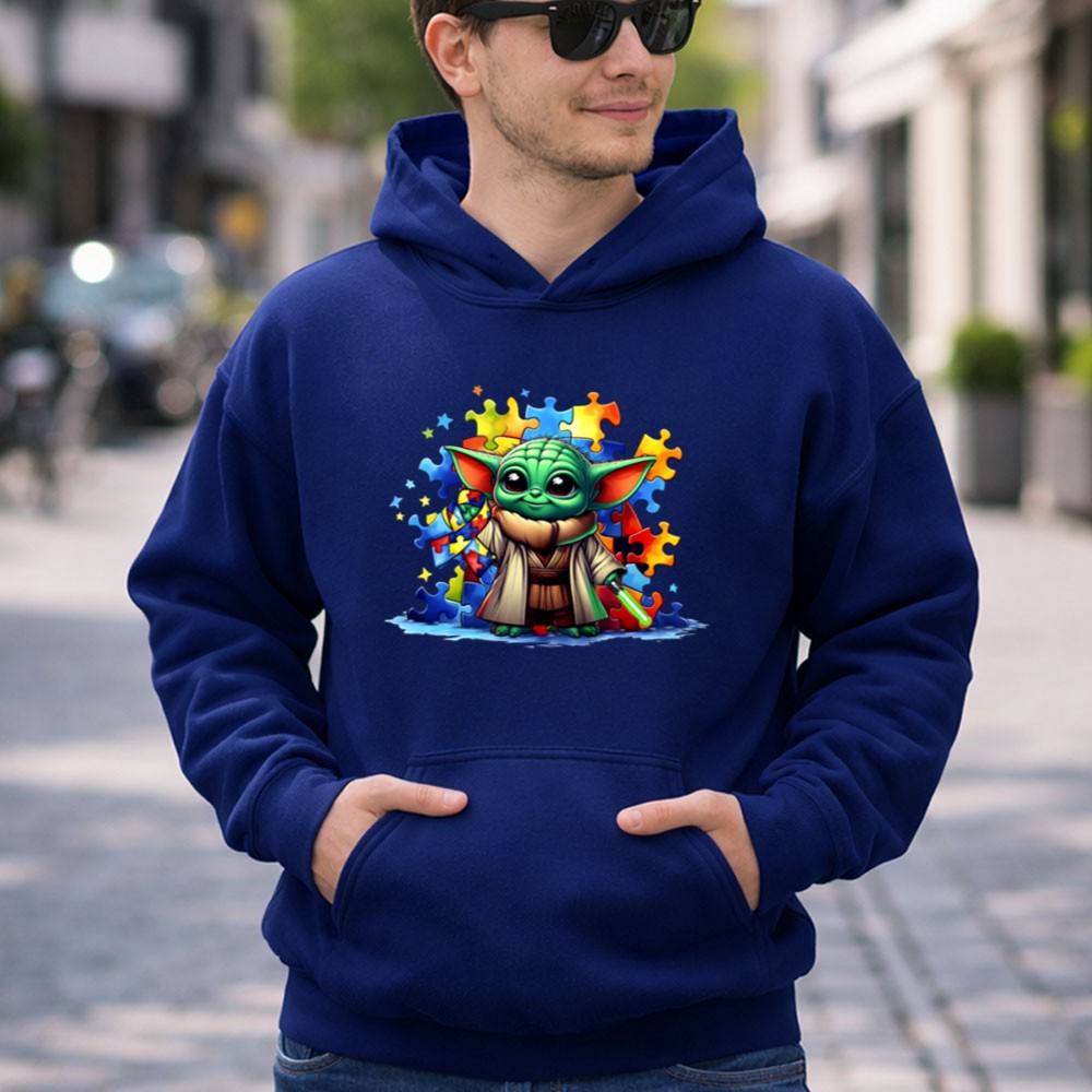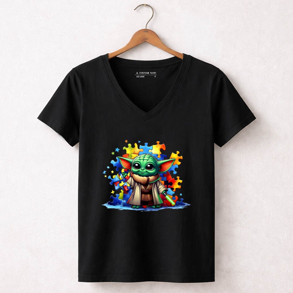 This enchanting design brings together the beloved Baby Yoda character and colorful puzzle pieces, creating a heartwarming symbol of autism awareness. It embodies the spirit of hope and unity, inviting wearers to celebrate the uniqueness of every individual while showing their support for the autism community. The whimsical style and vibrant colors make it a joyful expression of love.