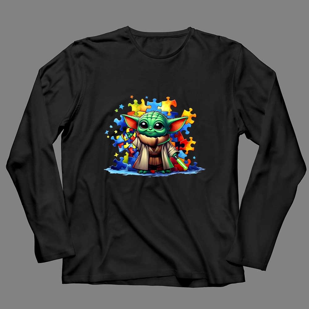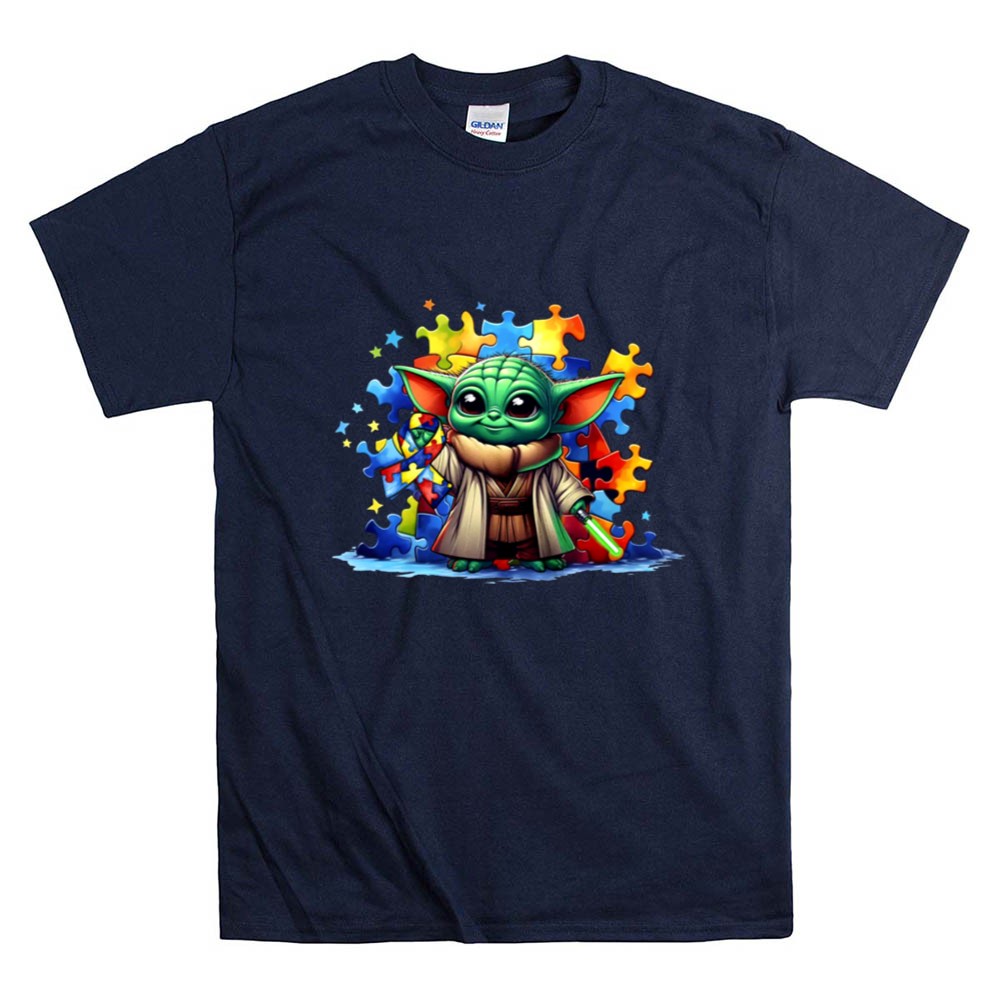 Baby Yoda autism awareness, Star Wars fandom, colorful puzzle pieces, support autism, cute character shirt, geek culture apparel, gift for fans, awareness month t-shirt
