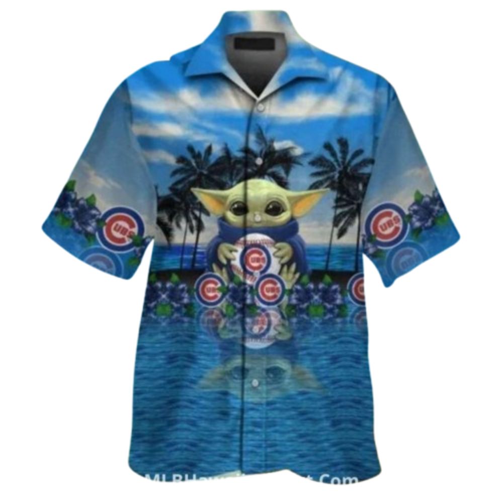 This design captures the whimsical charm of Baby Yoda, holding a Chicago Cubs baseball amidst a vibrant beach scene. It’s a joyful blend of nostalgia and fun, evoking a sense of community and celebration among fans. The tropical elements invite you to imagine sunny game days and carefree outings with fellow enthusiasts.