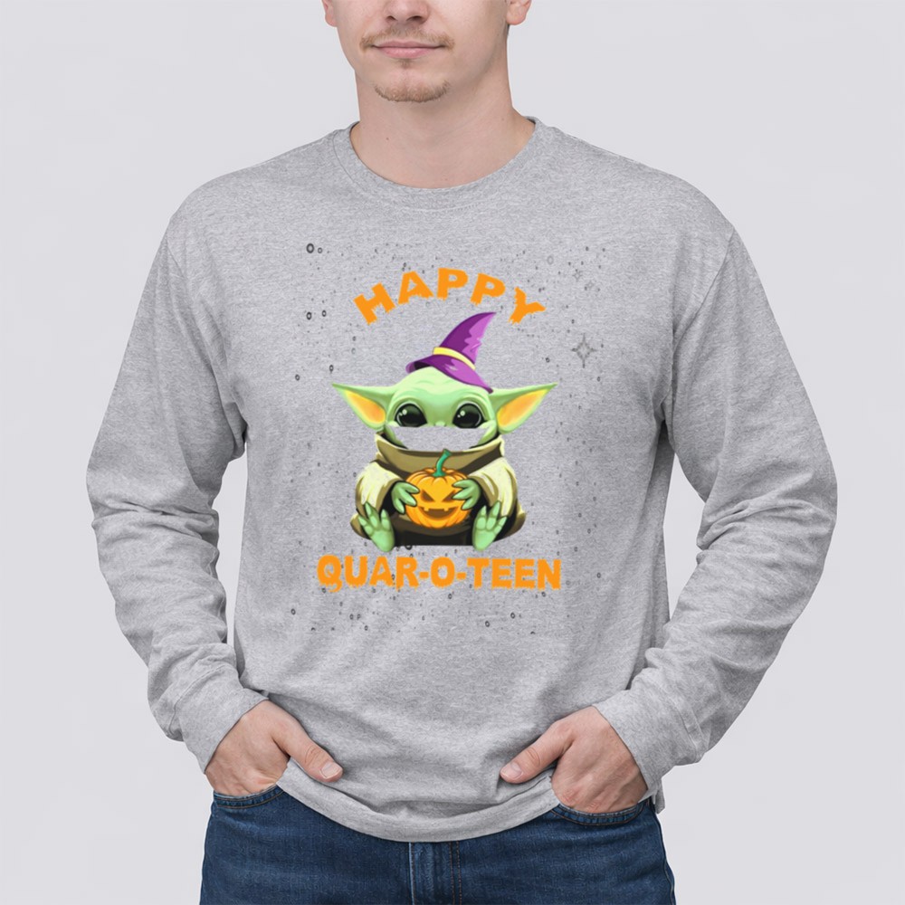 This enchanting design features Baby Yoda, a symbol of joy and nostalgia, holding a pumpkin while donning a whimsical wizard hat. It captures the essence of Halloween fun and the magic of the Star Wars universe, inviting wearers to explore their imaginations and celebrate this festive season with loved ones.