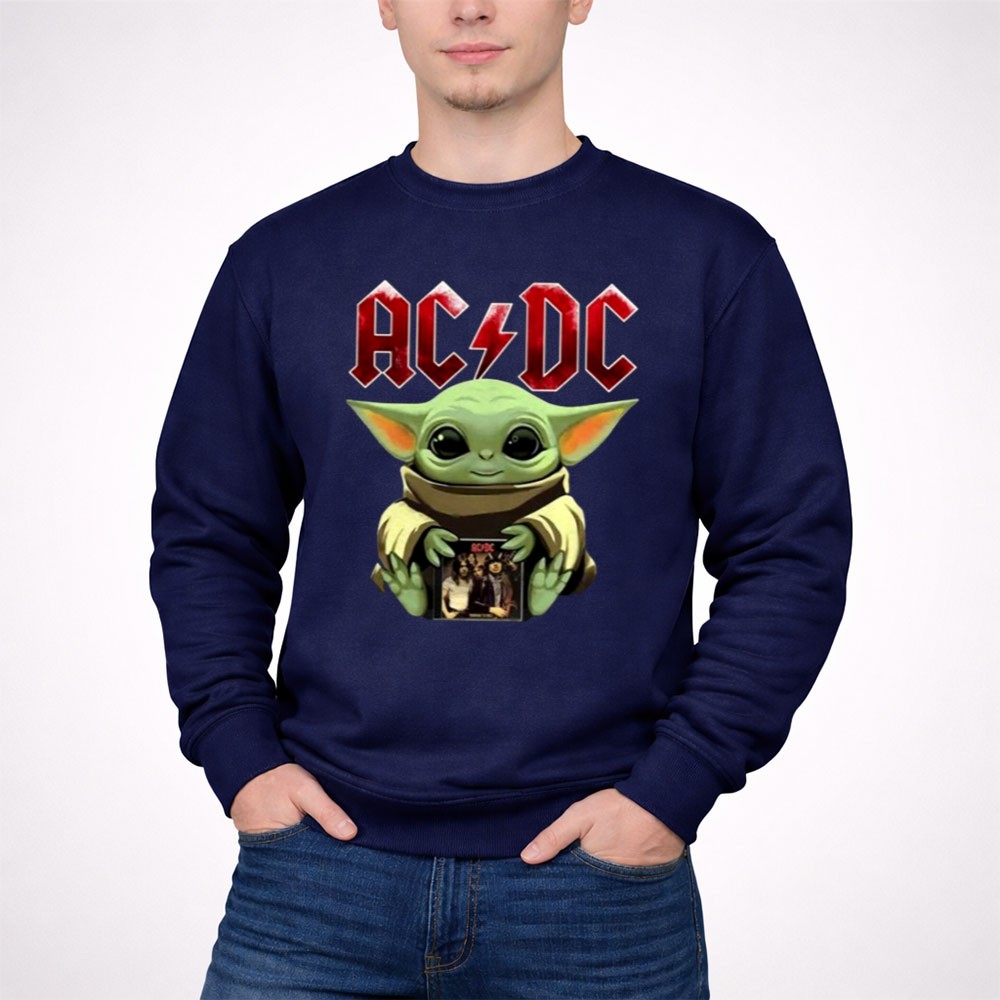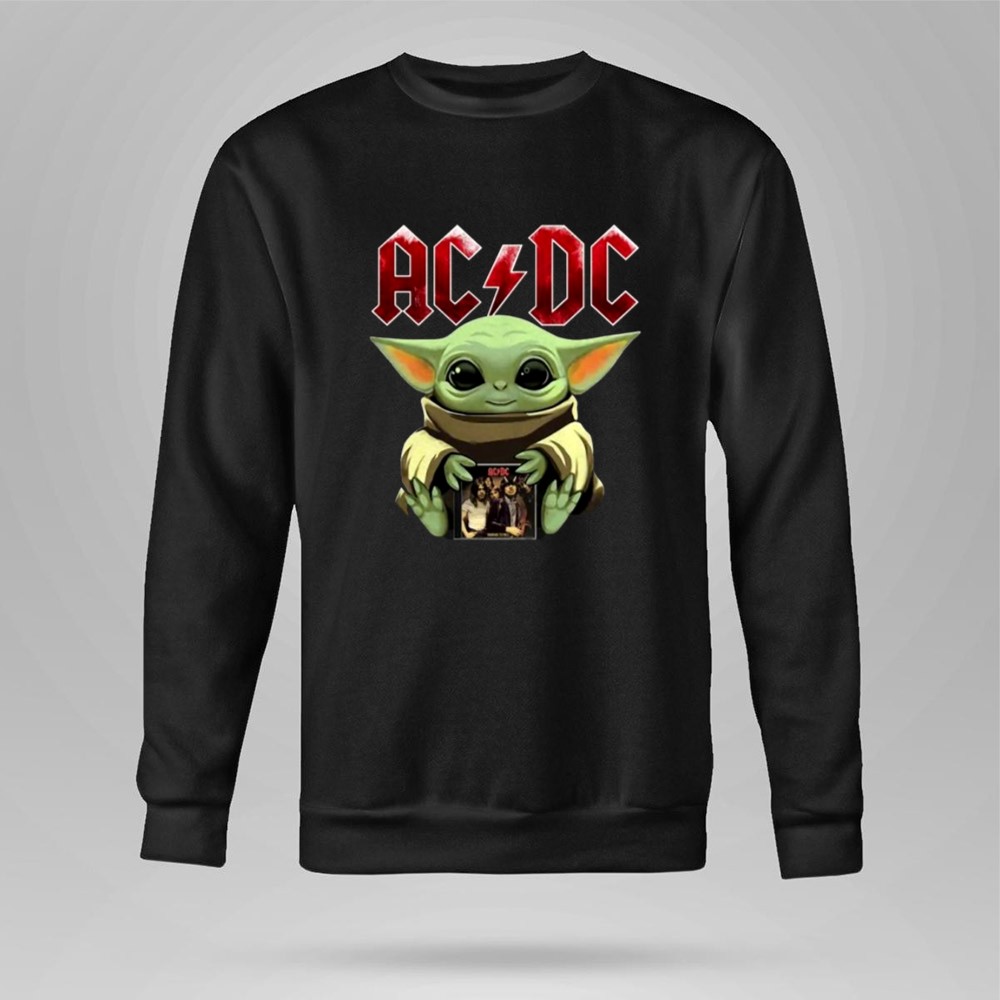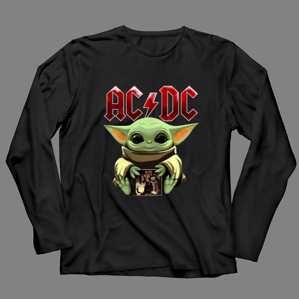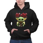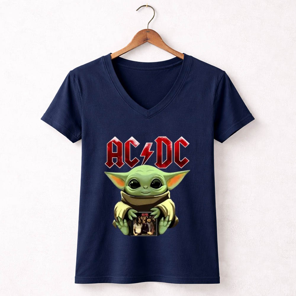 Baby Yoda merchandise, AC/DC fan shirt, Star Wars apparel, pop culture clothing, unique gift for music lovers, rock legend tribute, playful fandom, graphic tee for all ages