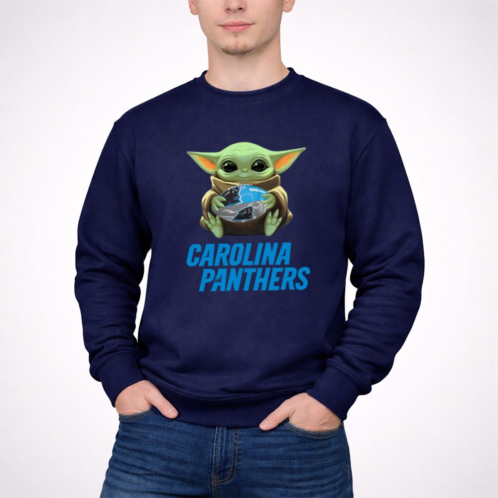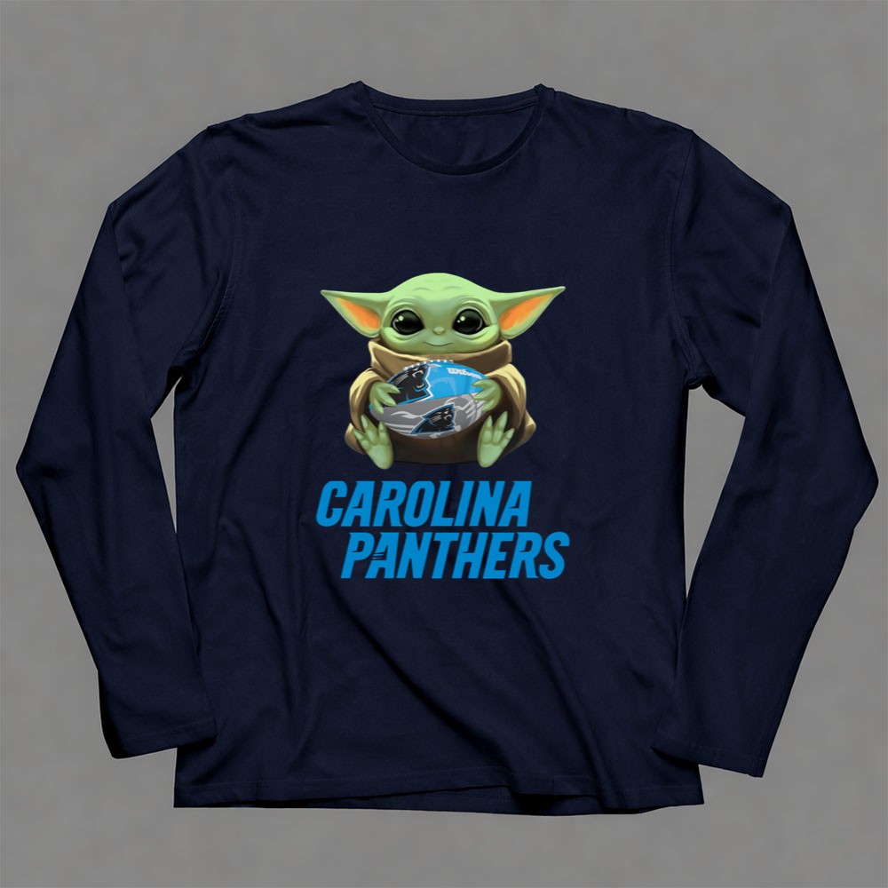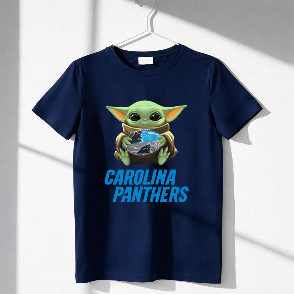 This design captures the endearing spirit of Baby Yoda as he joyfully embraces a Carolina Panthers football, symbolizing the unique crossover between the worlds of Star Wars and NFL fandom. With its cute cartoon style and vibrant colors, it invites fans to celebrate their shared passion for the game and their favorite characters, evoking warmth and camaraderie among supporters.