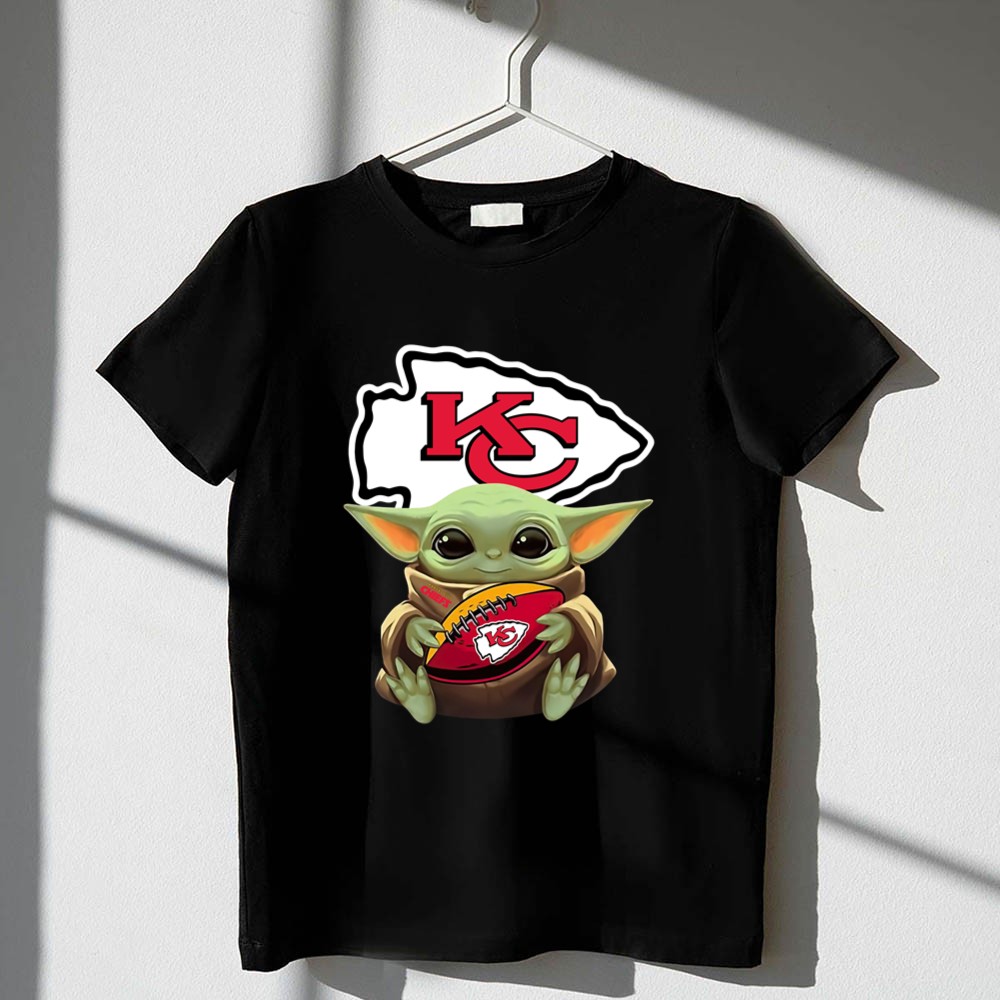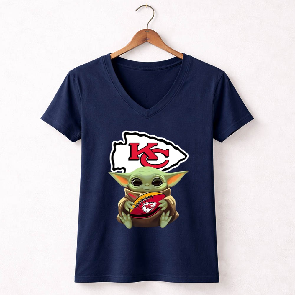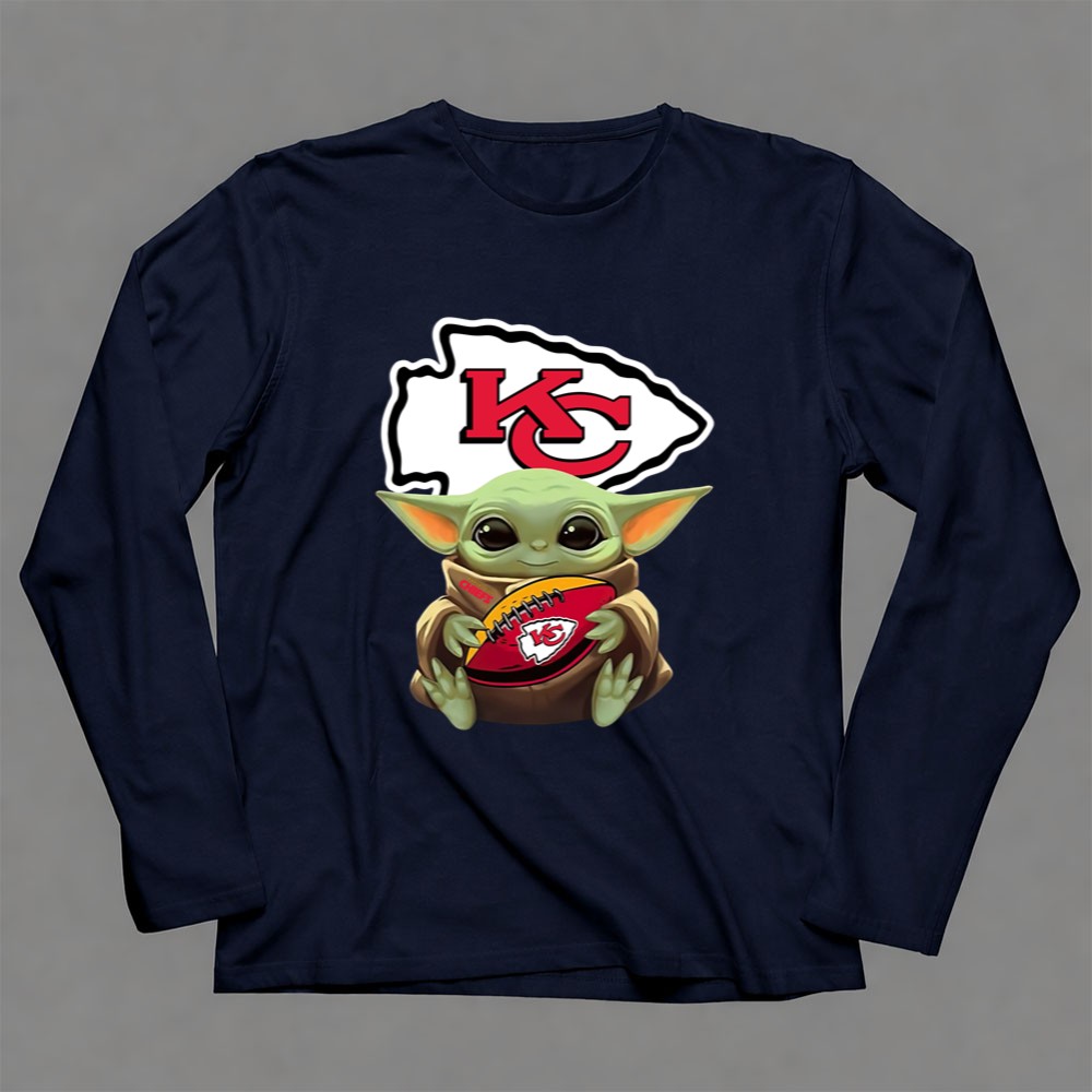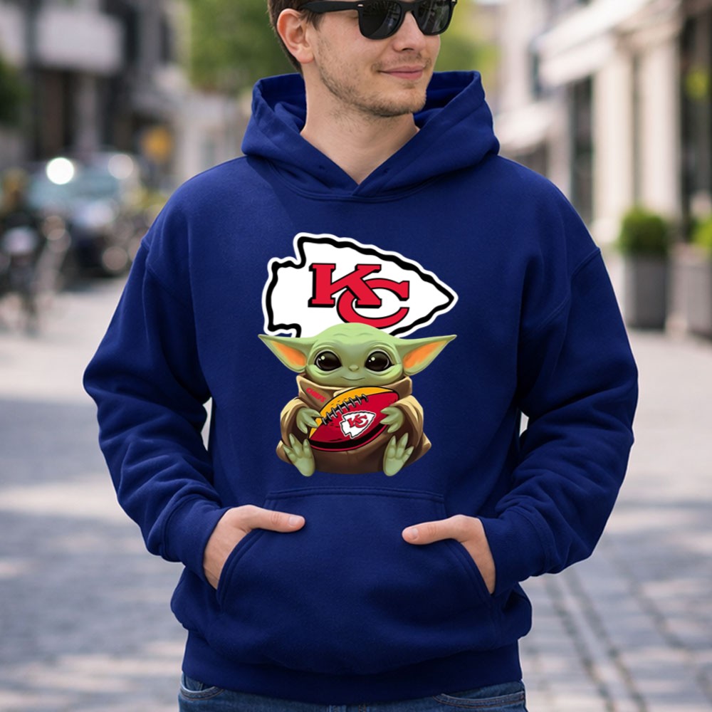 This design captures the joyous intersection of sports and fandom, featuring Baby Yoda embracing a Kansas City Chiefs football. It symbolizes the fun of game day while honoring the beloved character from Star Wars, inviting fans to unite in celebration of their teams and shared passions.