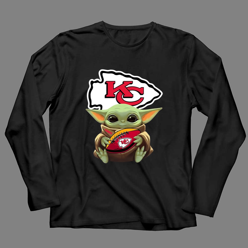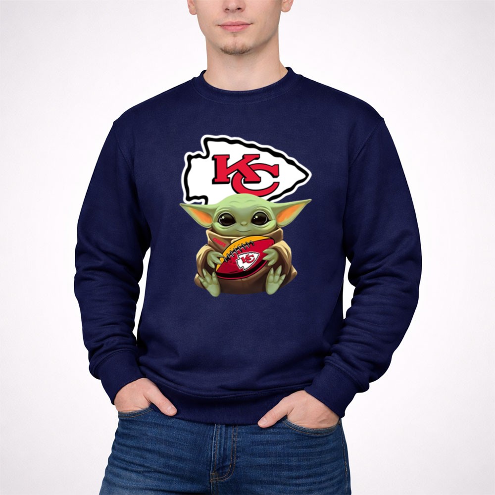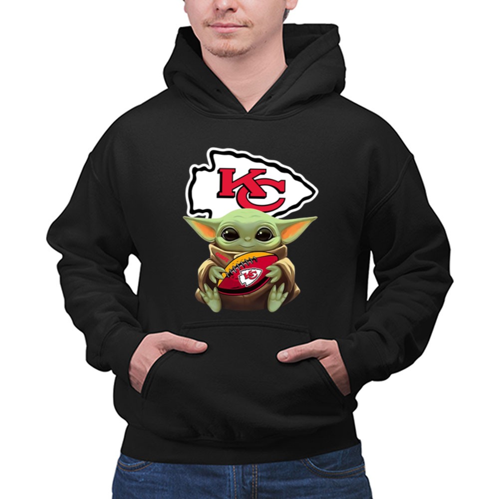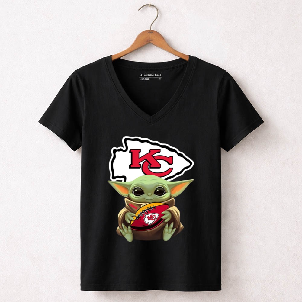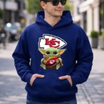 This design captures the joyous intersection of sports and fandom, featuring Baby Yoda embracing a Kansas City Chiefs football. It symbolizes the fun of game day while honoring the beloved character from Star Wars, inviting fans to unite in celebration of their teams and shared passions.