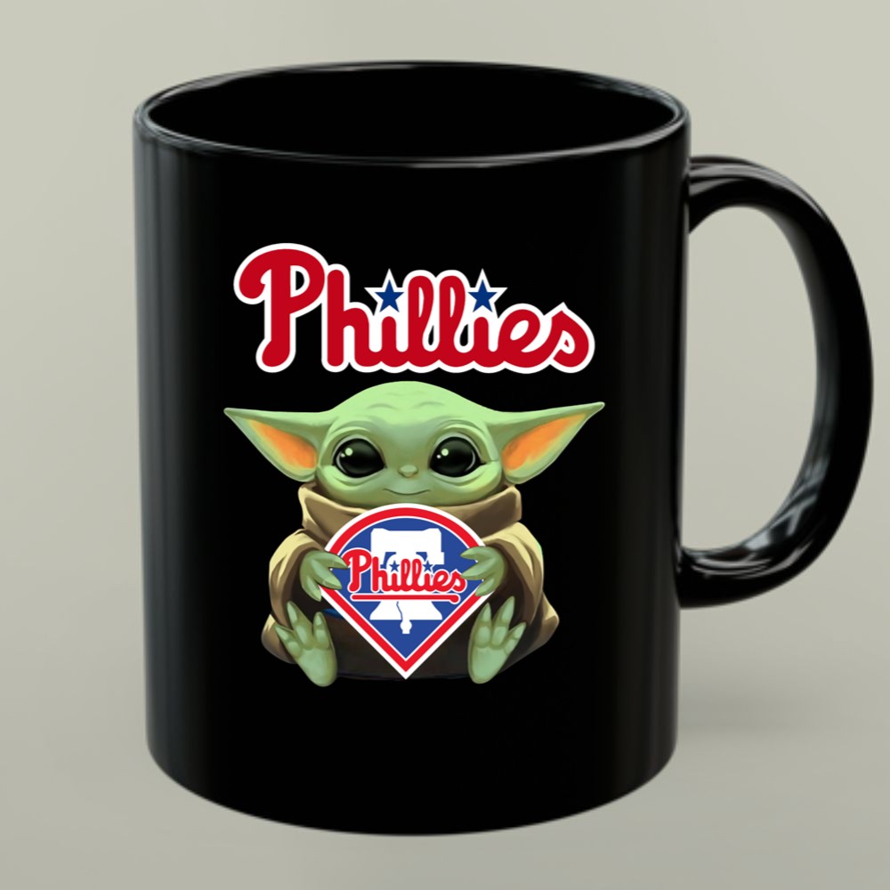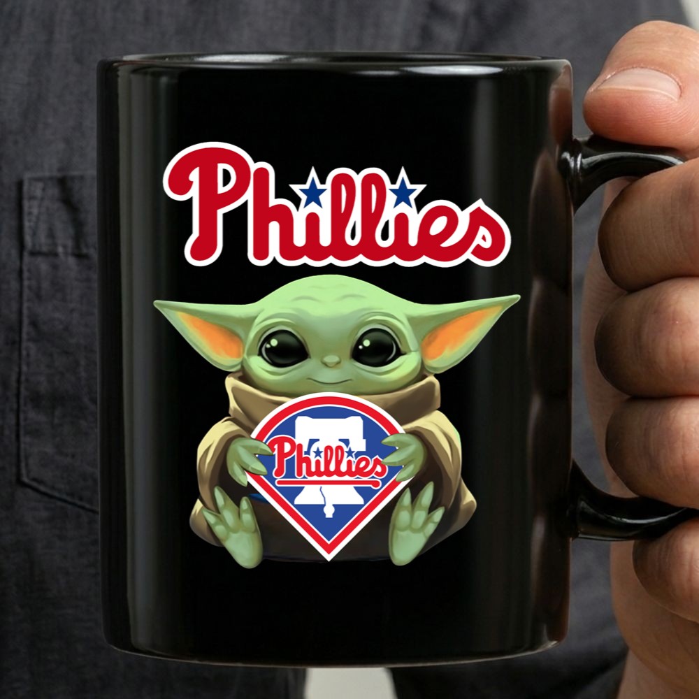 This enchanting design features Baby Yoda embracing the Philadelphia Phillies heart logo, embodying the joy of being a fan. With its vibrant colors and whimsical illustration, it merges the magic of childhood and the thrill of baseball, creating a delightful mashup that sparks smiles and laughter.