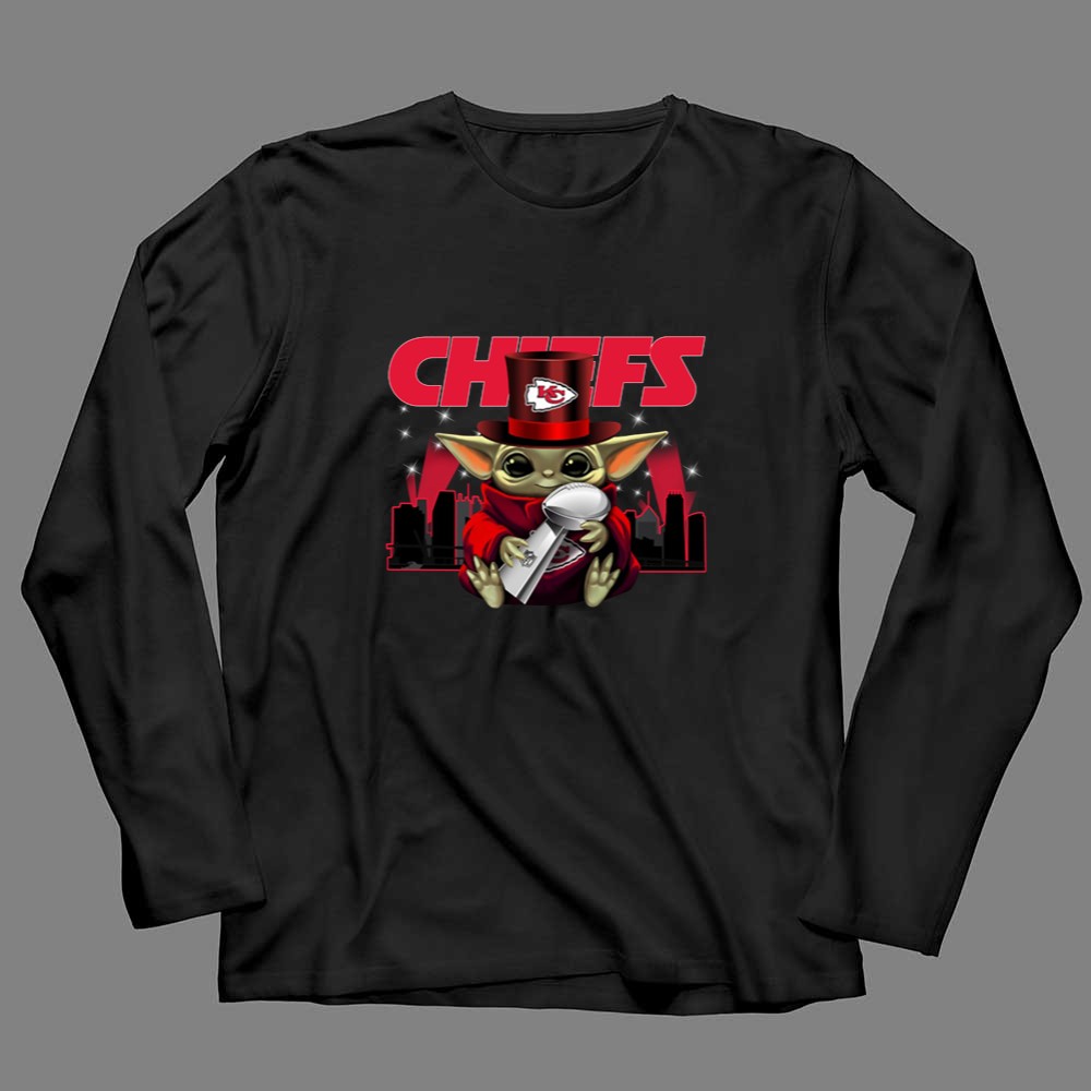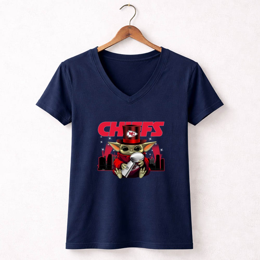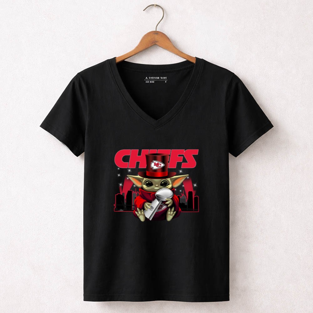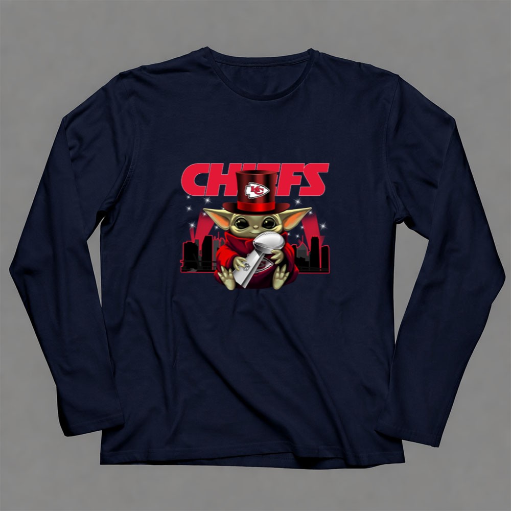 This whimsical design celebrates the Kansas City Chiefs’ Super Bowl triumphs through the endearing figure of Baby Yoda, donning a Chiefs hat and holding the Vince Lombardi Trophy. It embodies the playful spirit of urban streetwear while honoring the electric atmosphere of Arrowhead Stadium, inviting fans to revel in their shared love for the team and its victories.