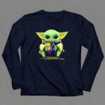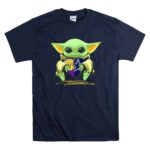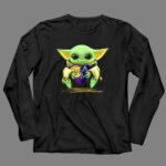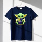 This whimsical design features Baby Yoda joyfully holding a Lakers basketball adorned with the Cowboys star logo, symbolizing the harmonious blend of sports and beloved pop culture. It evokes feelings of nostalgia and excitement, inviting fans to celebrate their passions together, whether at a game or a movie night with friends and family.