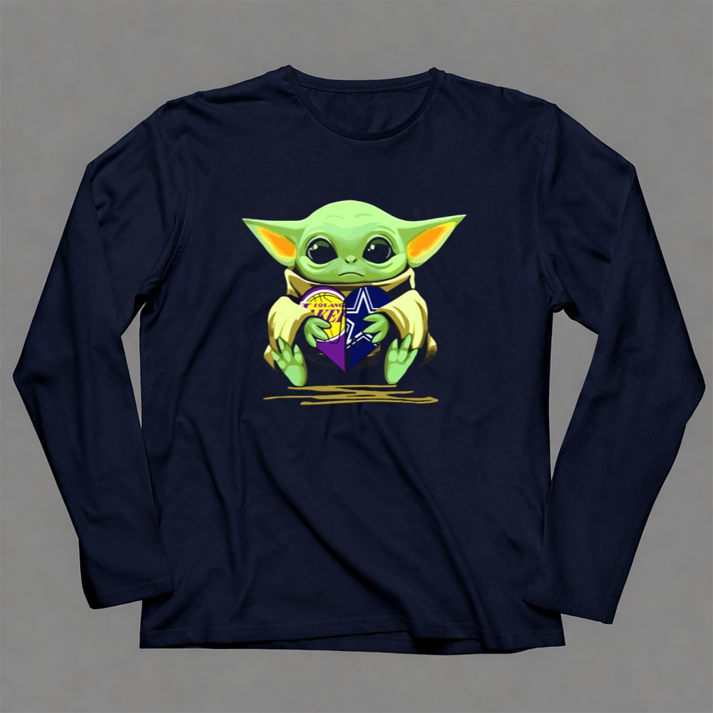 Los Angeles Lakers fan gear, Dallas Cowboys apparel, Baby Yoda merchandise, Star Wars sports fusion, game day shirt, pop culture pride, NBA NFL mashup, casual fan t-shirt
