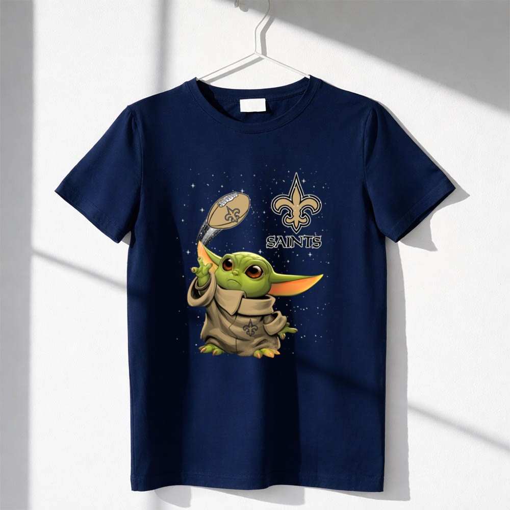 This design captures the enchanting spirit of both the Star Wars universe and the vibrant culture of New Orleans. With Baby Yoda donning Saints colors and throwing a football, it symbolizes the joy of fandom and the pride of game day rituals. It’s a heartfelt tribute to those who cherish both the magic of football and the whimsical charm of a beloved character.