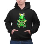 This playful design captures the heart of St. Patrick’s Day, featuring a cute Baby Yoda wearing a green top hat amidst vibrant shamrocks, symbolizing luck and joy. With the Pittsburgh Penguins logo and crossed hockey sticks, it merges sports pride with festive cheer, inviting fans to celebrate their love for hockey and community during special occasions.