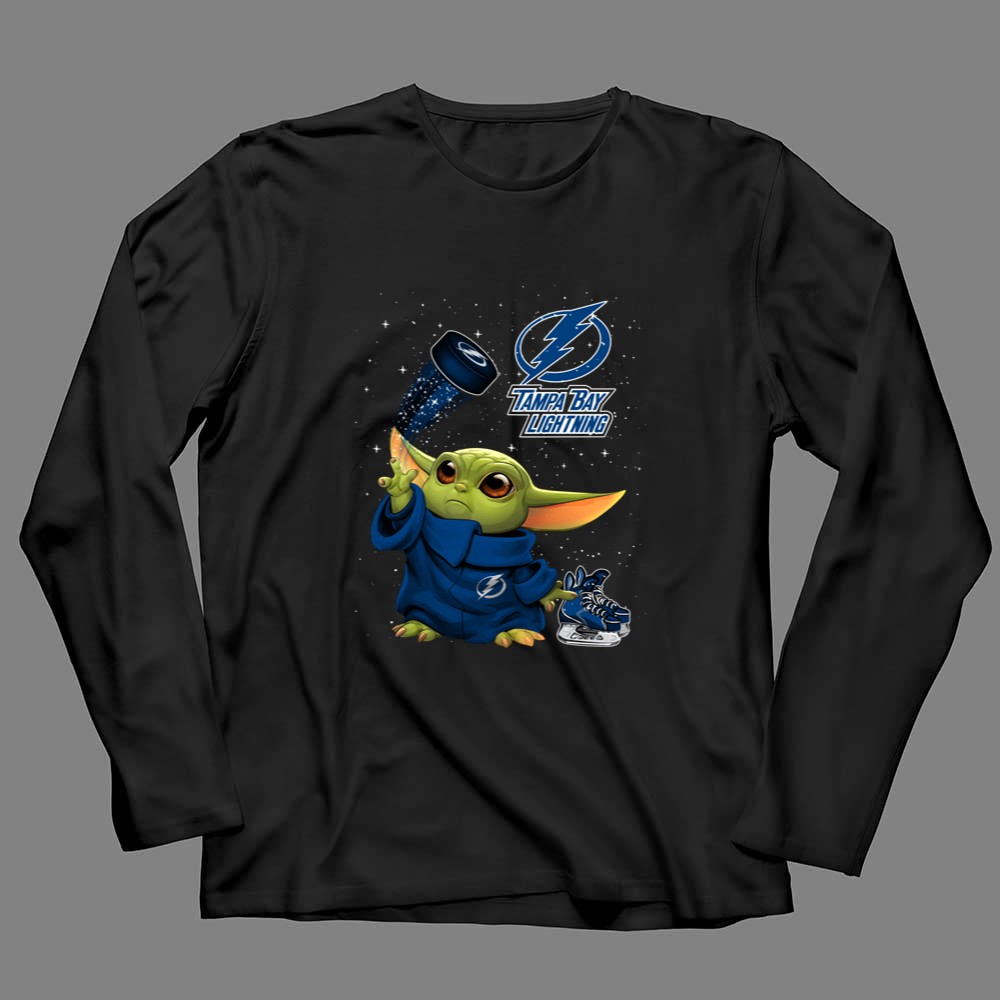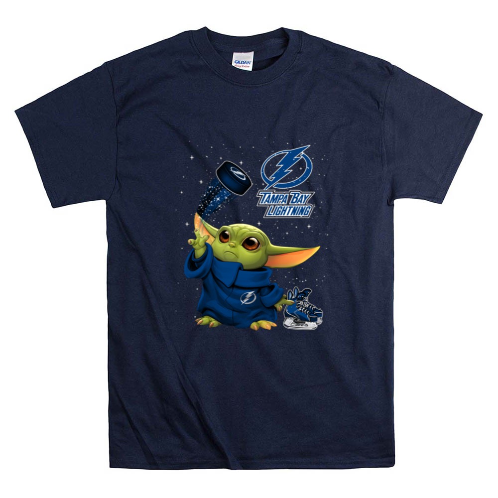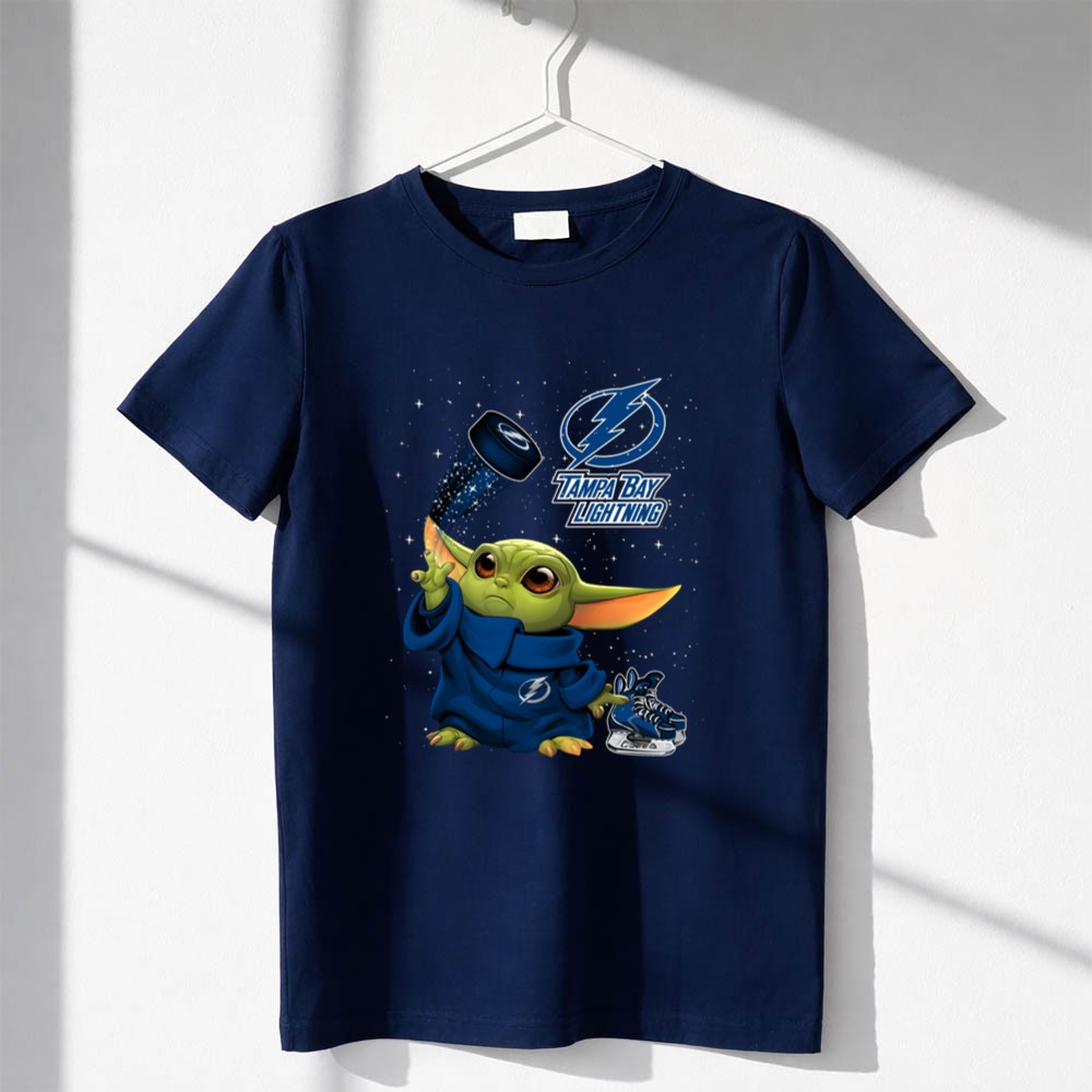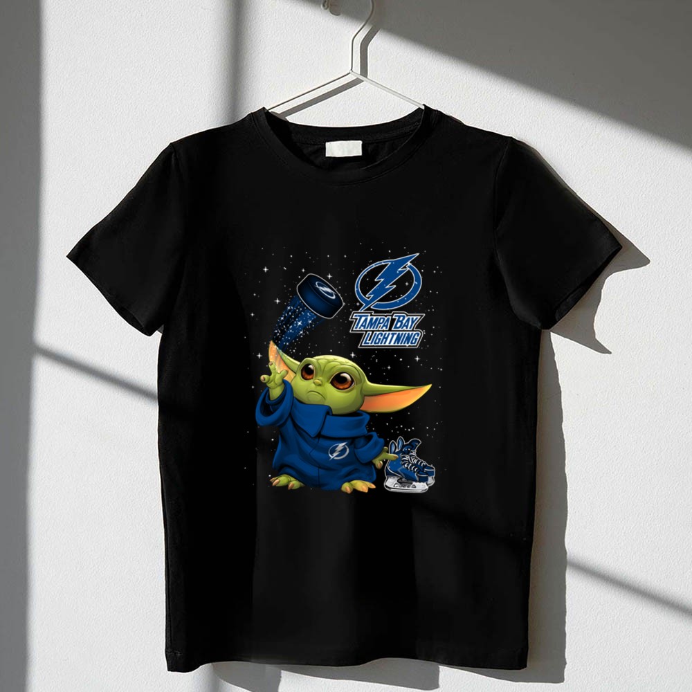 Baby Yoda Tampa Bay Lightning Hockey Fan Art Grogu Jedi Force Skating Puck Shirt