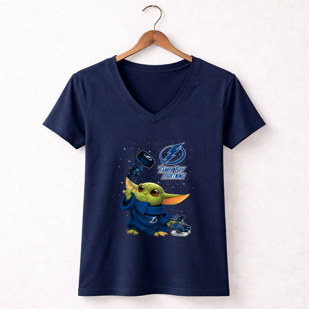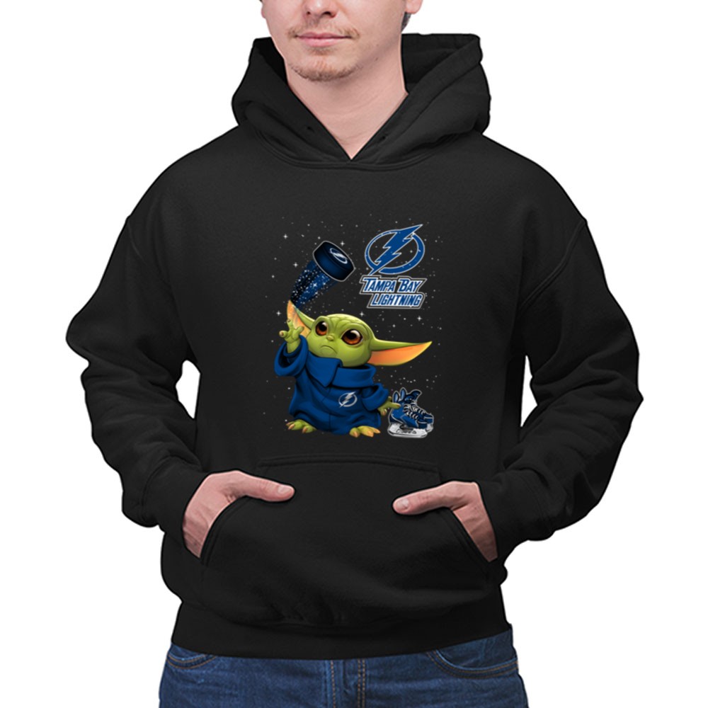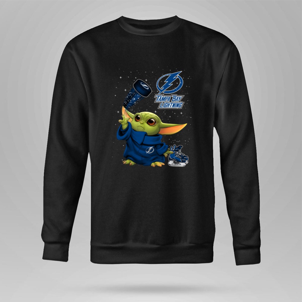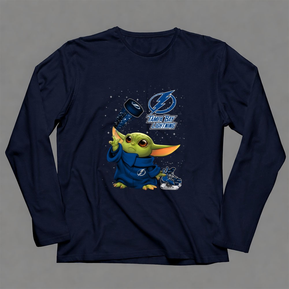 Baby Yoda Tampa Bay Lightning Hockey Fan Art Grogu Jedi Force Skating Puck Shirt