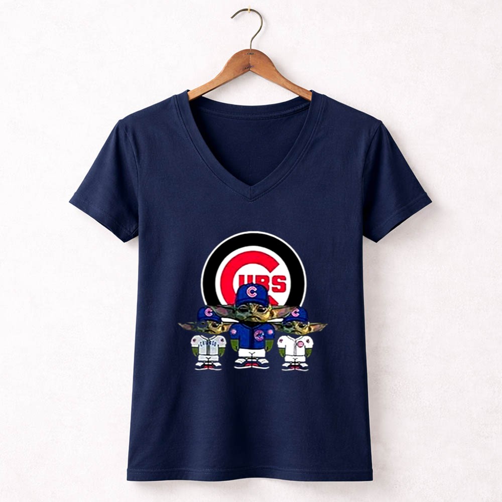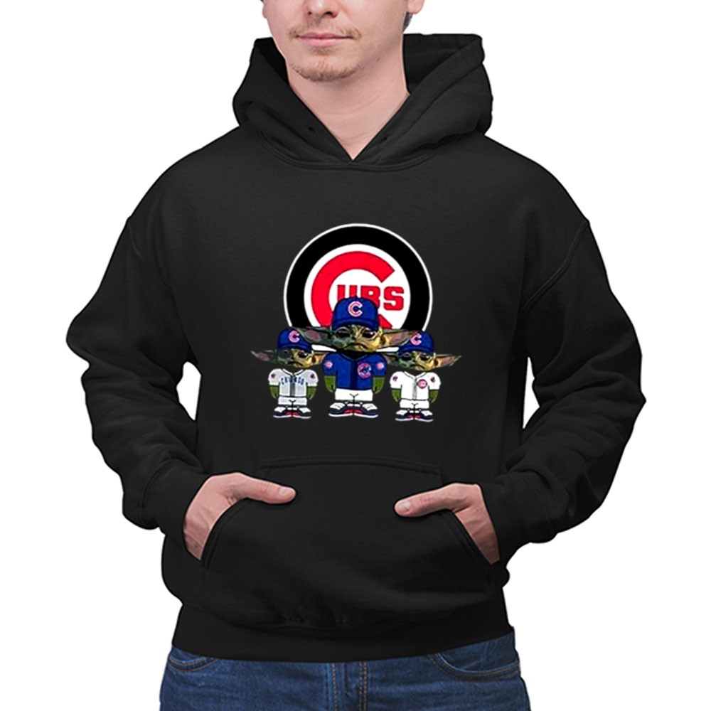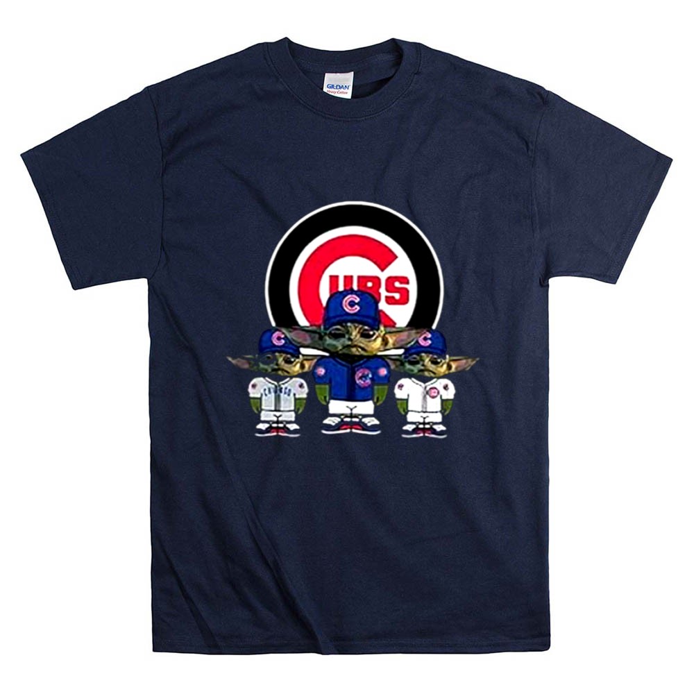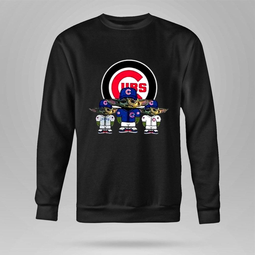 This playful design brings together the beloved Baby Yoda and the vibrant spirit of Chicago Cubs fandom. Set against a backdrop featuring the iconic Cubs logo, it reflects a delightful mashup of pop culture, inviting fans to celebrate their passions in a colorful, cartoon style that resonates with both young and old alike.