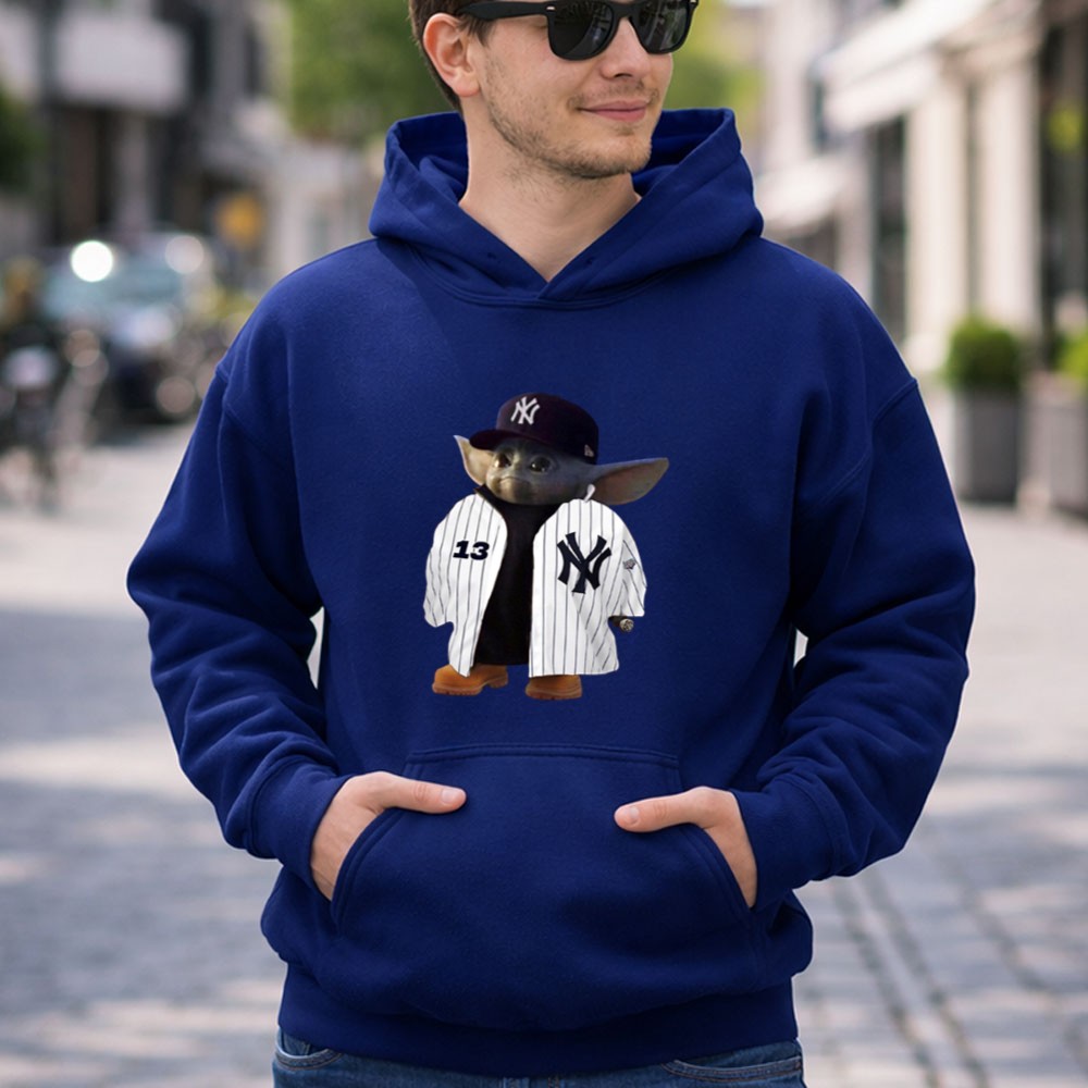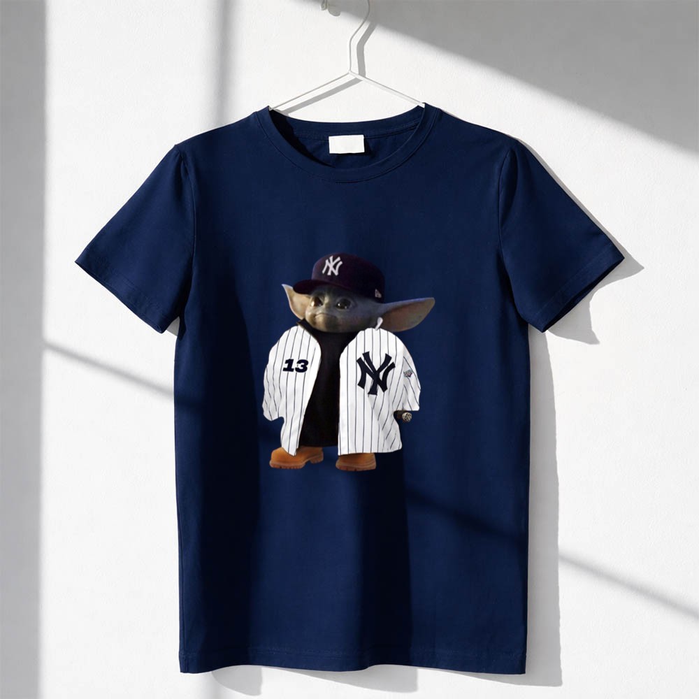 New York Yankees pride, Baby Yoda apparel, Star Wars fandom, Bronx Bombers, game day wear, premium cotton t-shirt, baseball fan gifts, NYC sports culture
