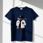 This charming design features Baby Yoda sporting a New York Yankees jersey, embodying the playful spirit of both sports and pop culture. It’s a delightful tribute that brings together two beloved worlds, inviting fans to celebrate their passions with whimsy and pride. The image captures the heartwarming essence of introducing the next generation to the excitement of game day, wrapped in a fun, cartoonish style.