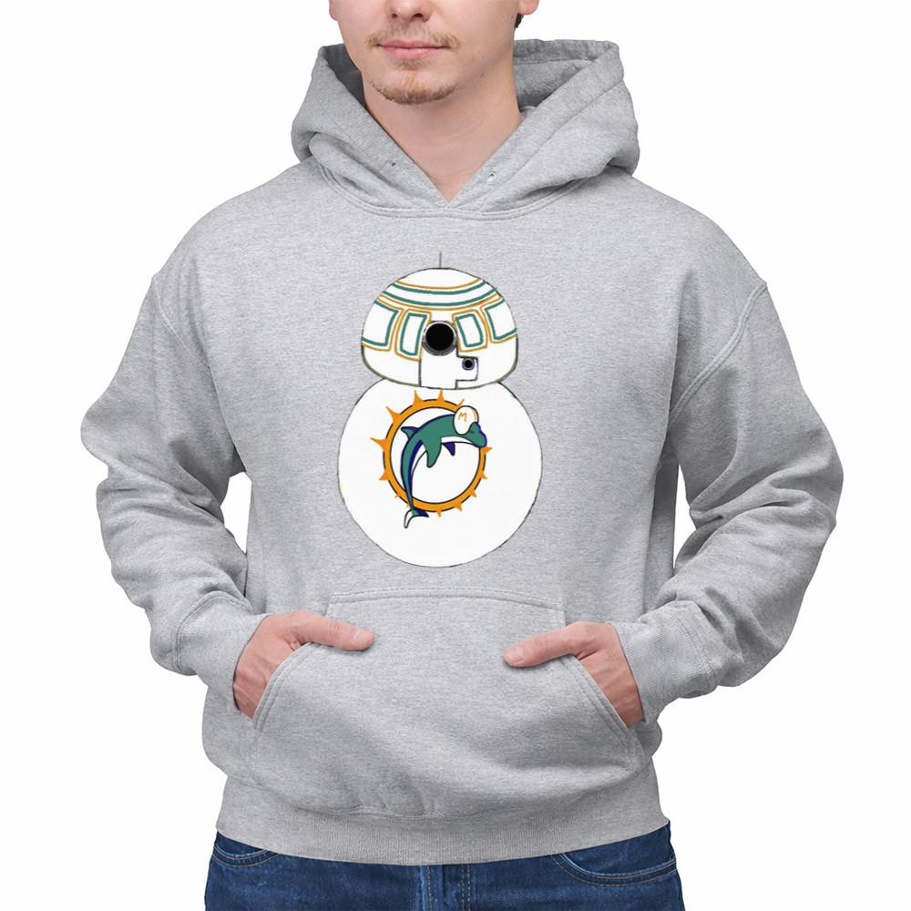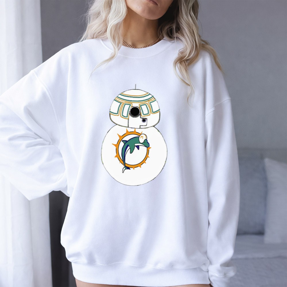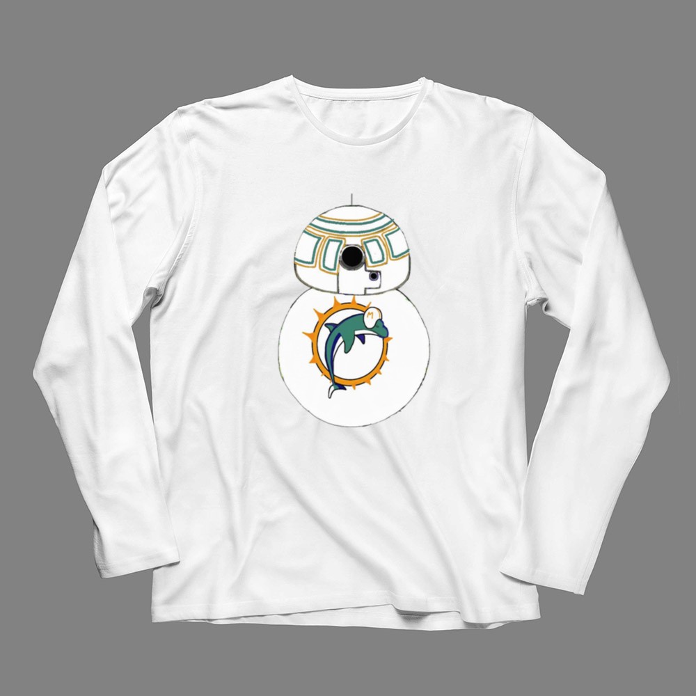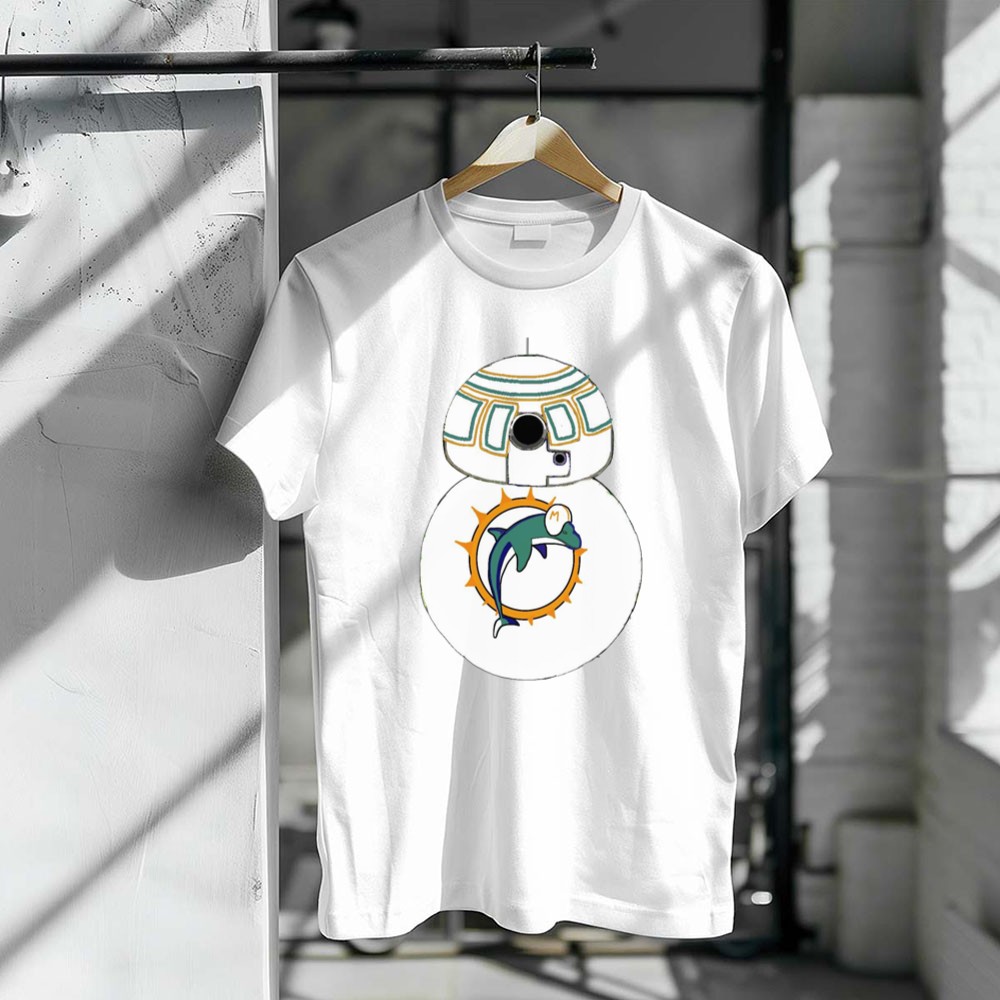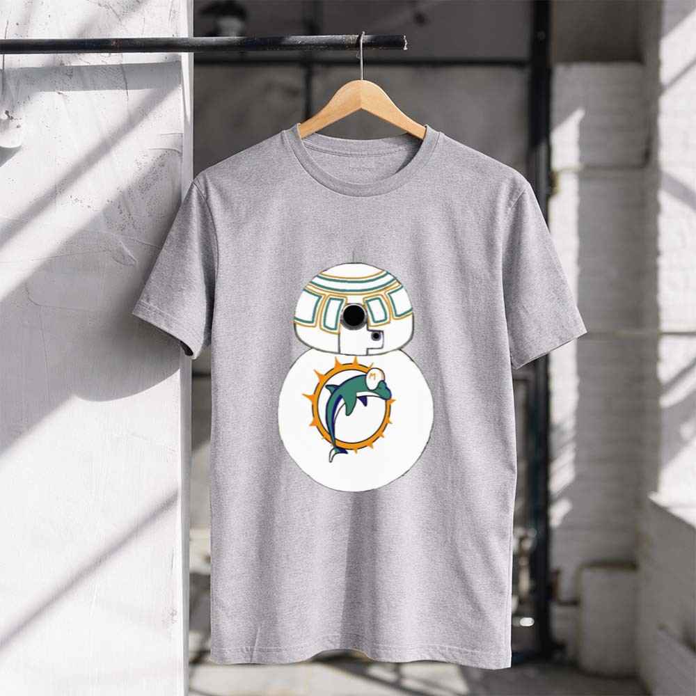 This design embodies the spirited connection between Miami Dolphins fans and Star Wars enthusiasts. The BB-8 Droid, adorned with the Miami Dolphins logo, brings a playful twist to modern fan apparel, celebrating the joy and laughter that comes with being part of two beloved universes. It’s a tribute to the shared identity and nostalgia that fans cherish.