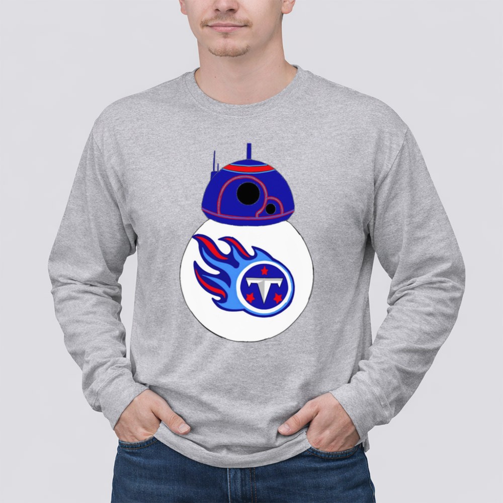 This design captures the essence of fandom by merging the vibrant spirit of the Tennessee Titans with the playful charm of BB-8. The bold flames and striking logo bring to life a celebration of sports and pop culture, creating a unique connection for fans to embrace their passions. It’s a tribute to the joy of game day and the shared excitement of two beloved worlds.