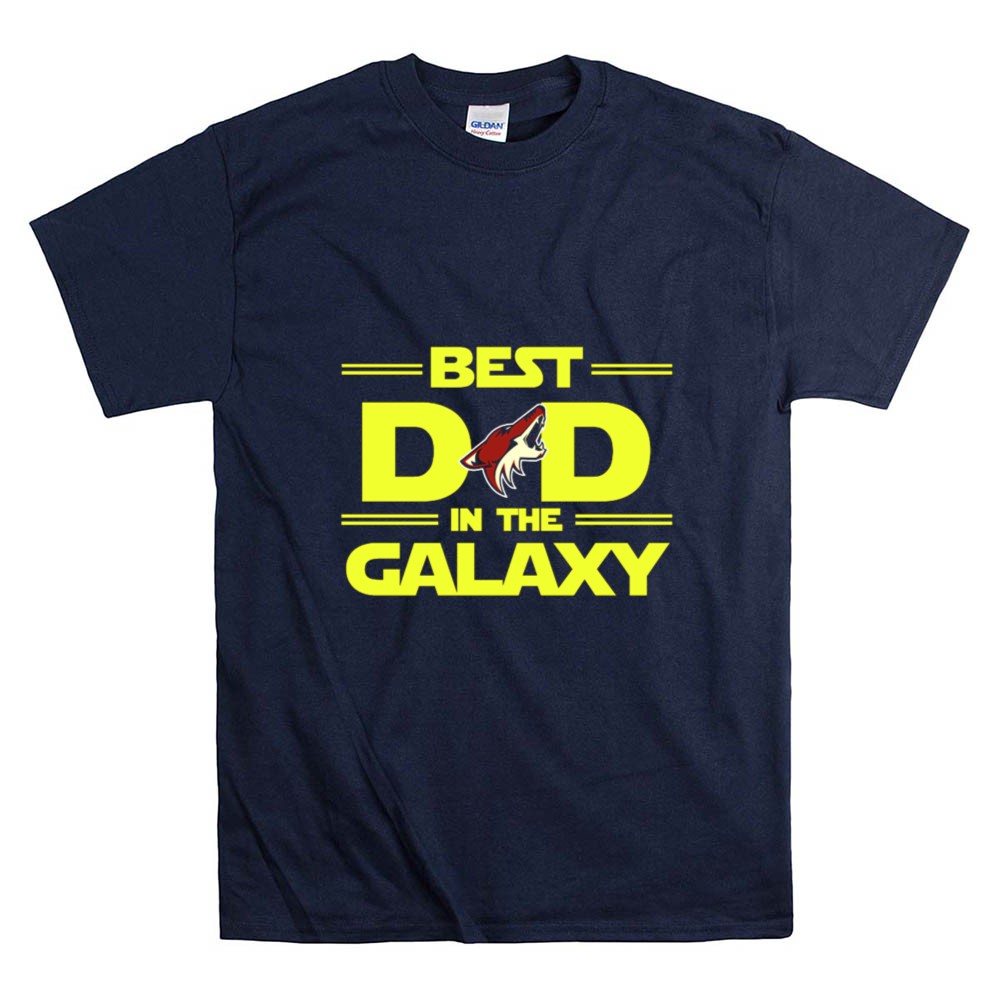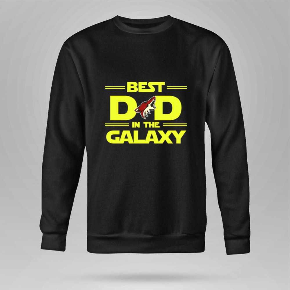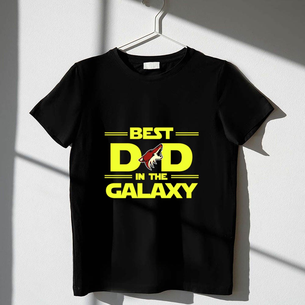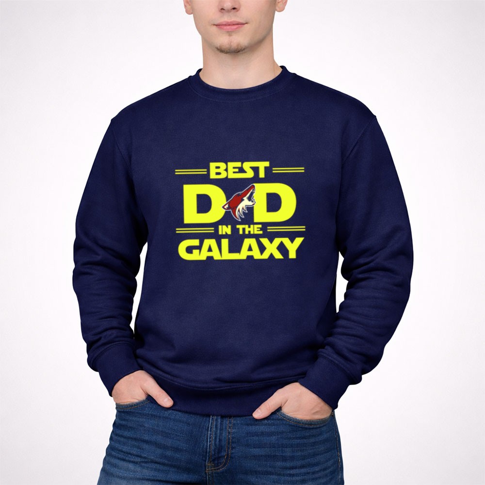 This design playfully merges the thrill of being a hockey dad with the beloved Star Wars universe. By featuring the quote ‘BEST DAD IN THE GALAXY’ alongside the Arizona Coyotes logo, it encapsulates the joy of fatherhood and team spirit, evoking pride and nostalgia for fans and families alike.