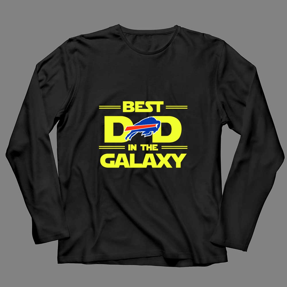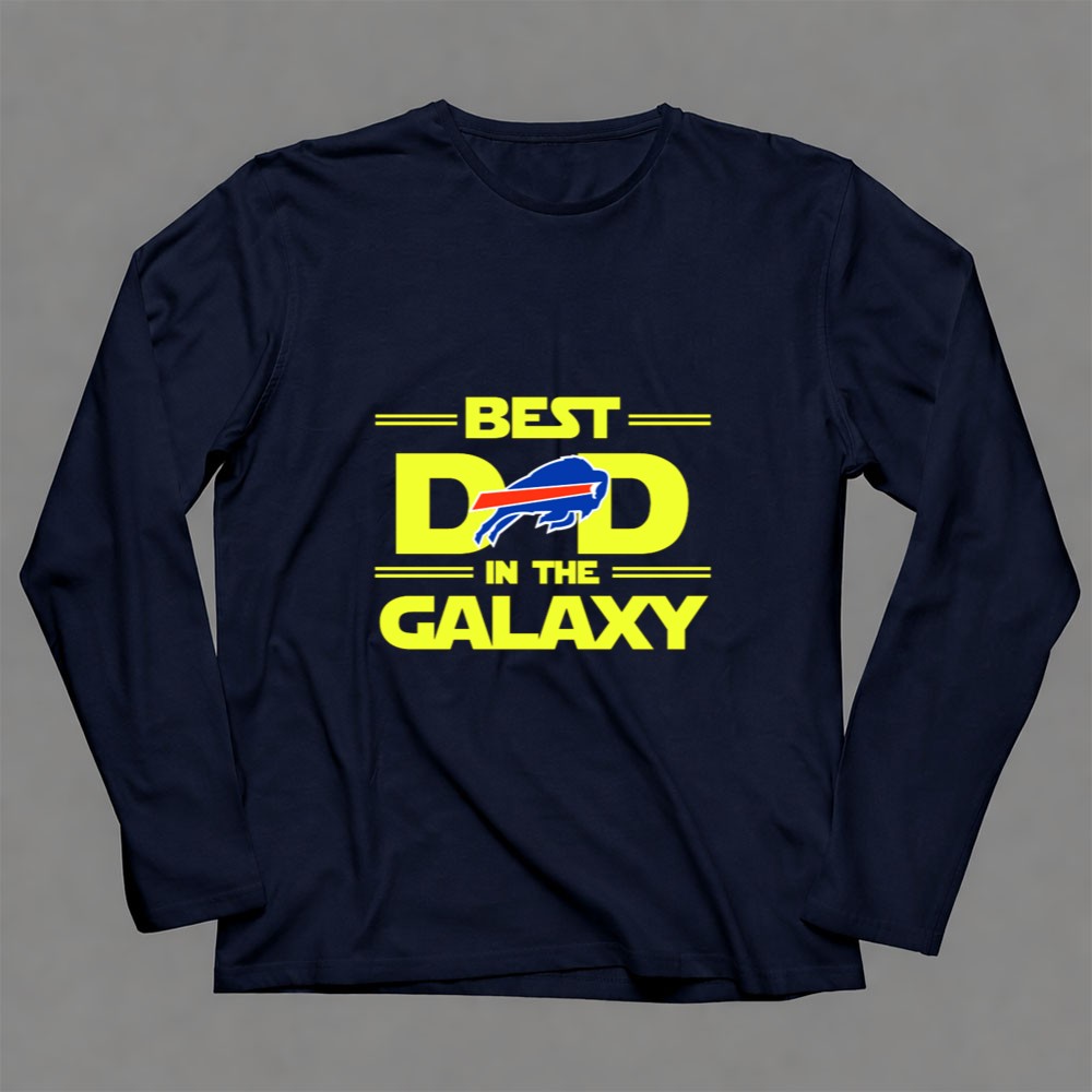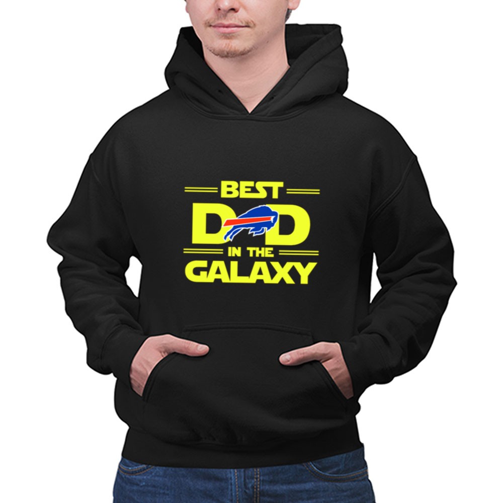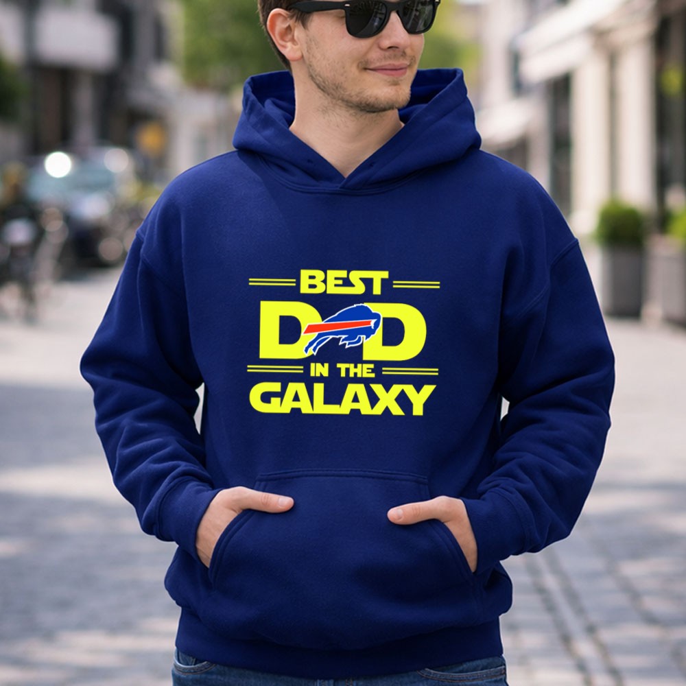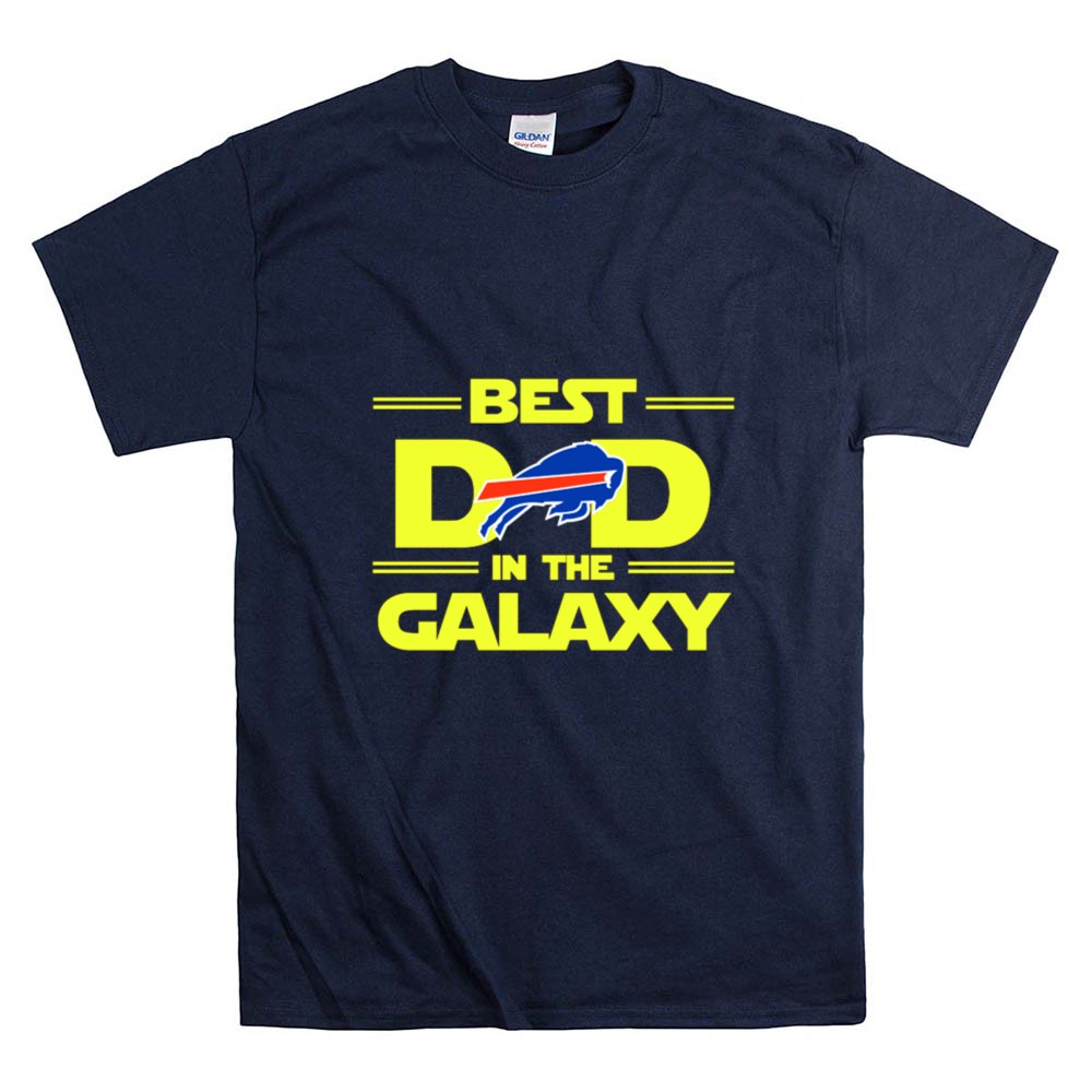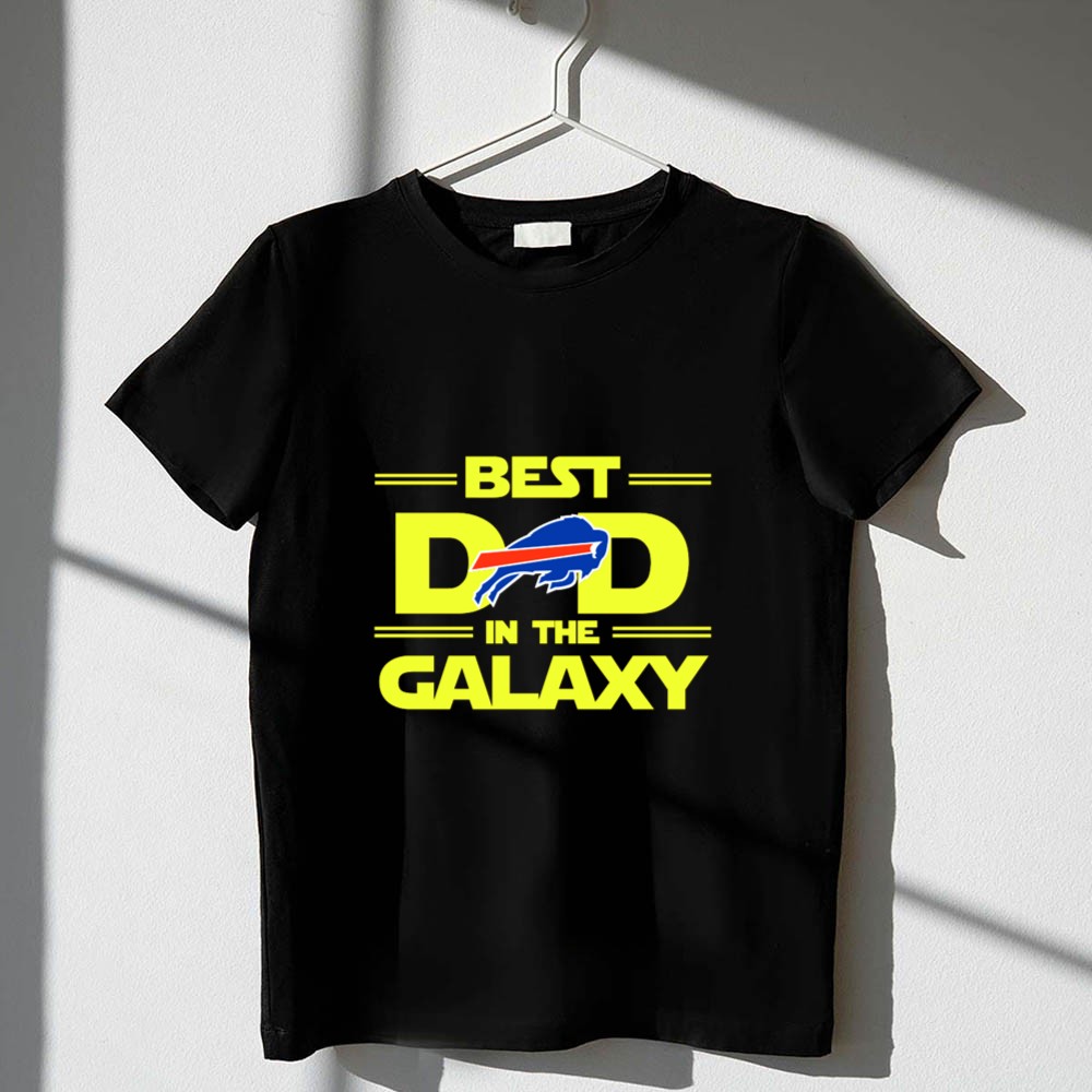 This design playfully merges the iconic ‘BEST DAD IN THE GALAXY’ phrase with the Buffalo Bills logo, celebrating the joy and pride of being a fan. It reflects a special connection between a dad and his family, making every wear a reminder of shared moments and laughter during game days and beyond.