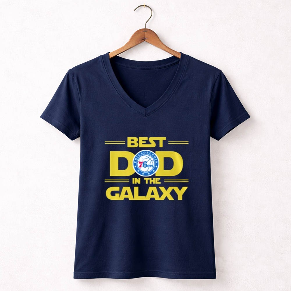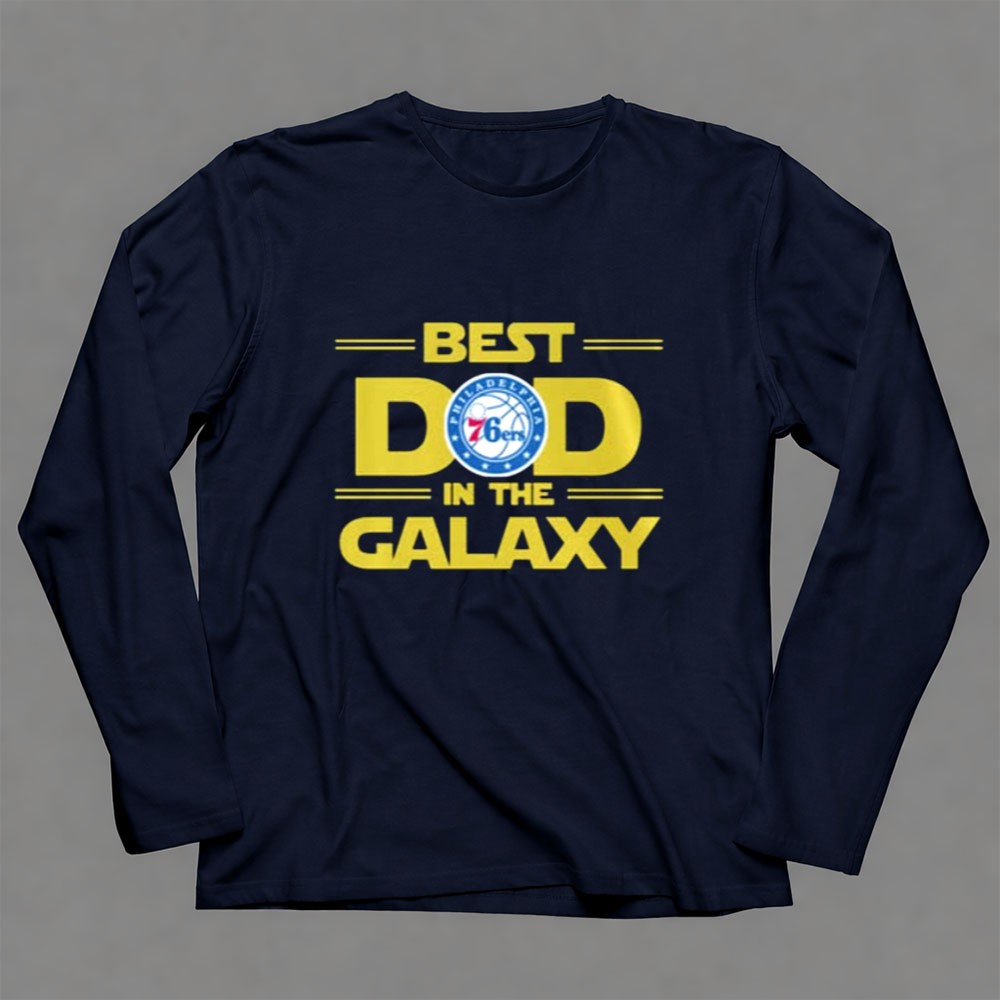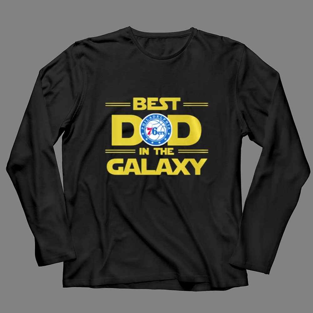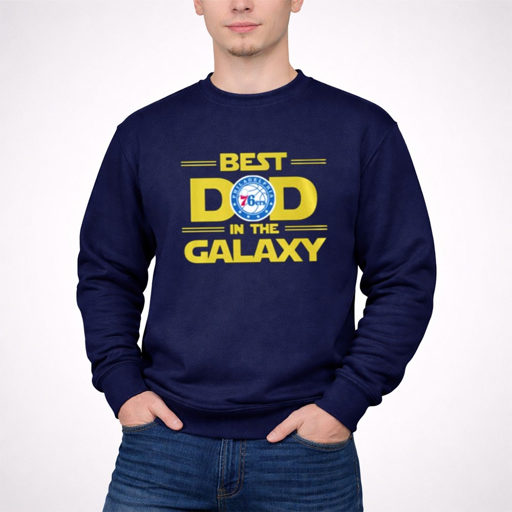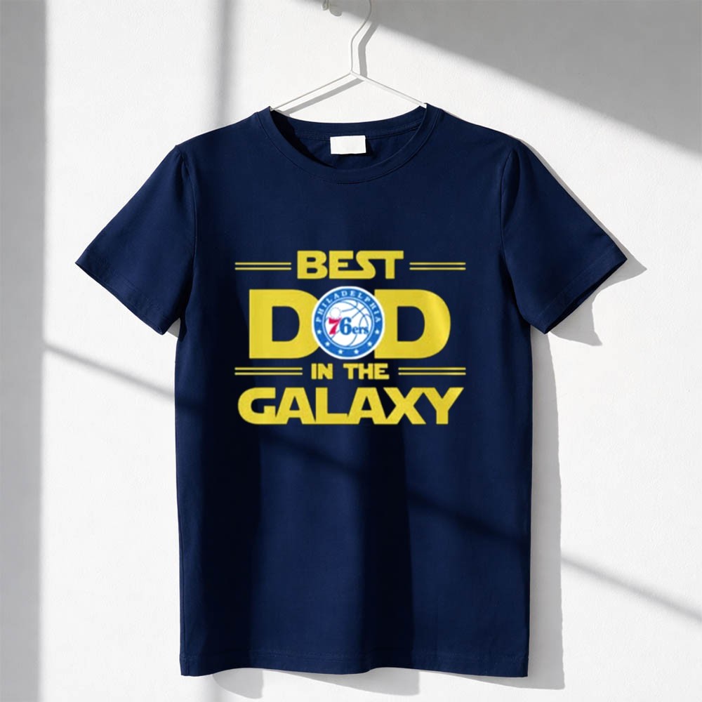 This design embodies the love and pride of a father who shares his passions with his child. By blending the Philadelphia 76ers logo with the playful spirit of Star Wars, it creates a playful homage to the joys of sports and cinematic adventures, celebrating the unique connection between them. It’s not just a shirt; it’s a badge of honor for every dad who cherishes these cherished moments with his family.