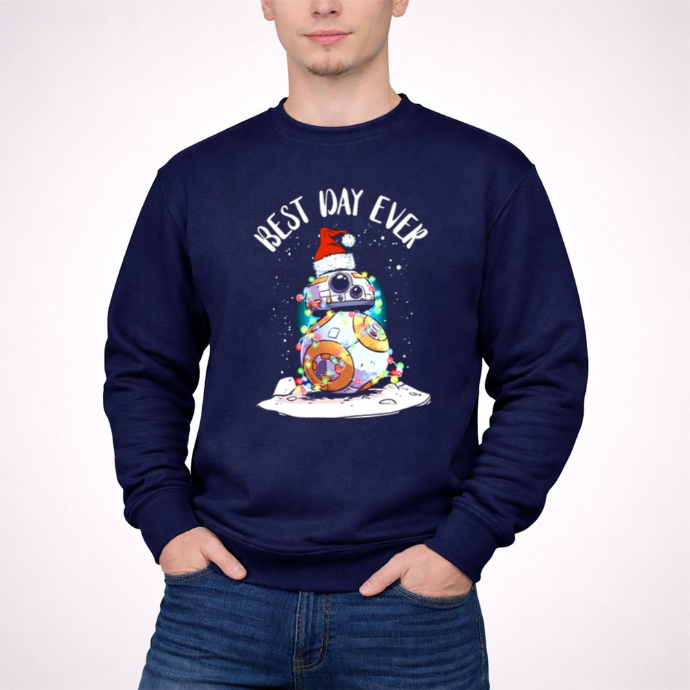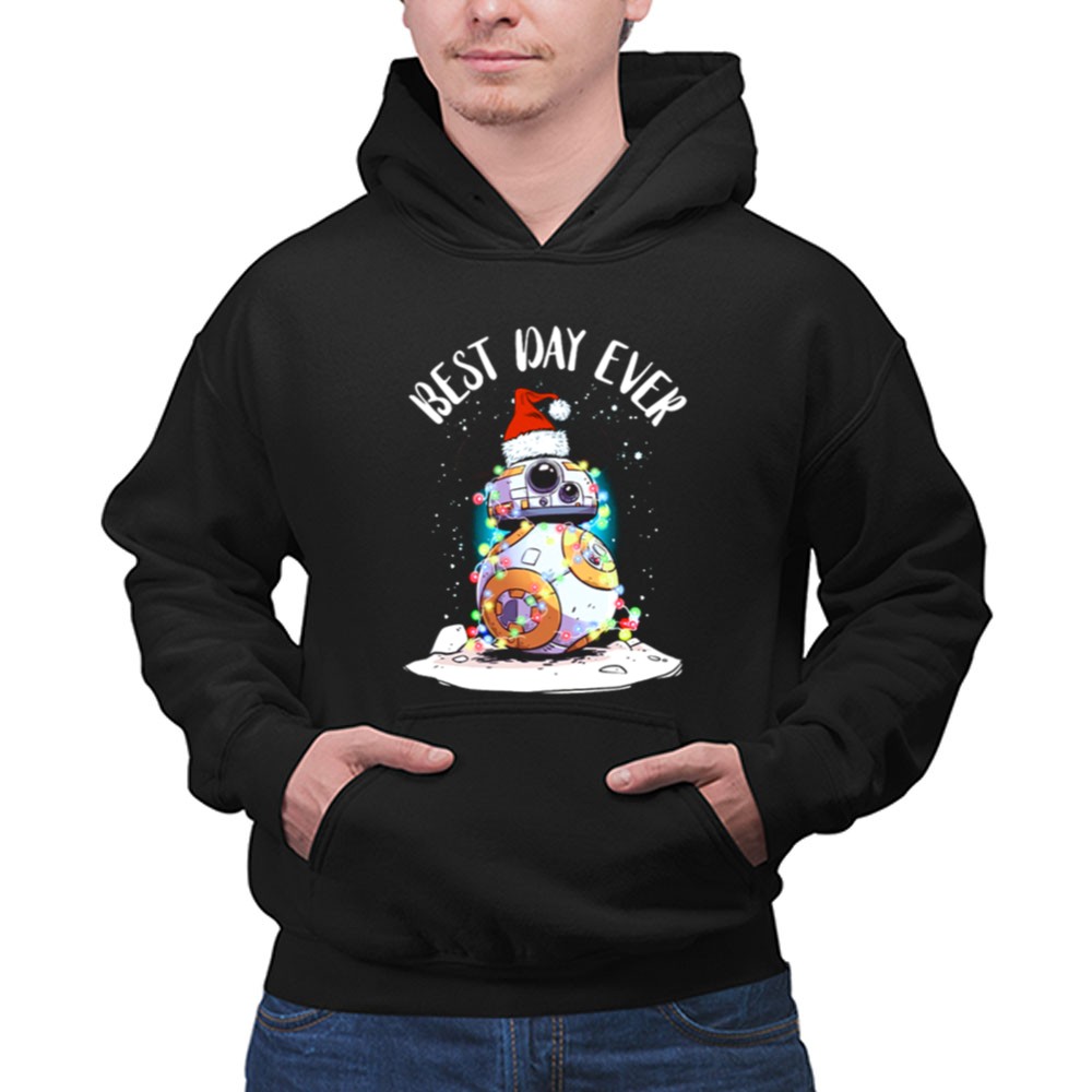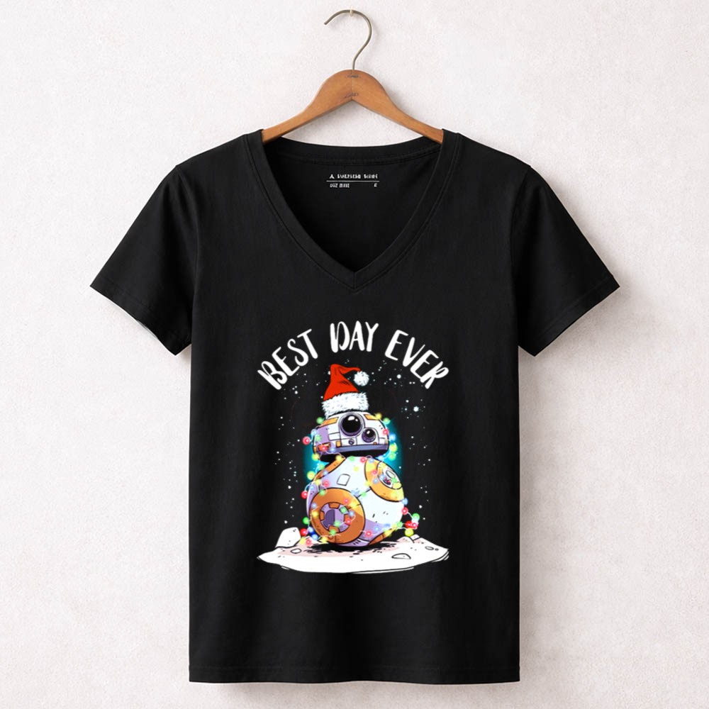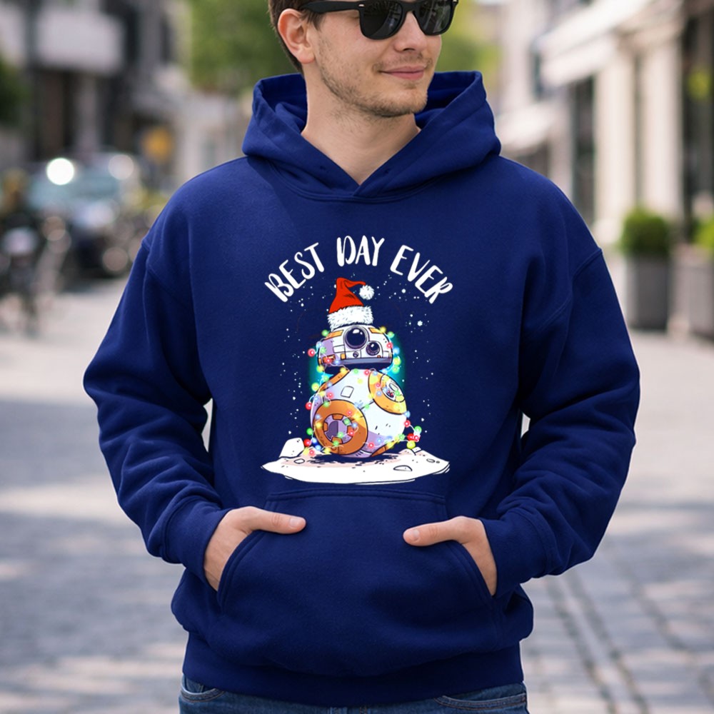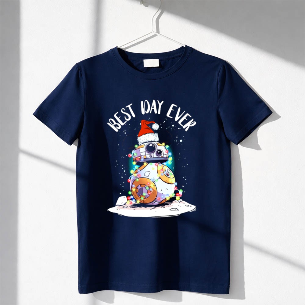This charming illustration captures BB-8 in a Santa hat surrounded by vibrant holiday lights, inviting everyone to share in the joy of the season. The design reflects the playful spirit of Star Wars, evoking warmth and togetherness, making it a delightful addition to any festive celebration. Celebrate the laughter and love of family moments with this unique droid-themed apparel.