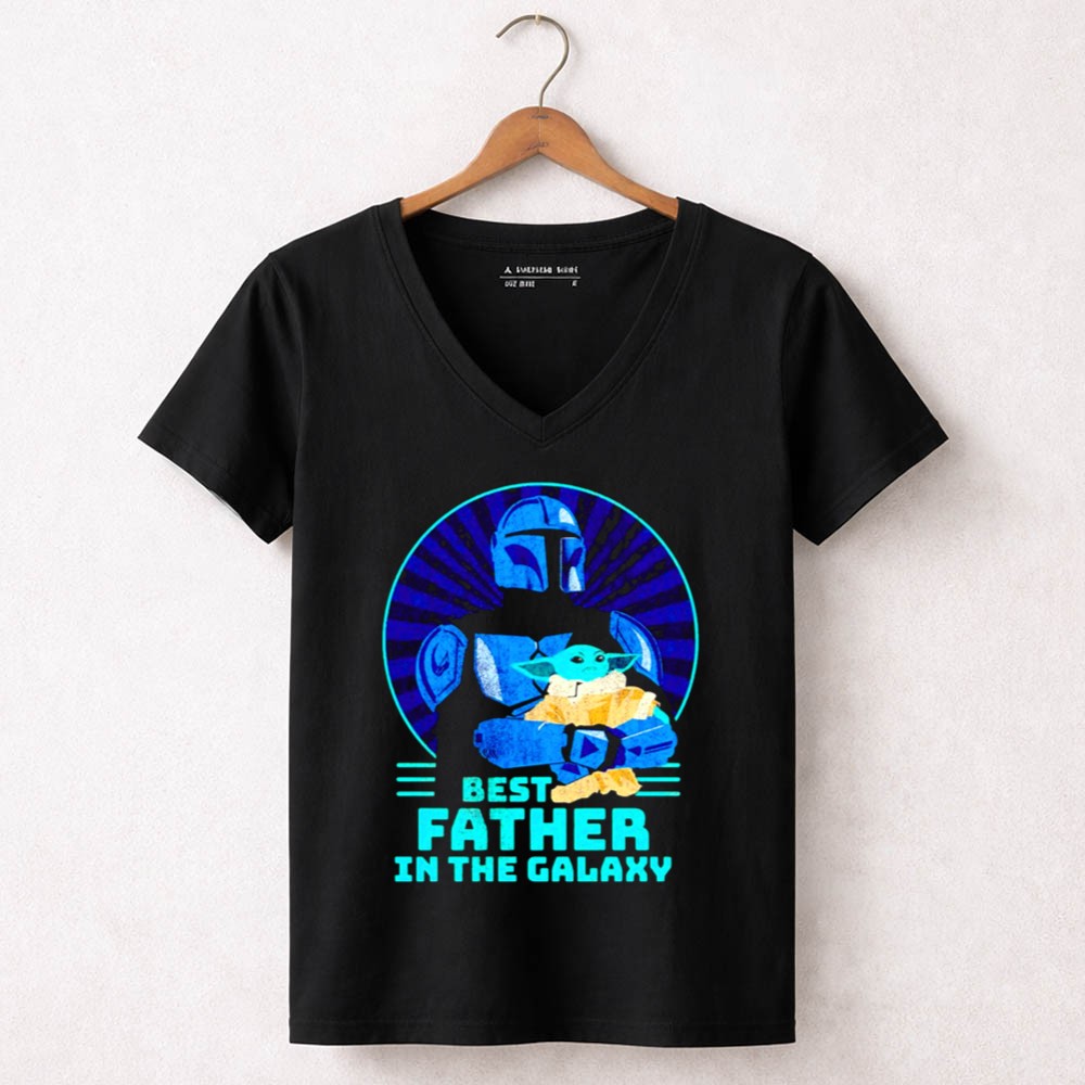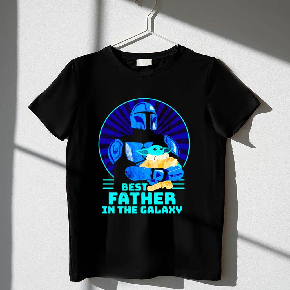 Best Father In The Galaxy Mandalorian Hug Baby Yoda Shirt