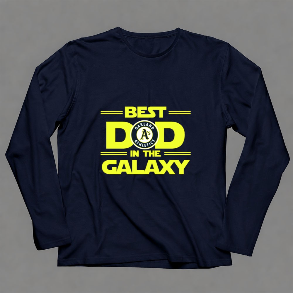 This design is a heartfelt nod to fathers who balance their love for baseball with the magic of the Star Wars universe. The phrase ‘BEST DAD IN THE GALAXY’ paired with the Oakland Athletics logo encapsulates the joy and humor of fatherhood, creating a meaningful connection that resonates with both parents and kids alike. Its minimalist style and vibrant colors make it a standout piece that celebrates both identity and passion.