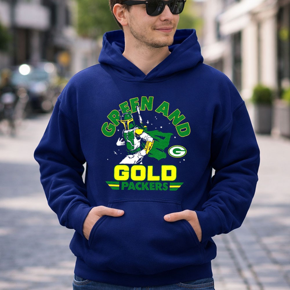 This shirt speaks to die-hard Star Wars fans who cheer passionately for the Packers, embodying a blend of nostalgia and team spirit.