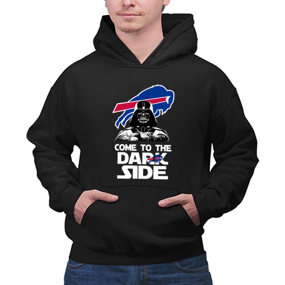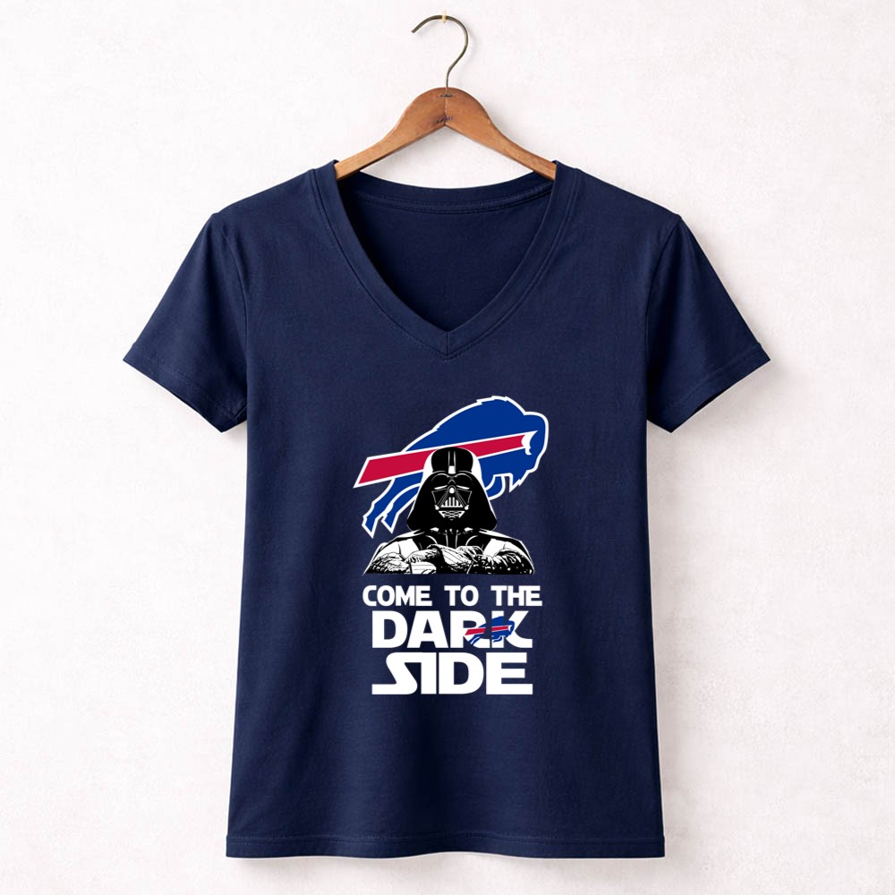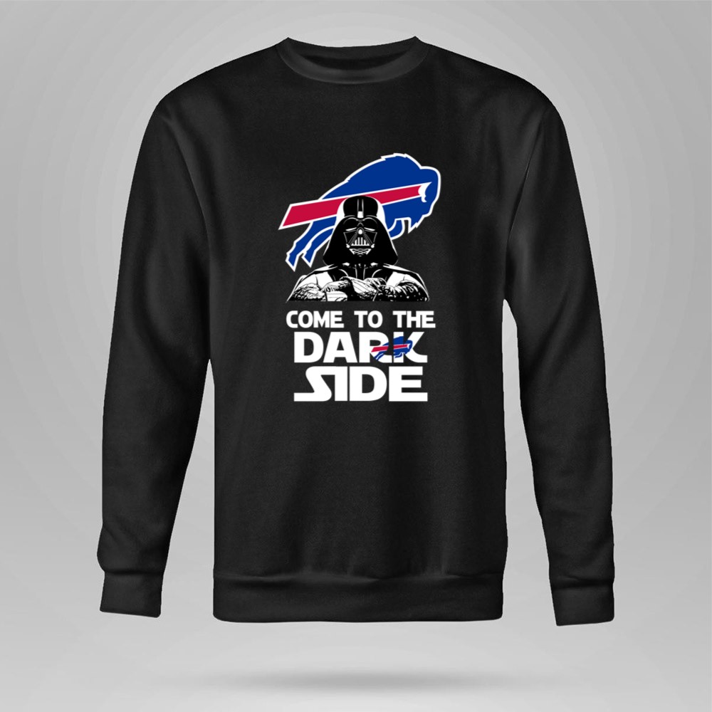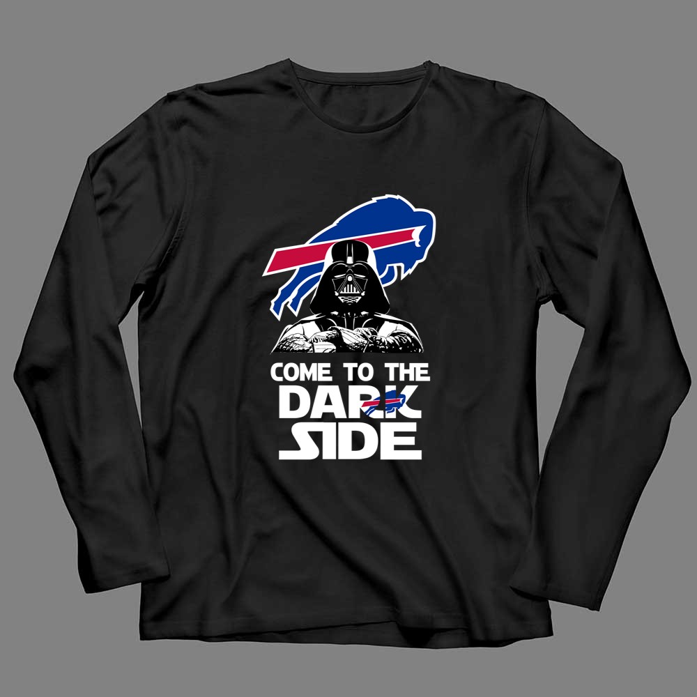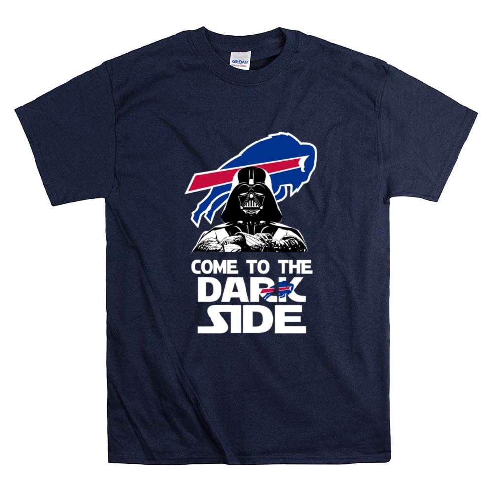 This design captures the essence of fandom by merging the iconic Buffalo Bills logo with Darth Vader’s memorable quote, ‘Come to the Dark Side.’ It reflects the playful spirit of Buffalo’s sports culture, allowing fans to embrace their love for both football and a classic film. With its urban streetwear vibe, this shirt is a tribute to those who wear their fandom with pride.