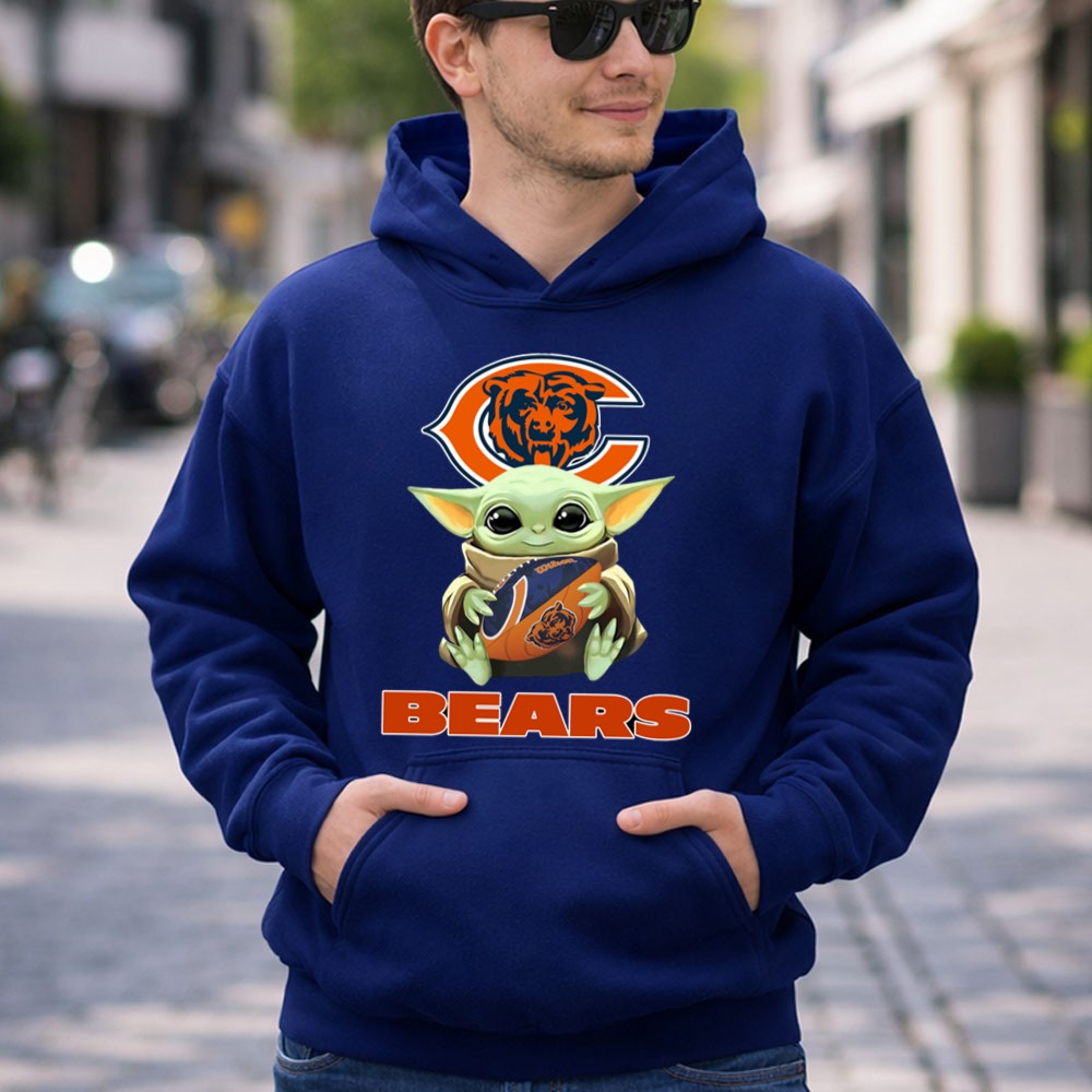 This design merges the playful charm of Baby Yoda with the iconic Chicago Bears logo, creating a delightful piece of fan gear for the littlest supporters. It’s a perfect blend of cuteness and team spirit, ideal for budding football enthusiasts.