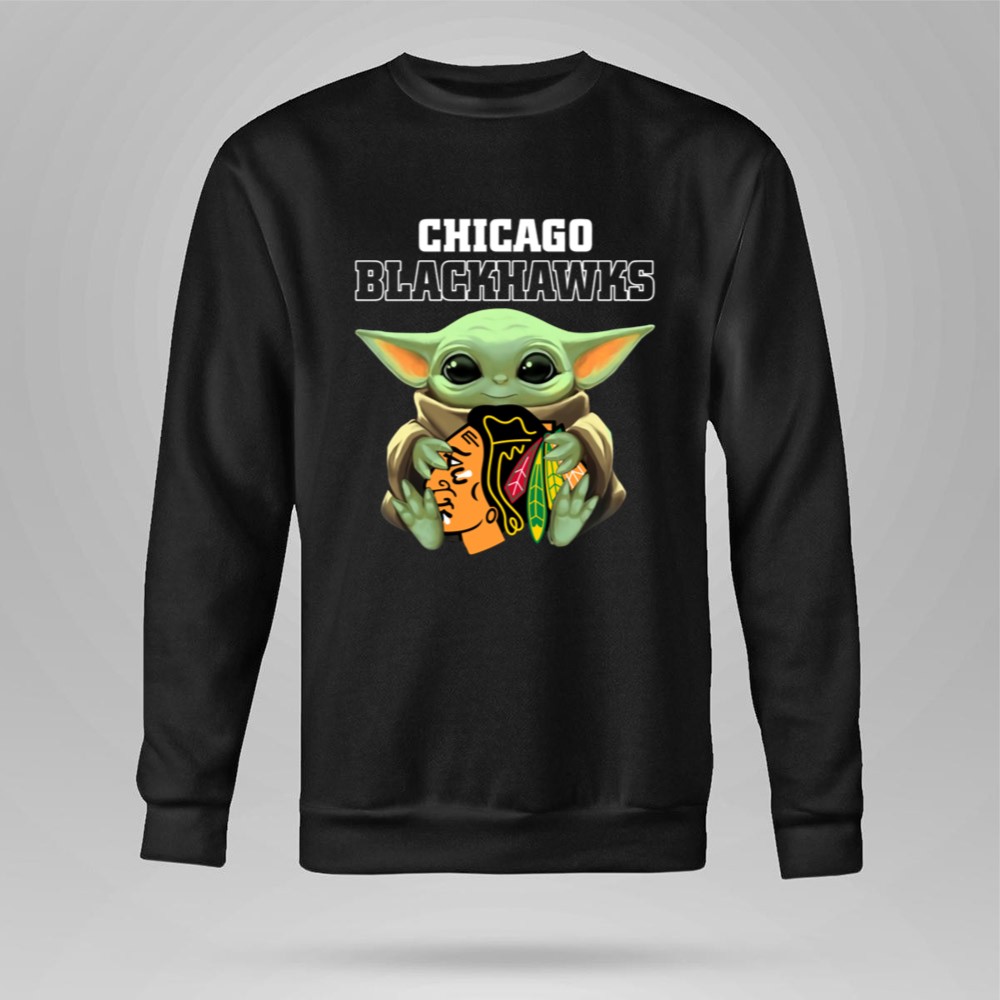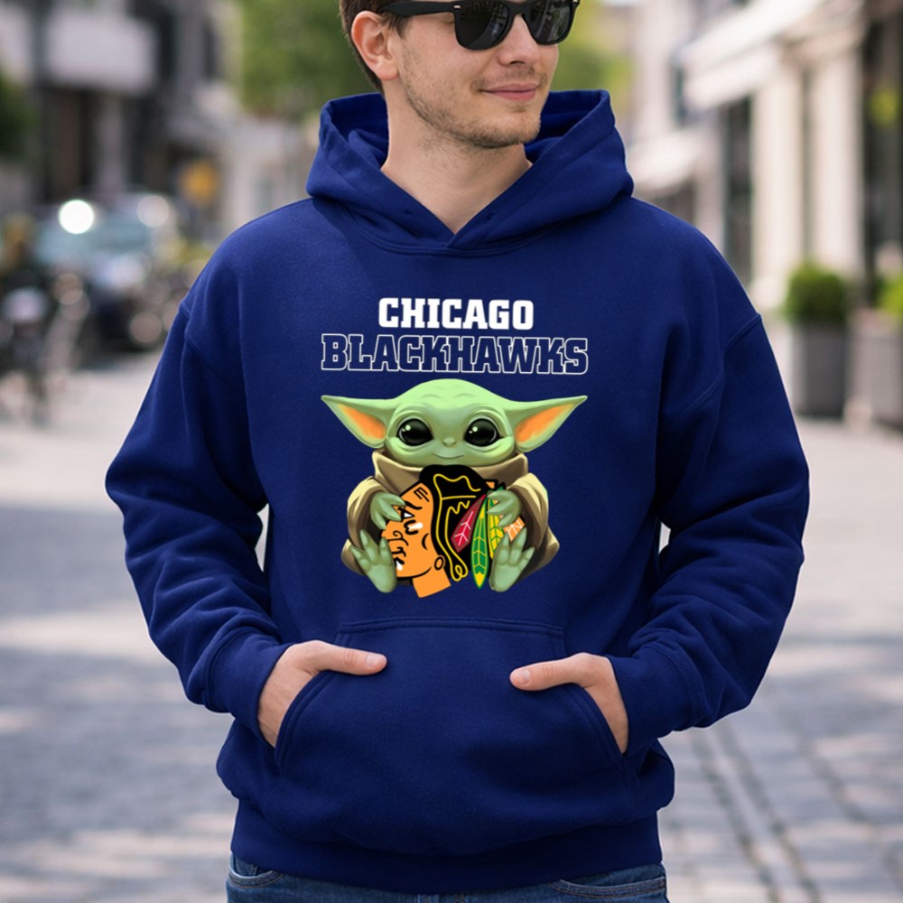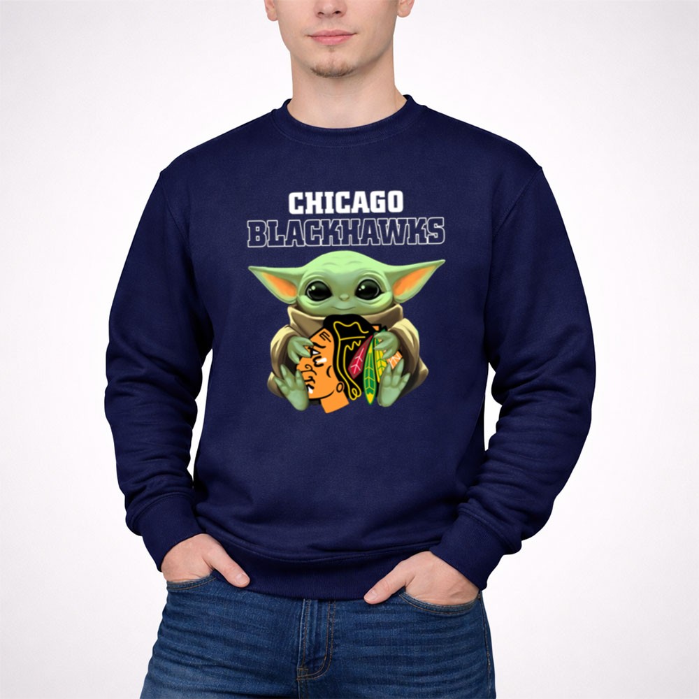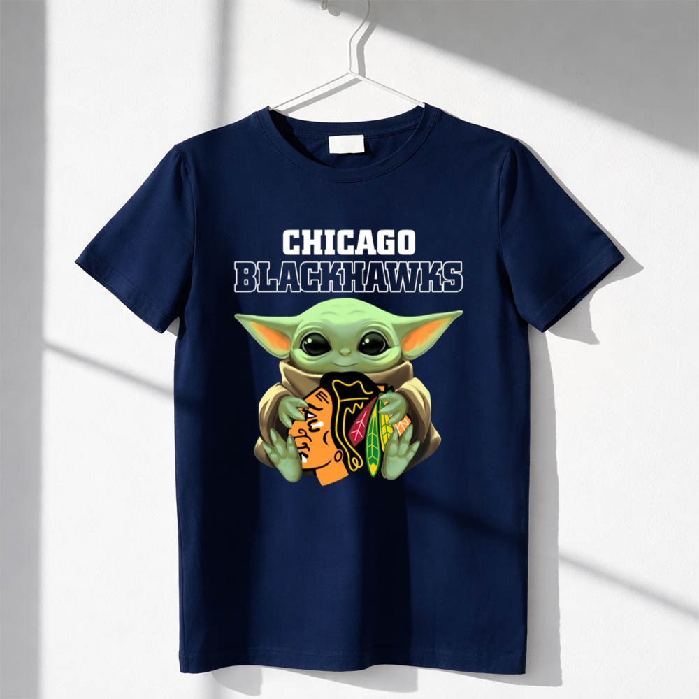 This design captures the delightful intersection of Chicago Blackhawks pride and the universal appeal of Baby Yoda. With the young Jedi holding the team logo, it evokes a sense of nostalgia and joy, making it a fun and loving tribute for fans. The playful cartoon style sets a whimsical tone, perfect for celebrating game days or casual outings.