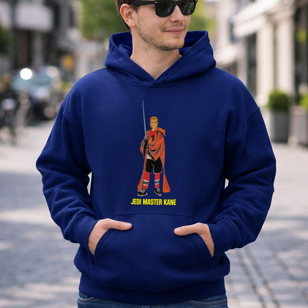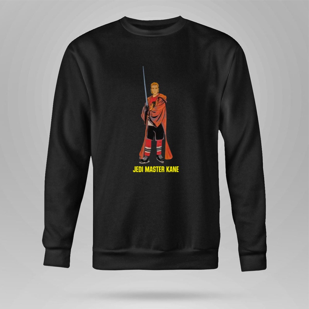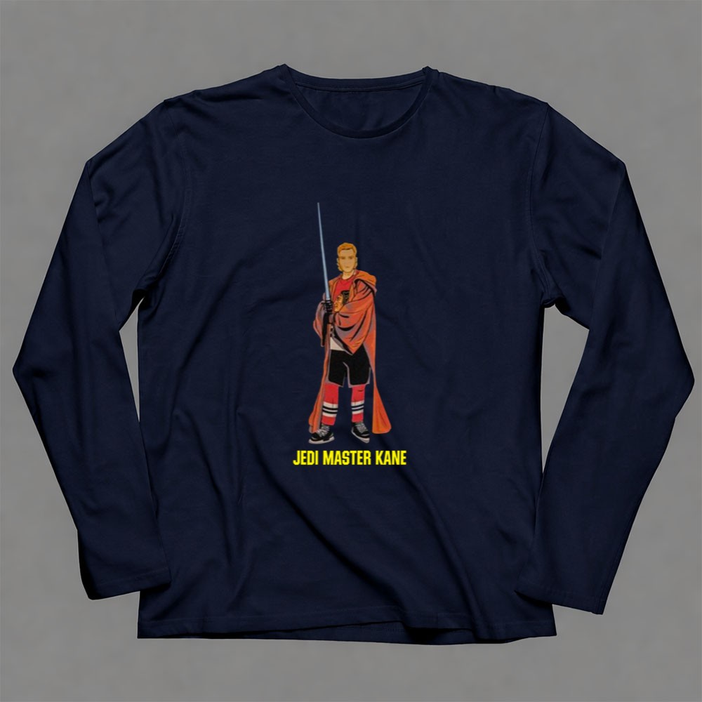 This design showcases Patrick Kane as a Jedi Master, blending the thrill of NHL hockey with the whimsical charm of Star Wars. It reflects the heart of Chicago’s passionate hockey community, celebrating a local legend in a fun and creative way. This playful tribute invites fans to unite their love for the game and the galaxy far, far away.