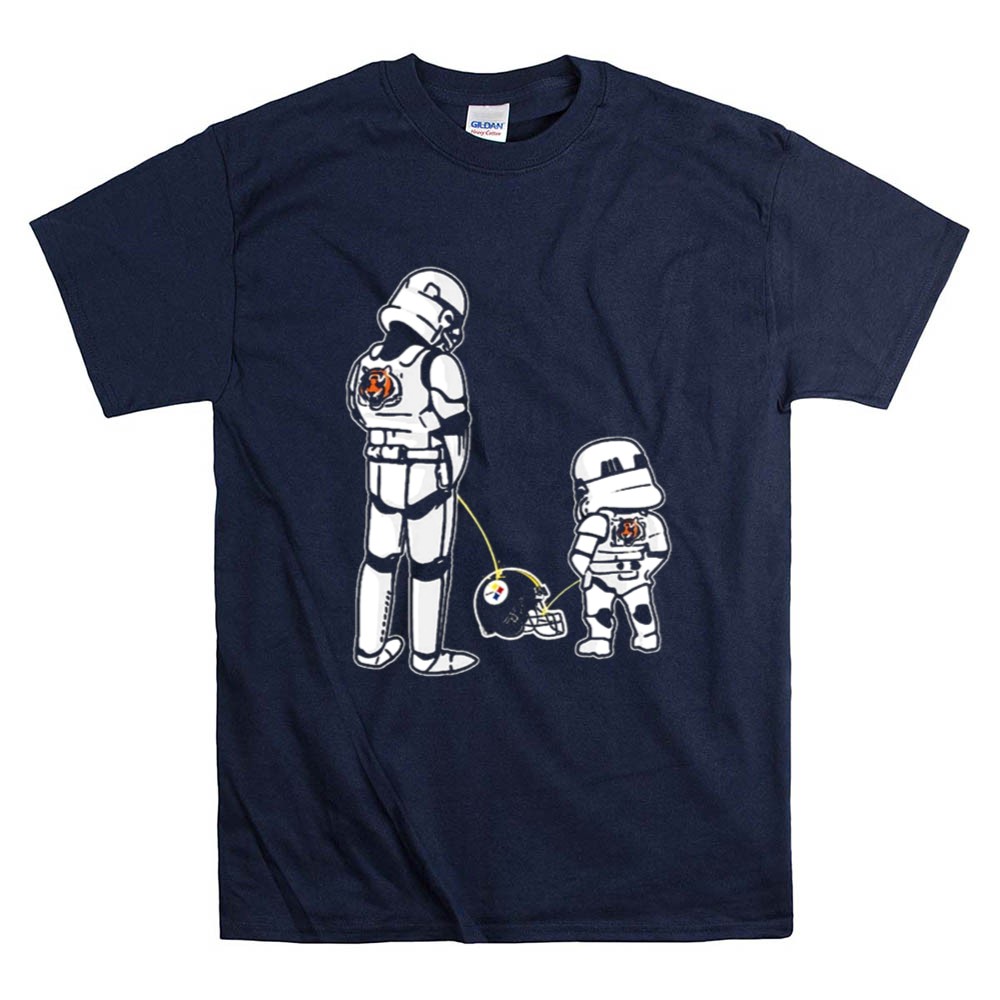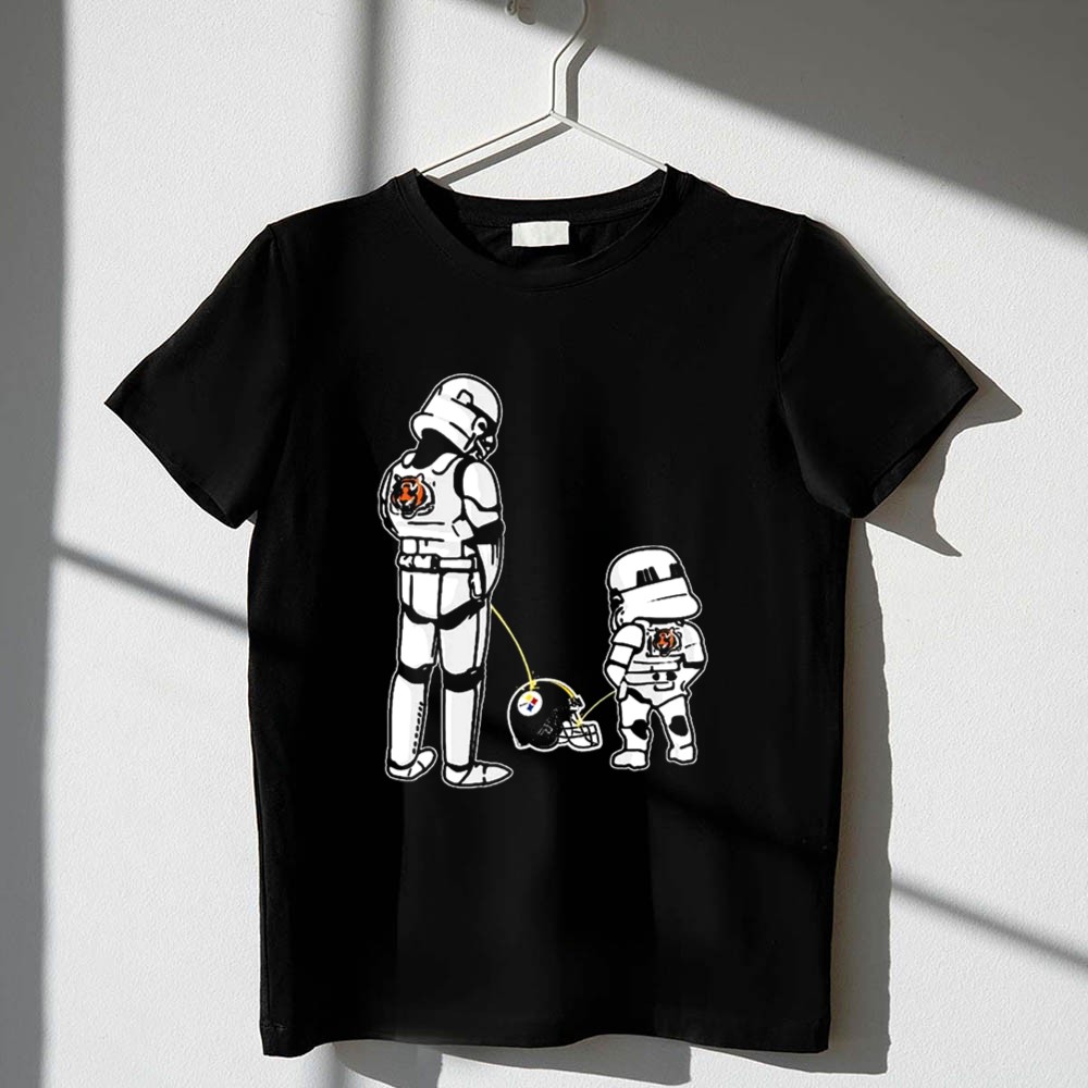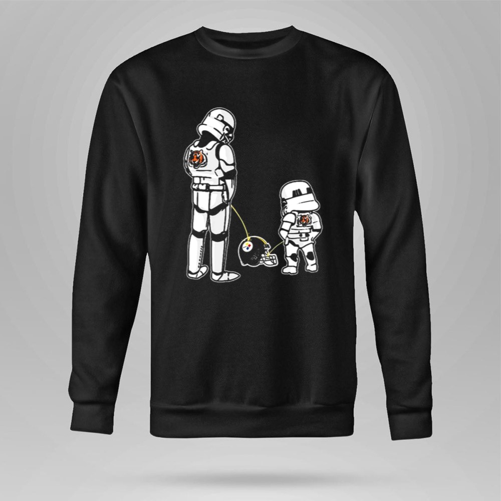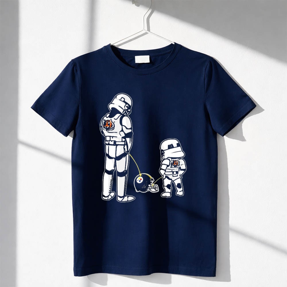 This design captures the essence of a lighthearted rivalry, showcasing Cincinnati Bengals Stormtroopers in a playful moment. It’s a celebration of family and fandom, where laughter reigns supreme during game days, reminding us that sports are meant to be enjoyed together.