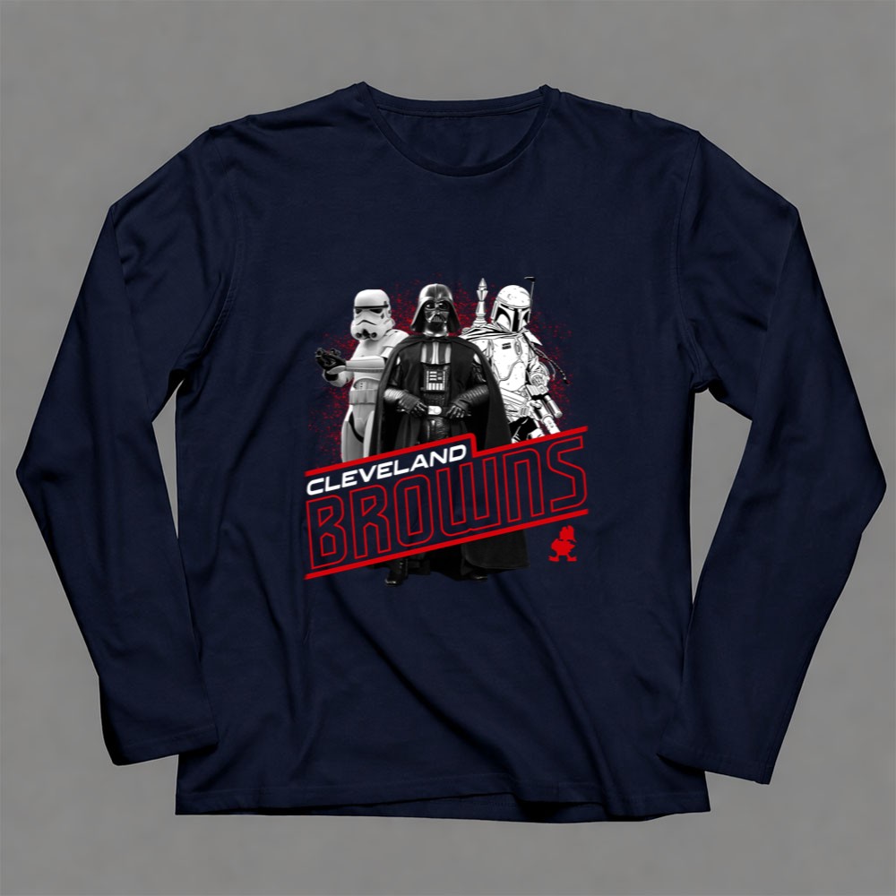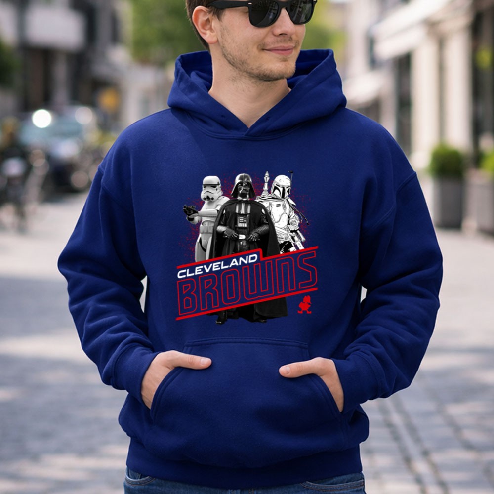 This design captures the playful spirit of a fierce football rivalry while celebrating a beloved sci-fi universe. With Darth Vader, a Stormtrooper, and Boba Fett joining the ranks of Cleveland Browns supporters, this graphic tribute reflects the shared passion of fans who revel in both sports culture and the Force. It’s a bold expression of loyalty that resonates deeply with those who proudly wear their colors.