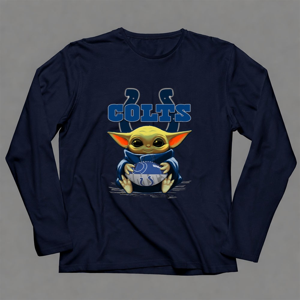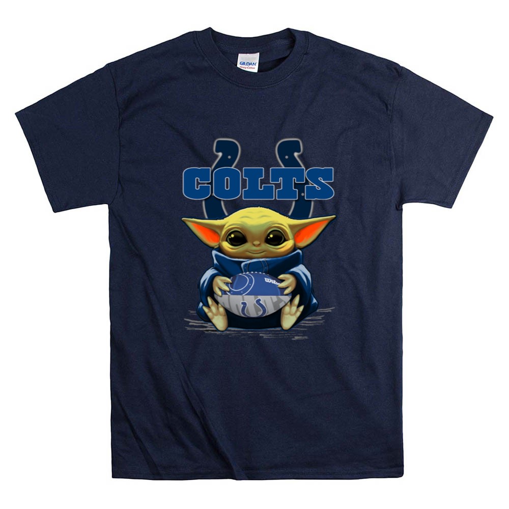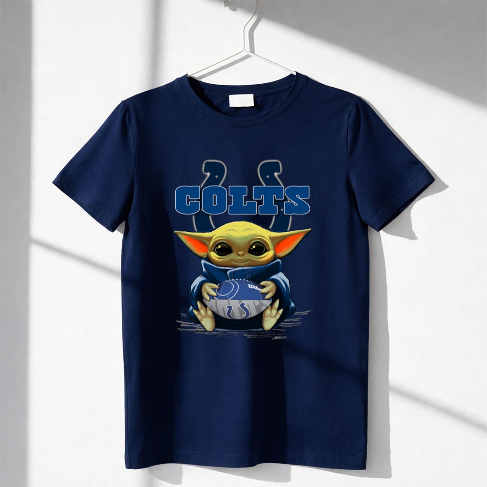 This design celebrates the joy of being a Colts fan through the playful lens of Baby Yoda. With vibrant colors and a cartoon style, it evokes nostalgia while inviting children to embrace their team spirit. The cute imagery of Baby Yoda holding a Colts football reflects the fun and excitement of game days, making it a favorite among young fans and their families.