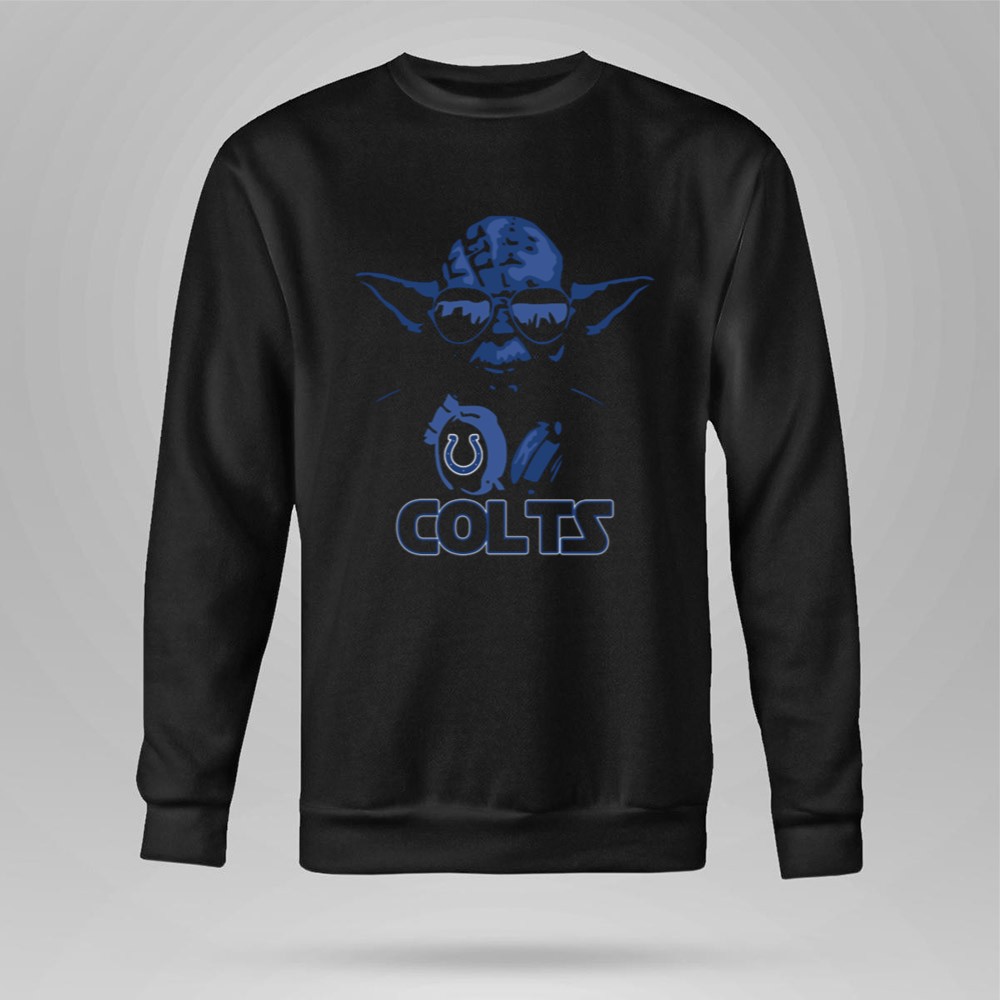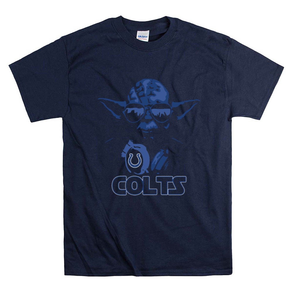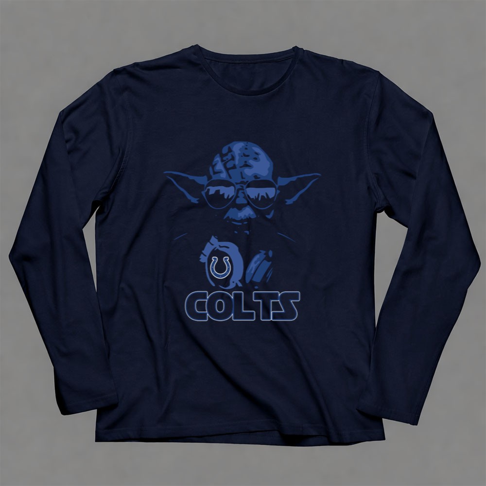 This design captures the essence of Indianapolis pride, featuring Yoda sporting sunglasses adorned with the Colts logo. By merging the iconic imagery of Star Wars with the blue horseshoe, it reflects a playful tribute to both sports and sci-fi, resonating with fans who love to celebrate their favorite team in a fun and unique way.