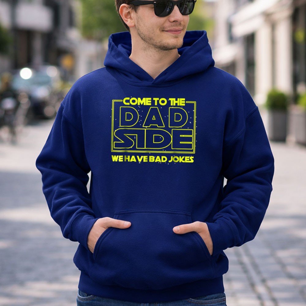 This design captures the essence of fatherhood, merging the playful charm of dad jokes with a beloved sci-fi theme. Inspired by the iconic phrase, ‘Come to the Dad Side We Have Bad Jokes,’ it reflects the special bond between fathers and their children through shared laughter and a love for nerdy references. It’s a lighthearted tribute to the joy that humor brings to family life.
