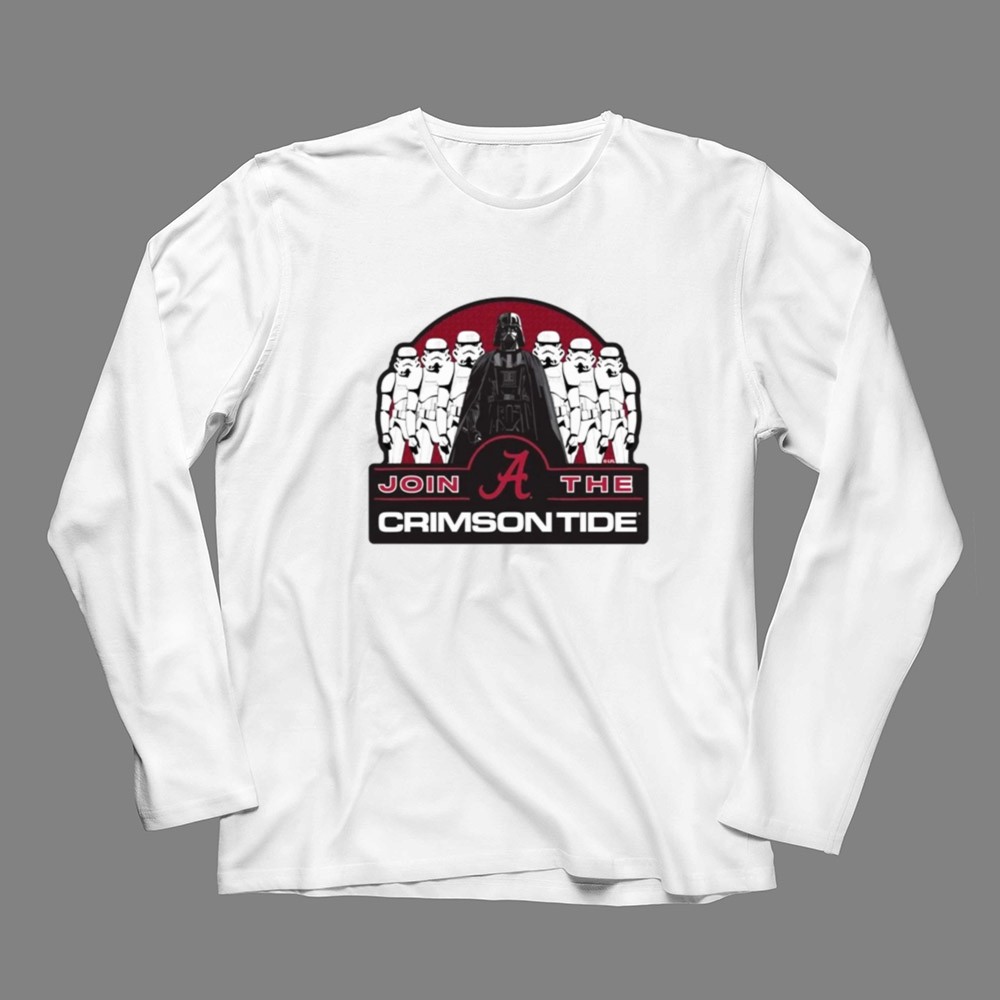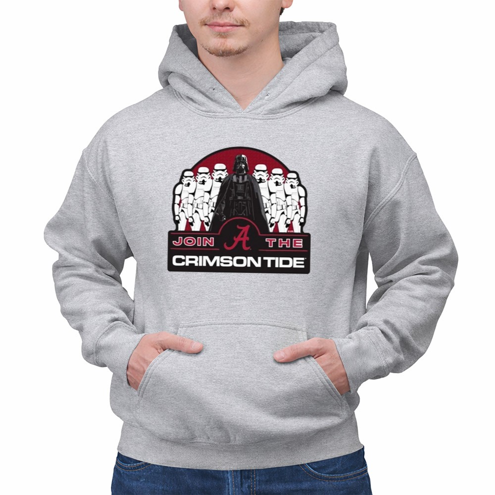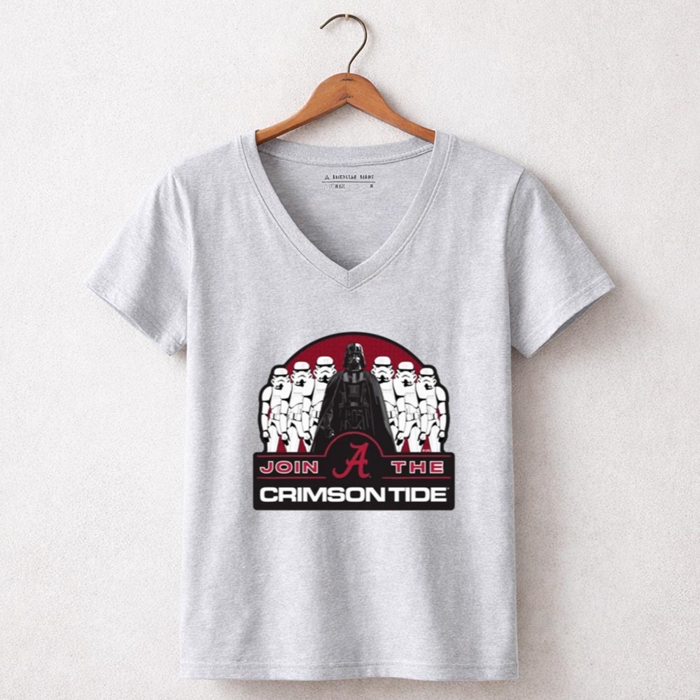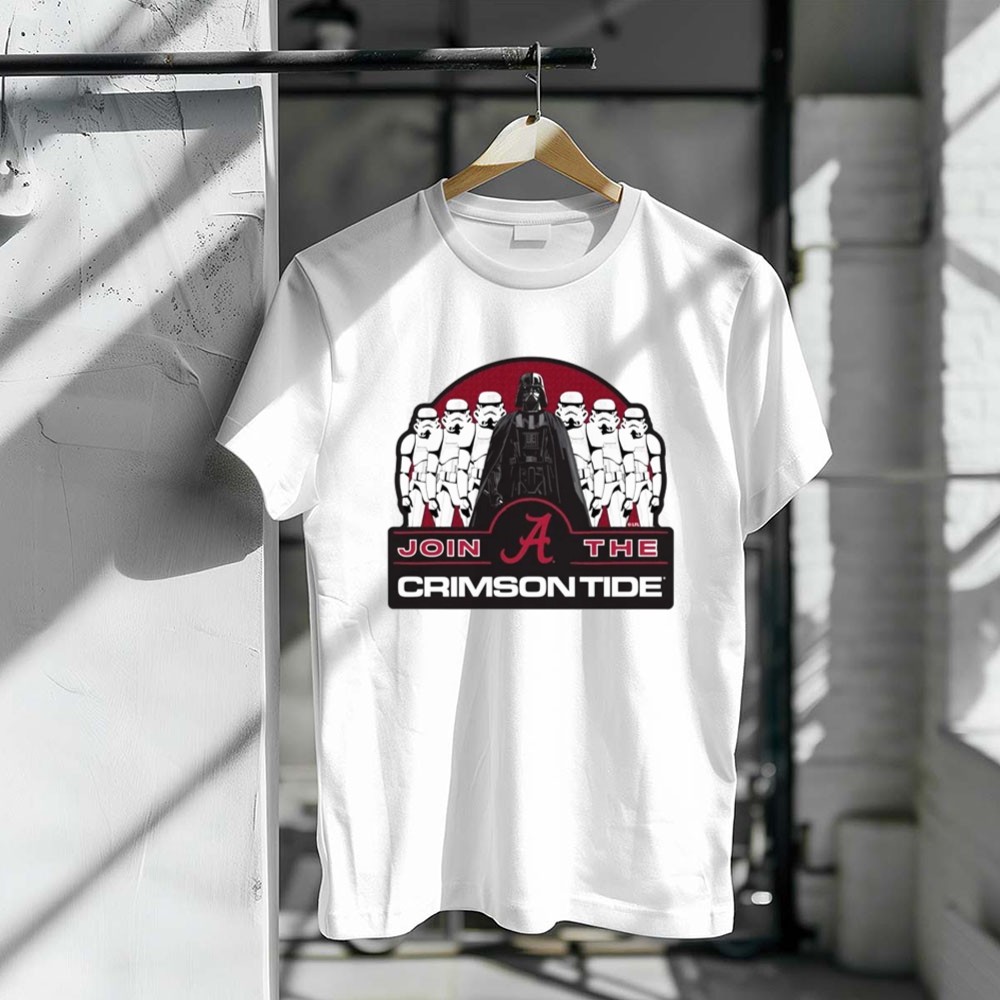 This design invites you to ‘JOIN THE CRIMSON TIDE’ alongside Darth Vader and Stormtroopers, creating a unique blend of college football passion and sci-fi nostalgia. It embodies the celebration of Alabama’s powerful football legacy while playfully acknowledging the camaraderie of fandom, making it a must-have for any game day.