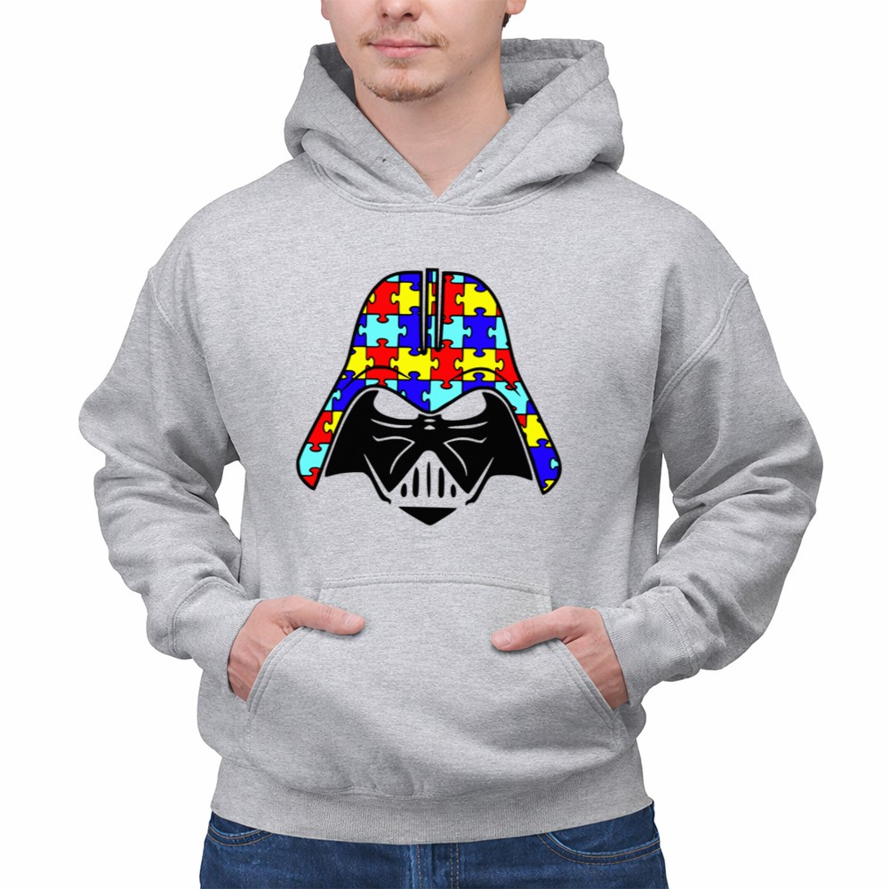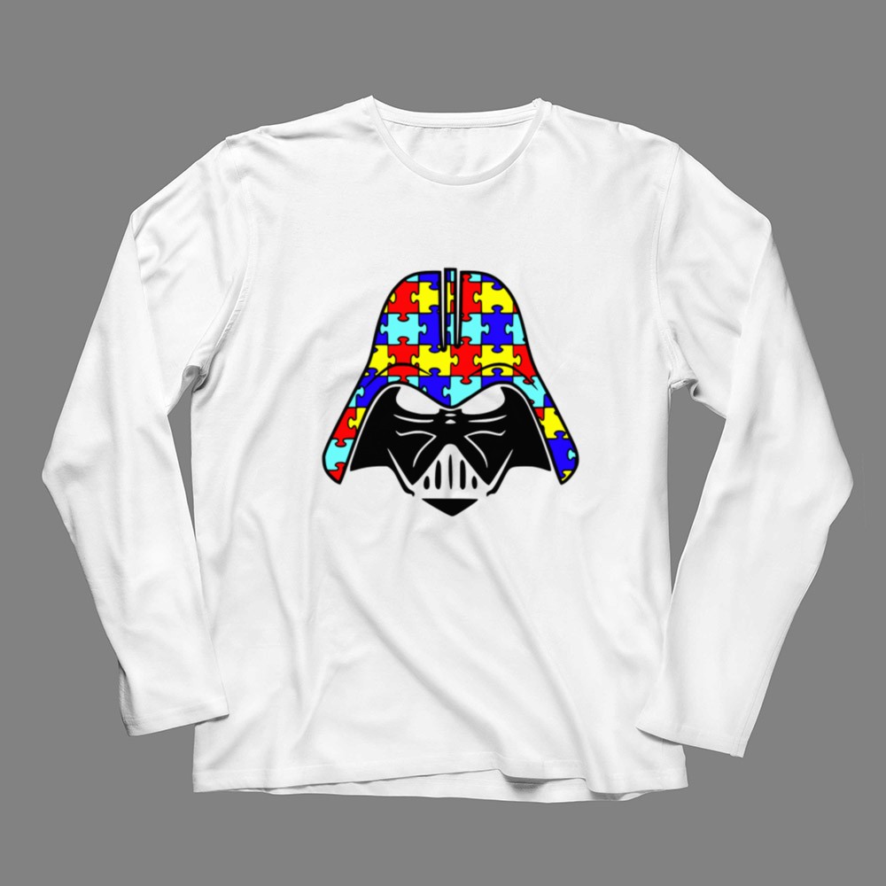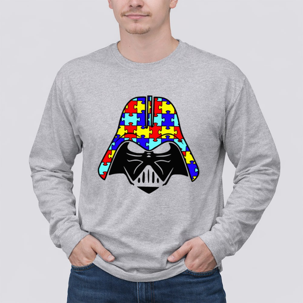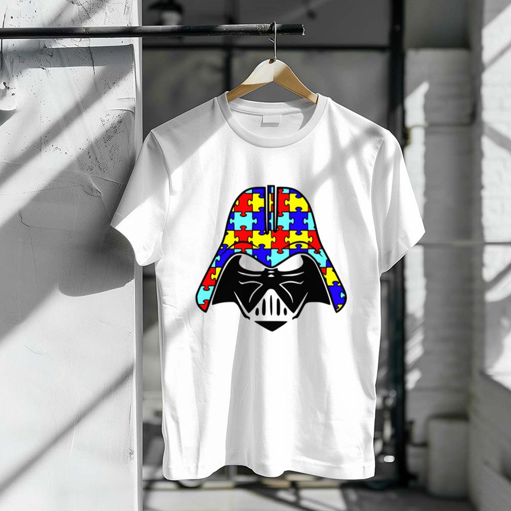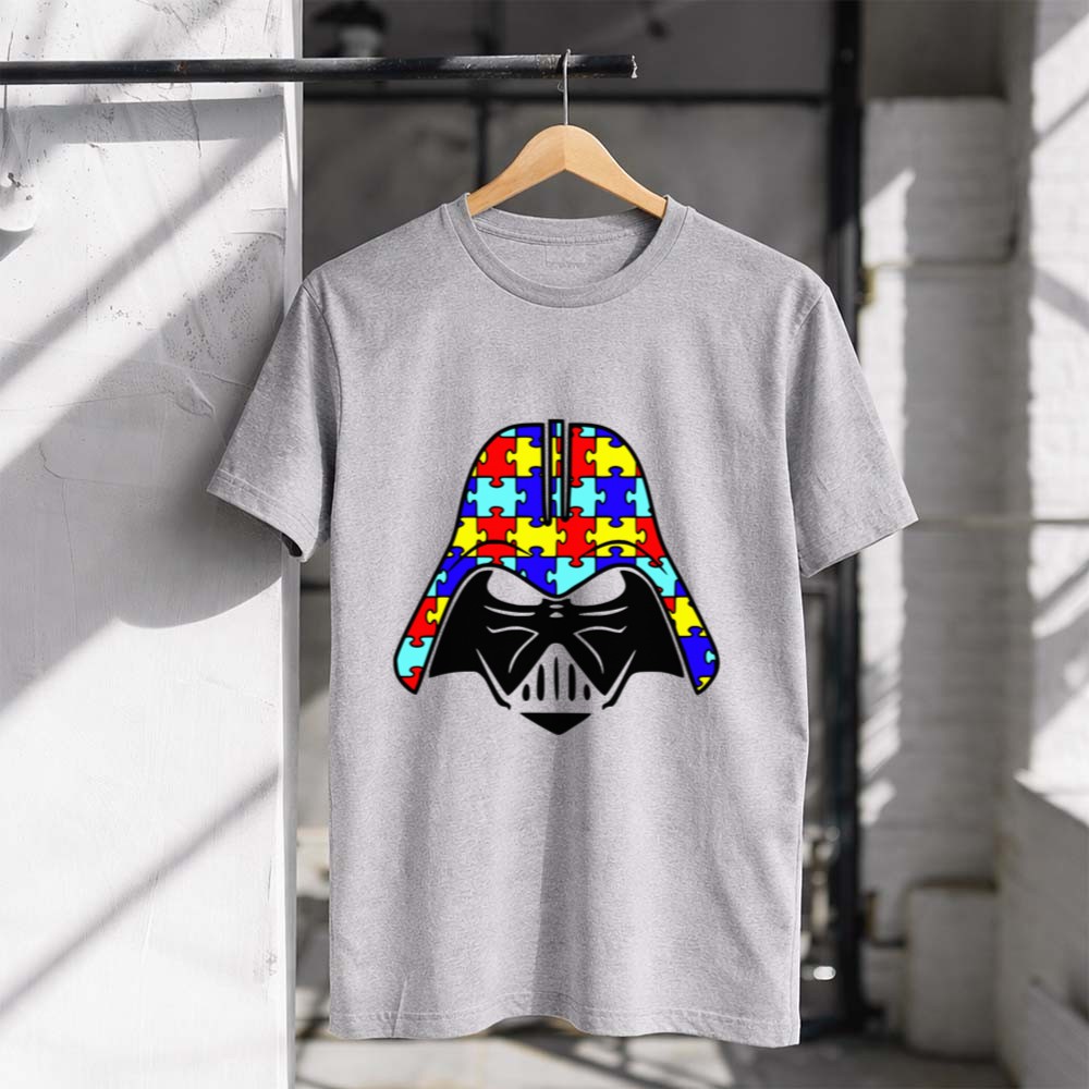 autism awareness apparel, Darth Vader fan gear, inclusive fashion, puzzle piece symbol, Star Wars tribute, awareness month, geek culture, conversation starter t-shirt