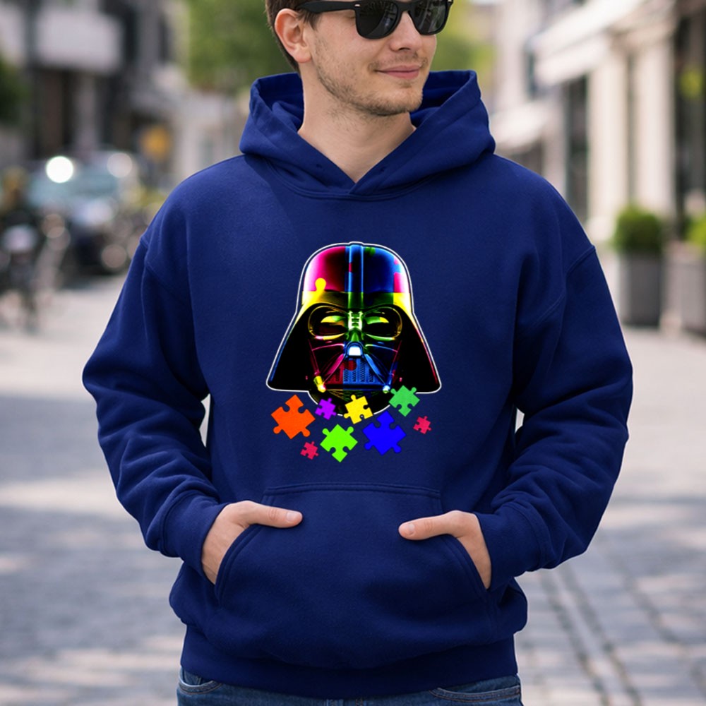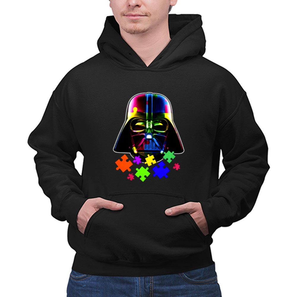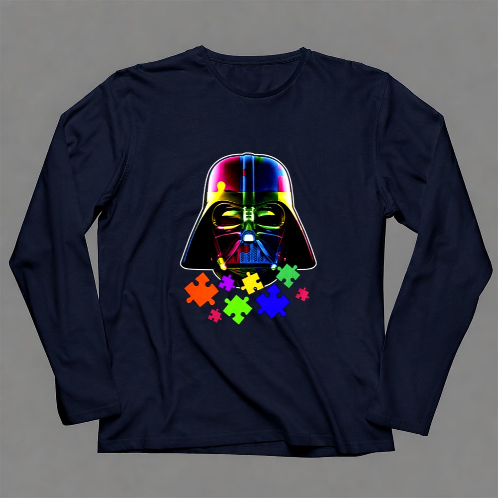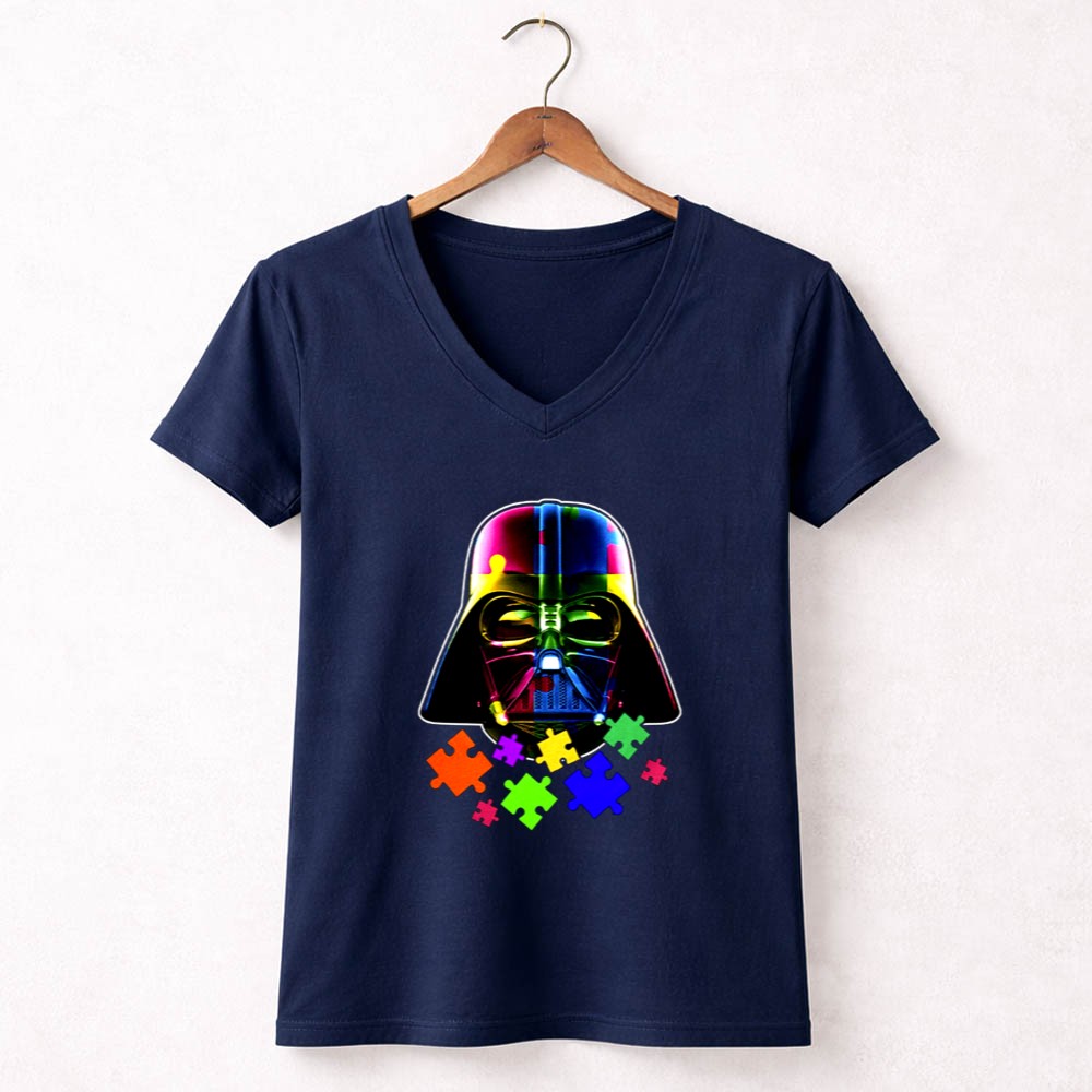 Darth Vader, autism awareness, colorful puzzle pieces, Star Wars fan apparel, mental health support, inclusive fashion, unique gift for fans, premium soft t-shirt