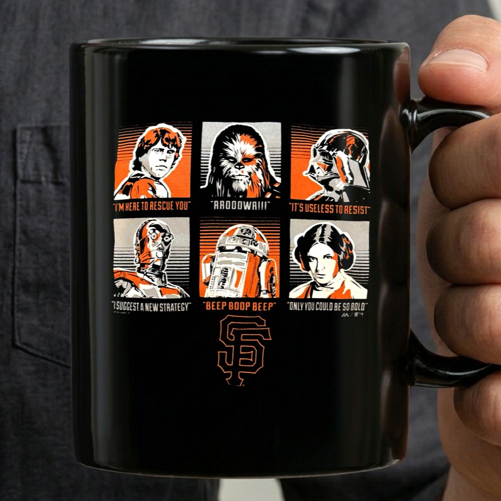This design captures the essence of camaraderie among fans of the San Francisco Giants and the Star Wars universe. Featuring beloved characters like Darth Vader and Chewbacca alongside the Giants logo, it symbolizes the joy of uniting two worlds through shared fandom. The comic-style blend adds a playful twist, inviting laughter and connection among fans during game days or movie nights.