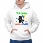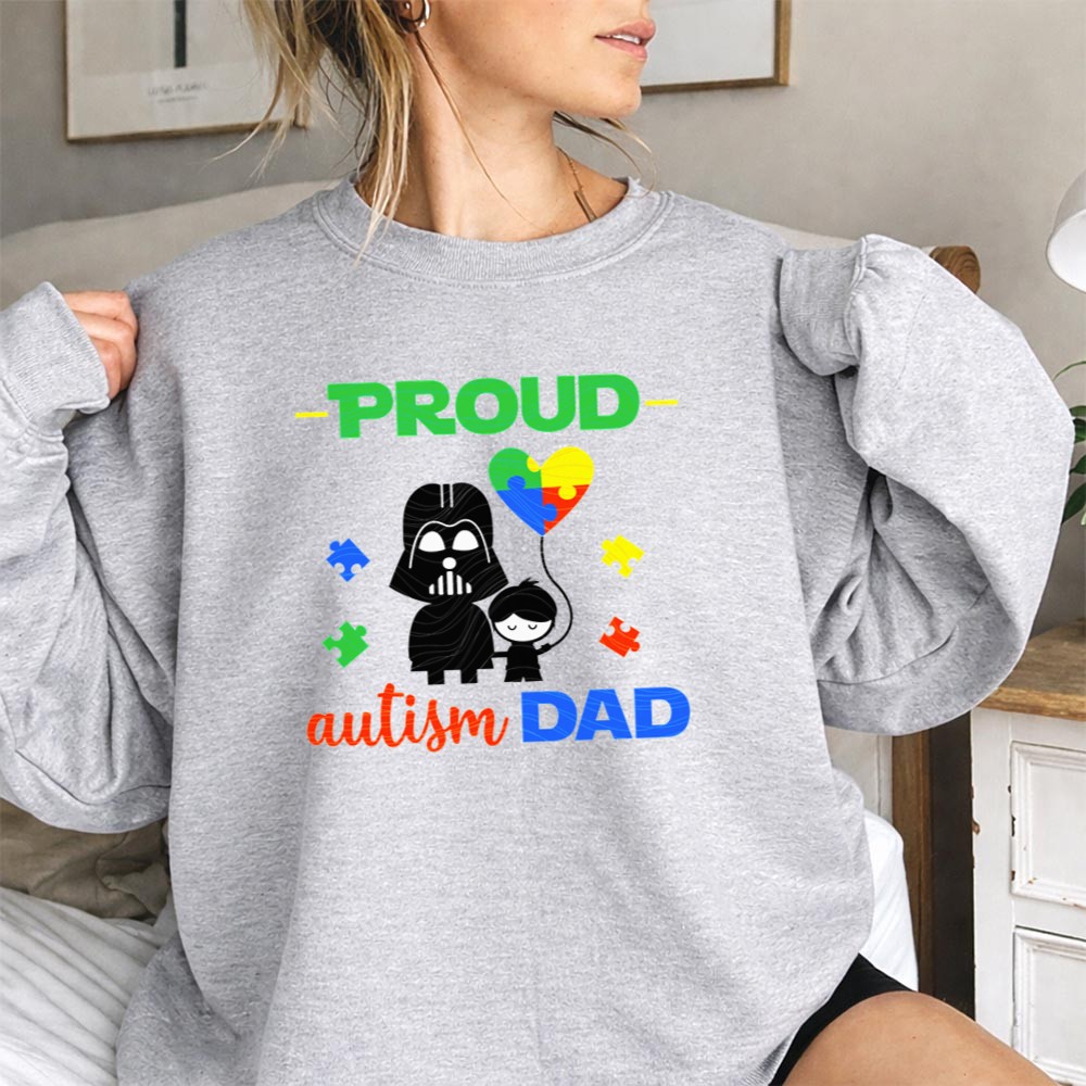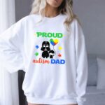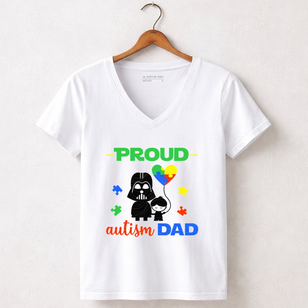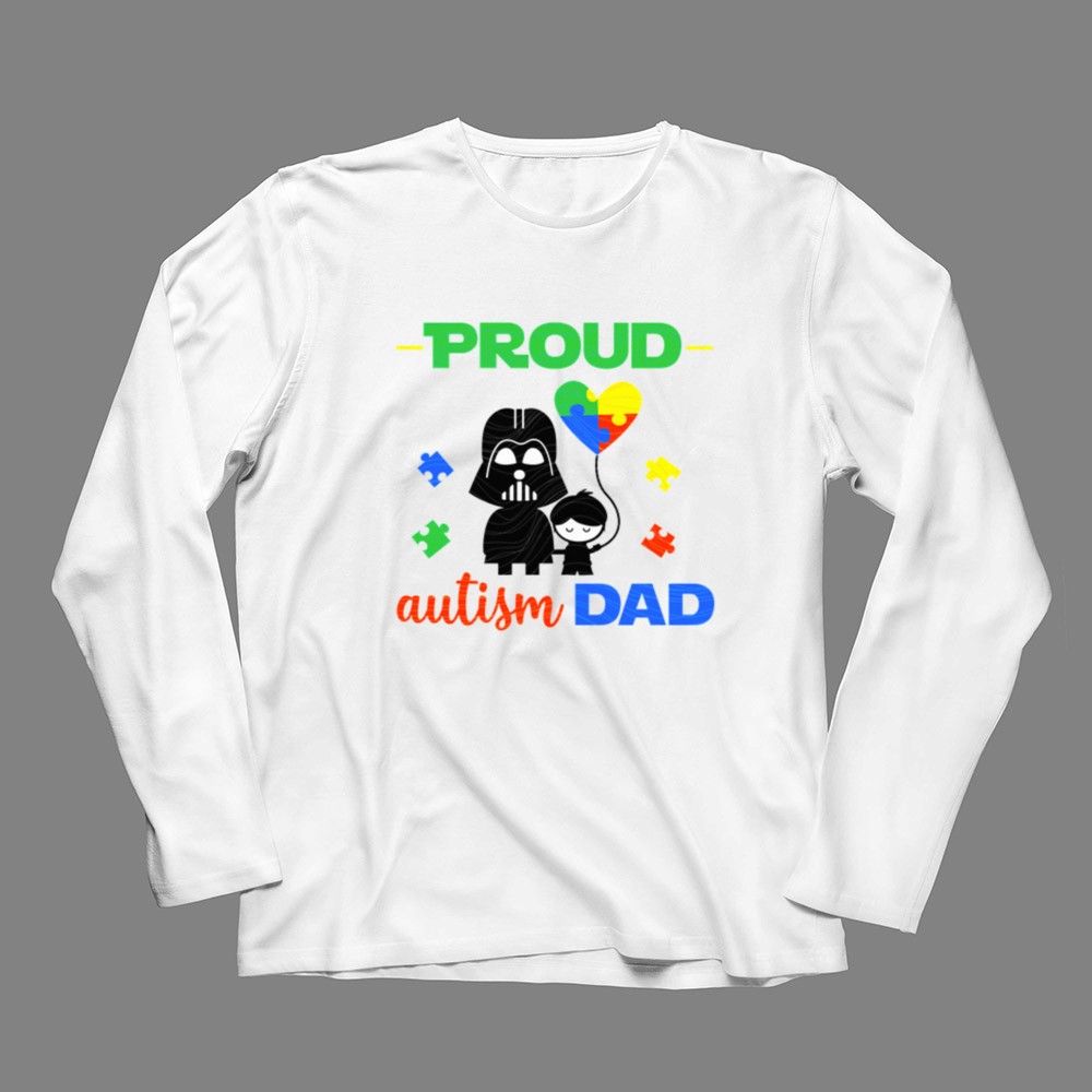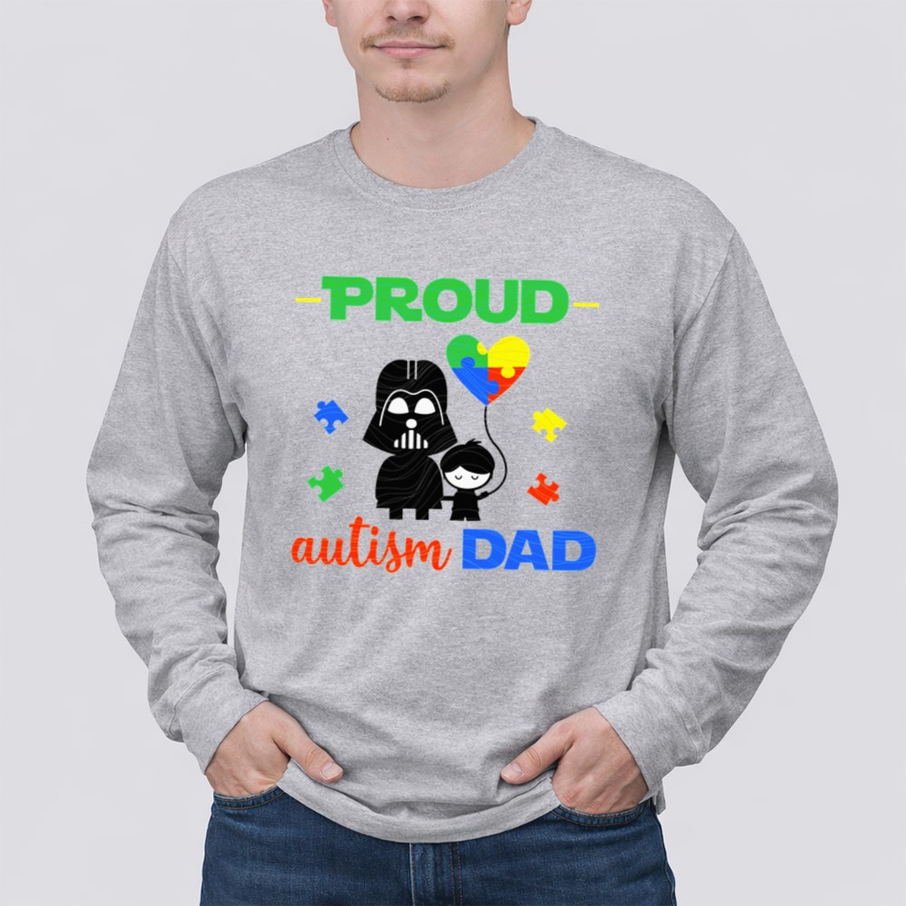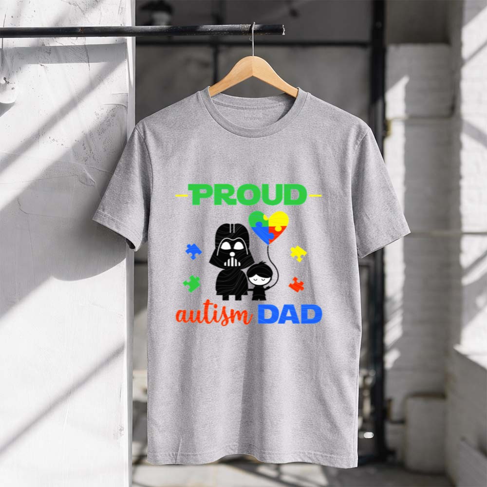 Darth Vader autism dad shirt, autism awareness apparel, proud dad t-shirt, Star Wars family pride, colorful autism heart, parental love, unique gift for dads, nerdy dad fashion